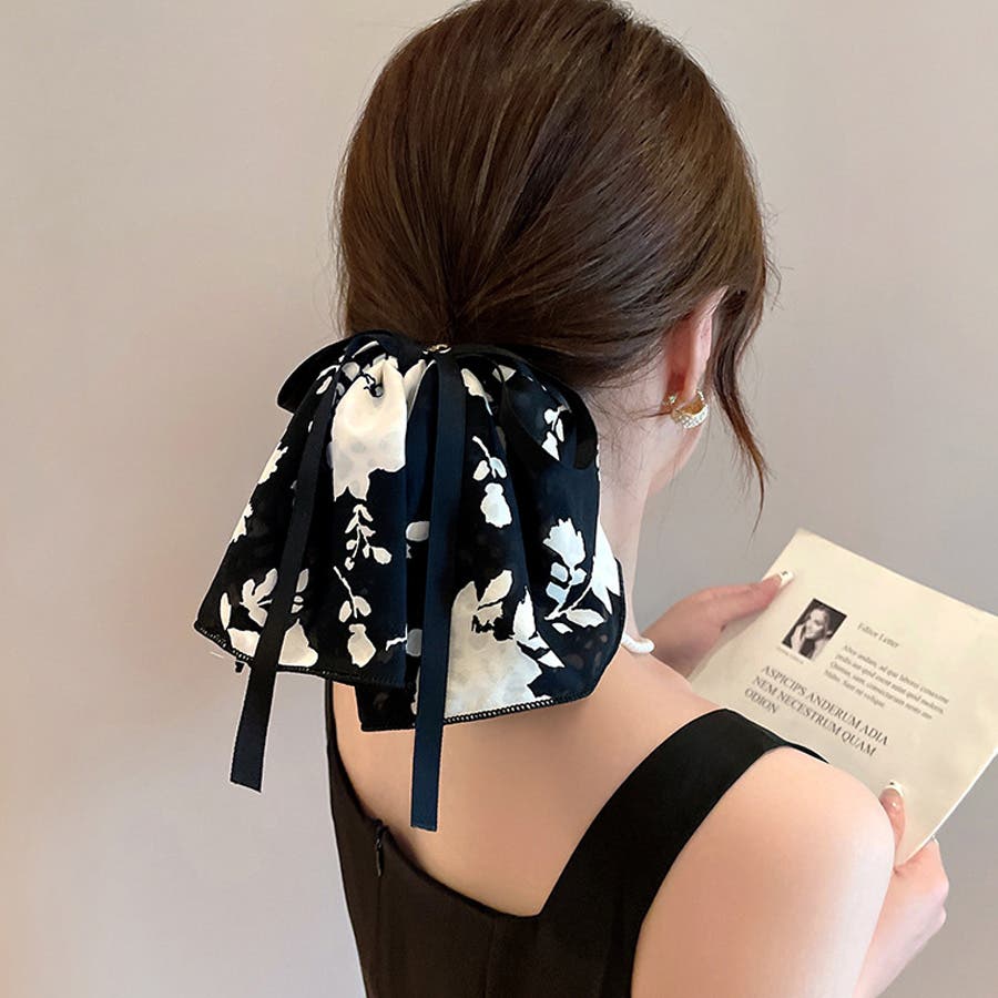 さっと結ぶだけでワンポイントにり、ふんわりと華やかな大人のヘアアレンジ