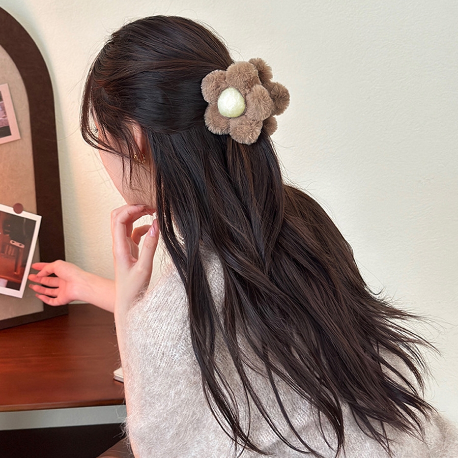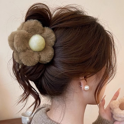 ヘアクリップ 花 ファー