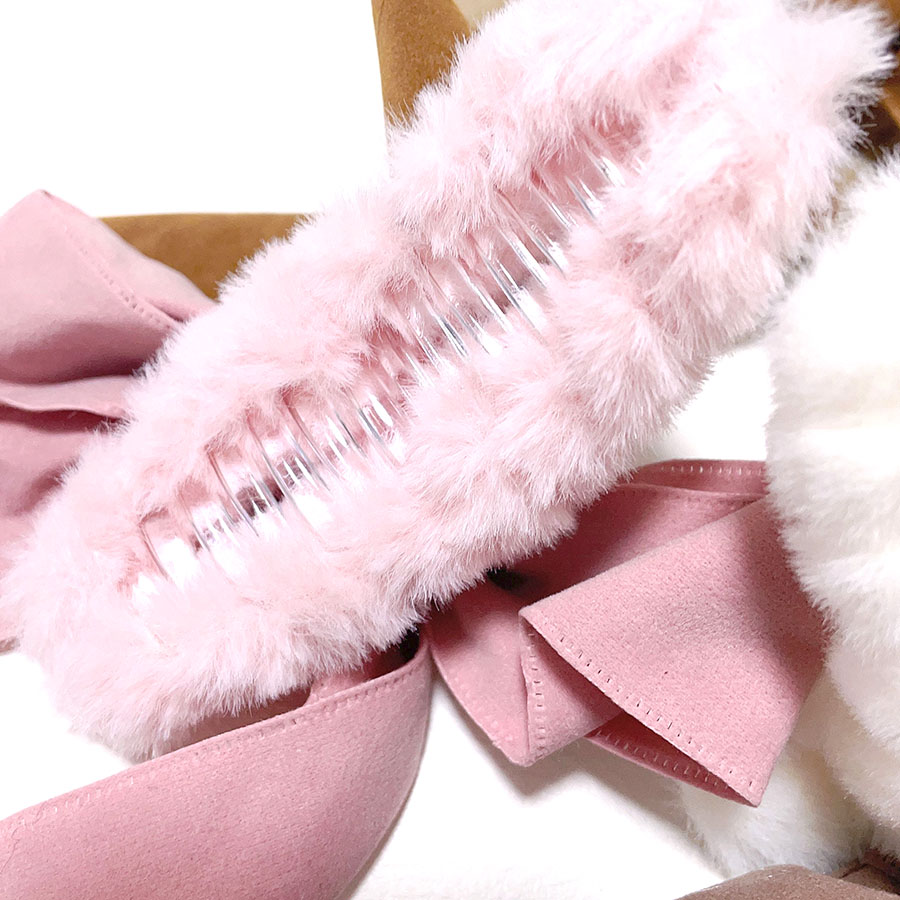 ヘア留め ヘアアクセサリー フェイクファーリボン付きバンスクリップ 髪飾り