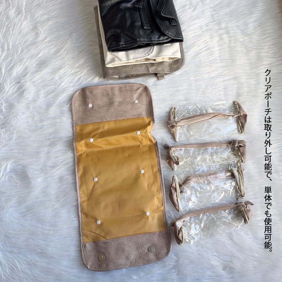 普段のメイク道具に化粧品、メイクブラシもこれ一つですっきり収納できます。