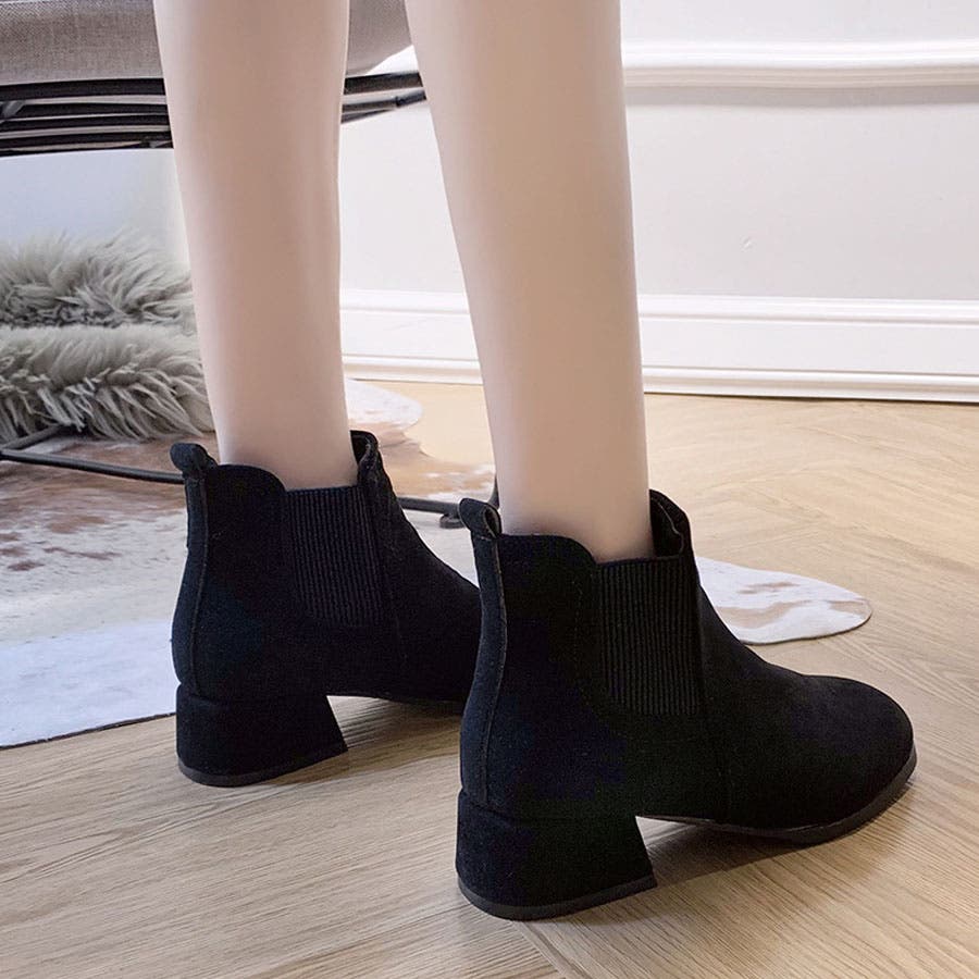 サイドゴアなので着脱簡単、安定感抜群の太めなローヒール。