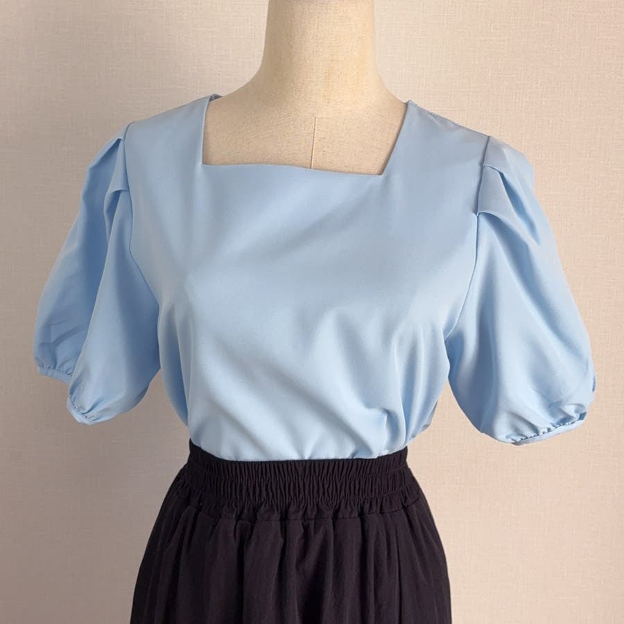 スクエアネックで、デコルテラインもきれいに女性らしい印象を与えてくれる。