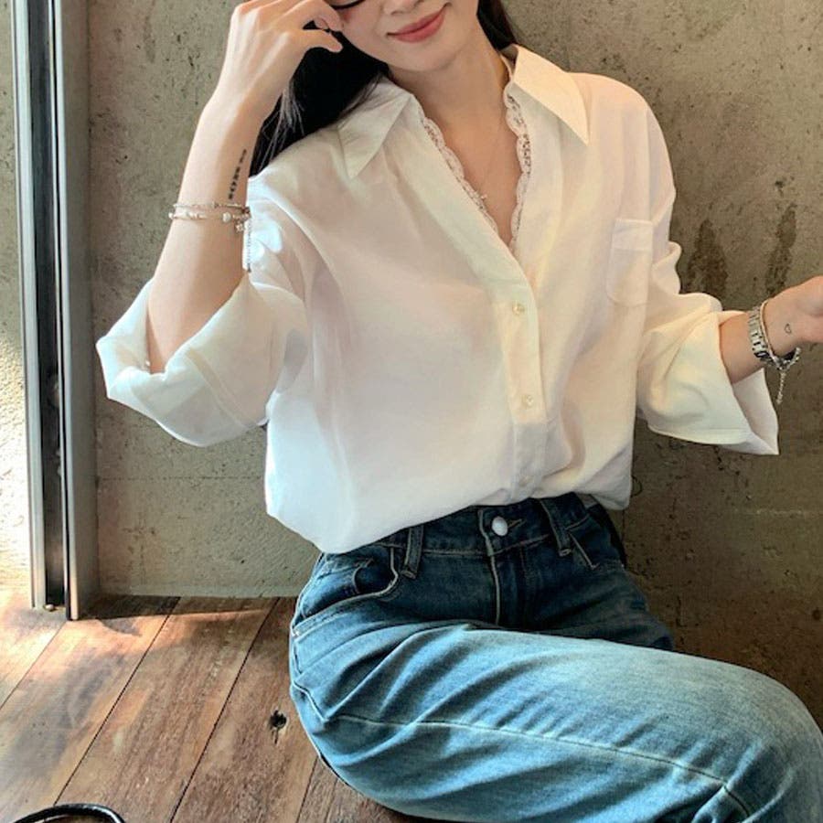 新作ブラウス シャツ レース付きトップス