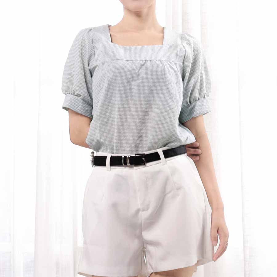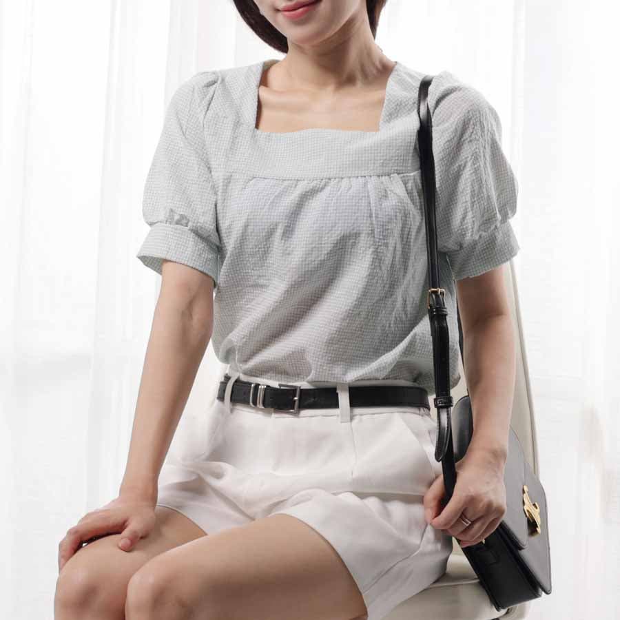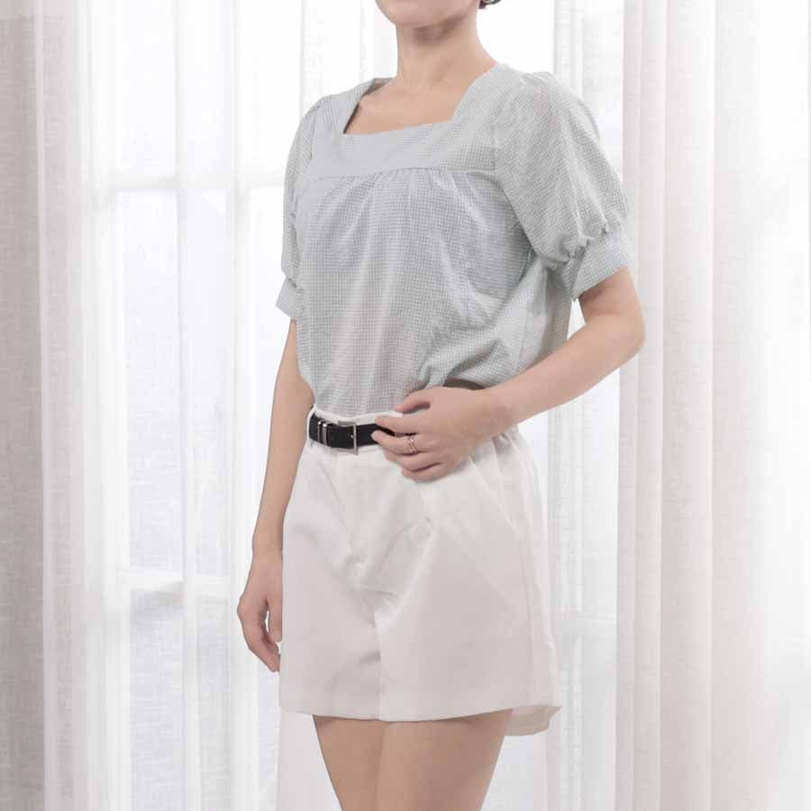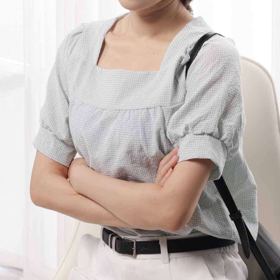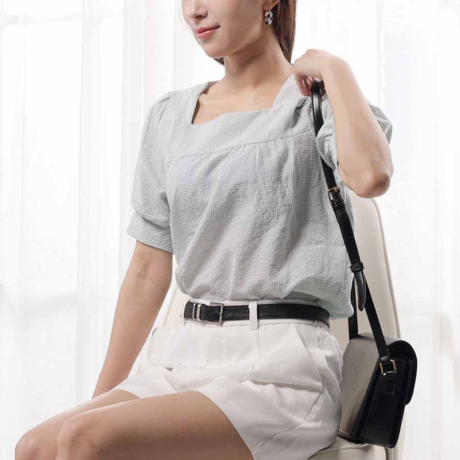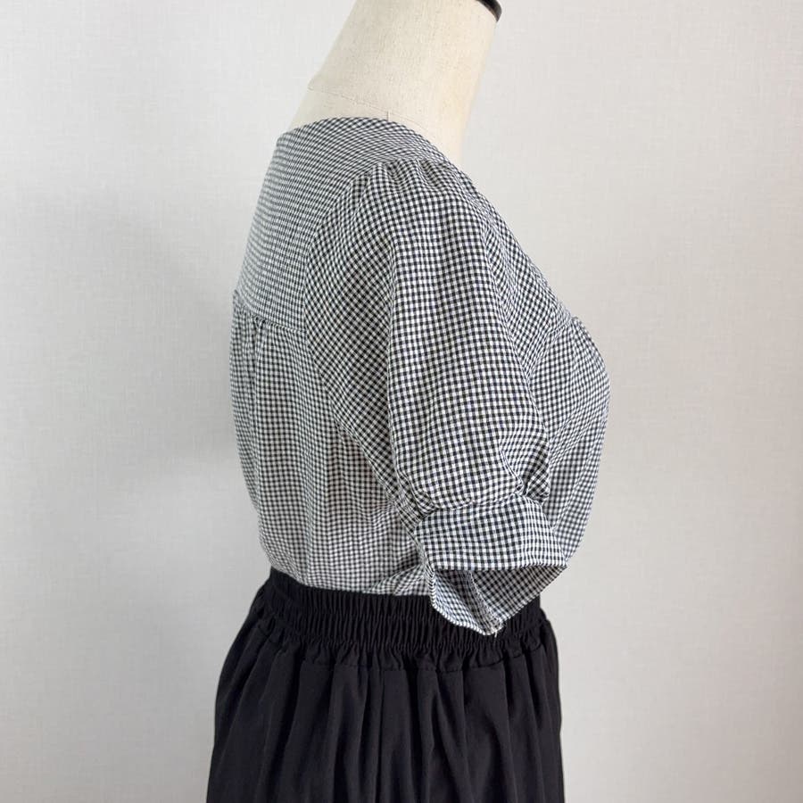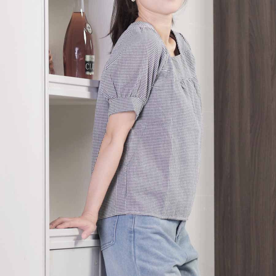 スクエアネックデザインが立体感を演出してくれるギンガムチェックブラウス。