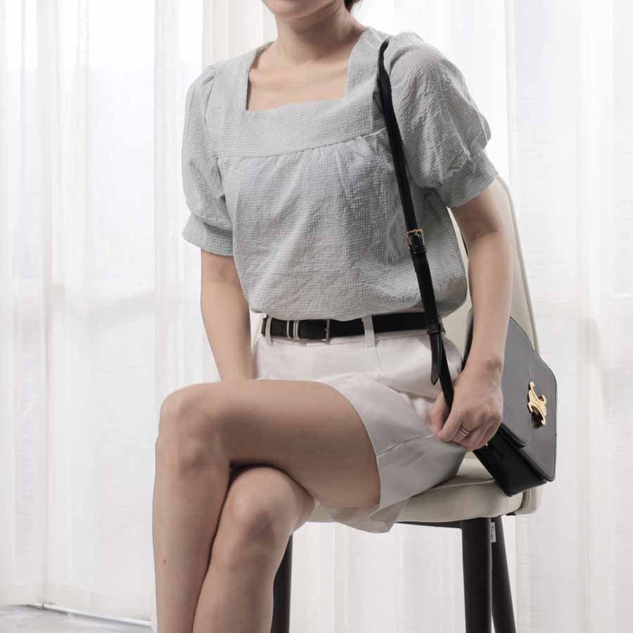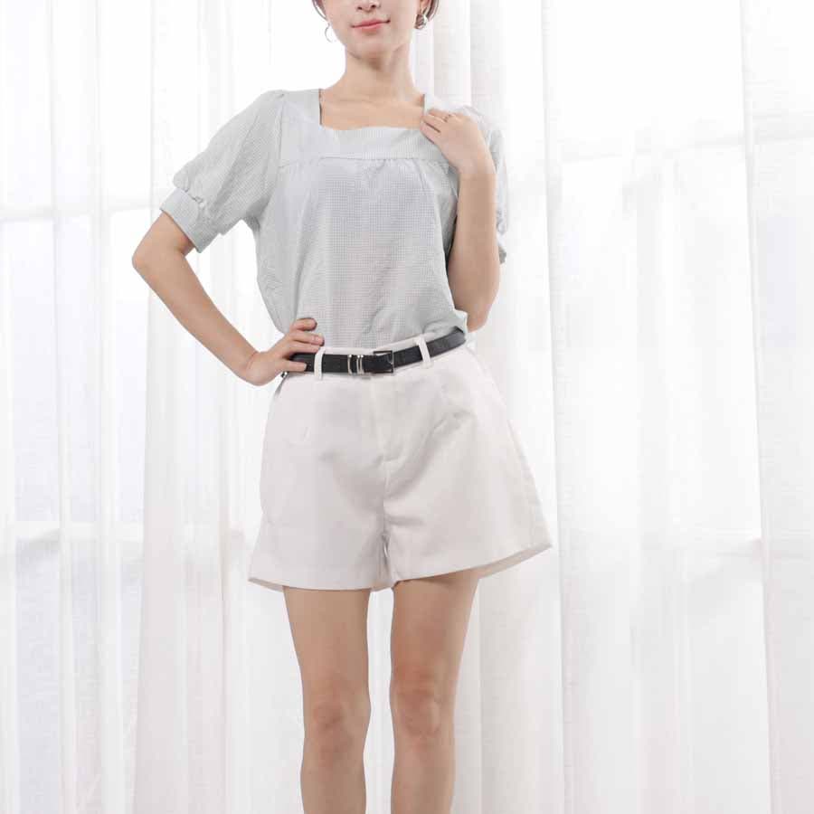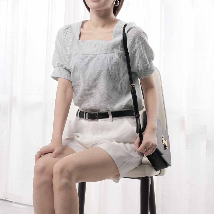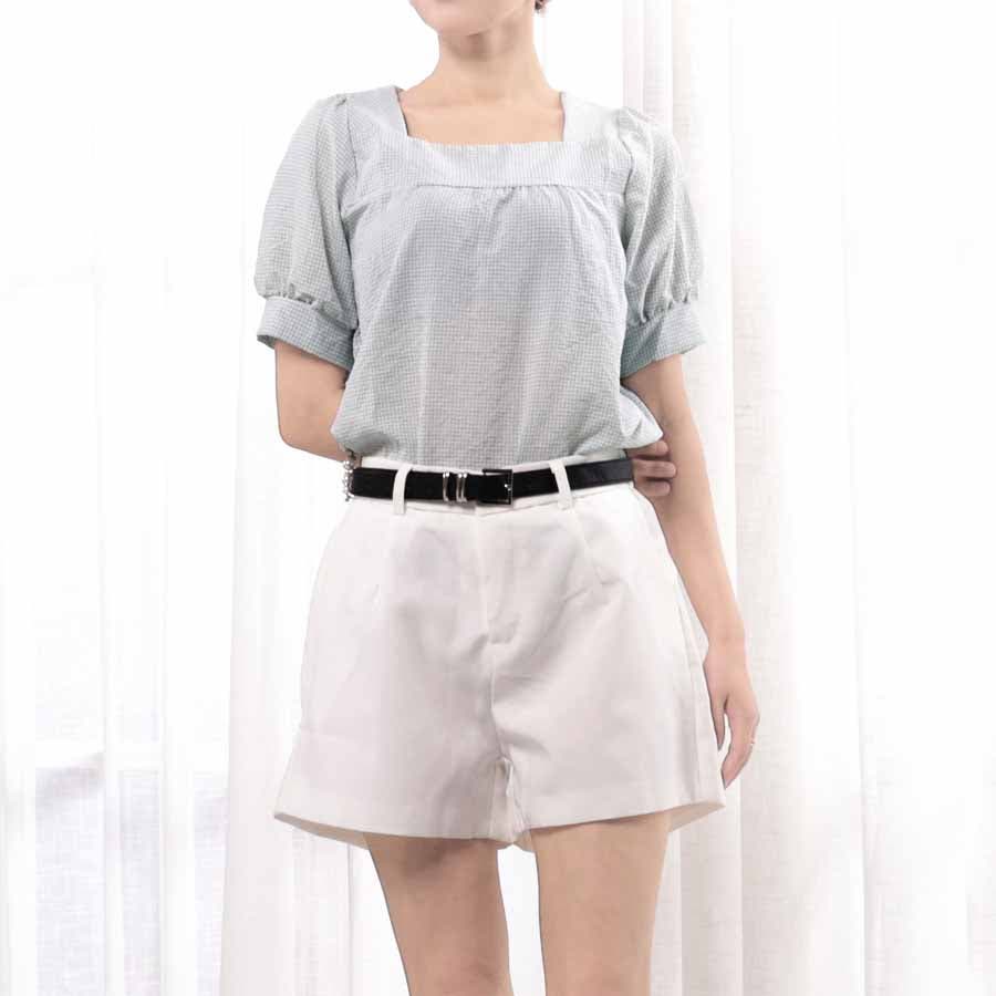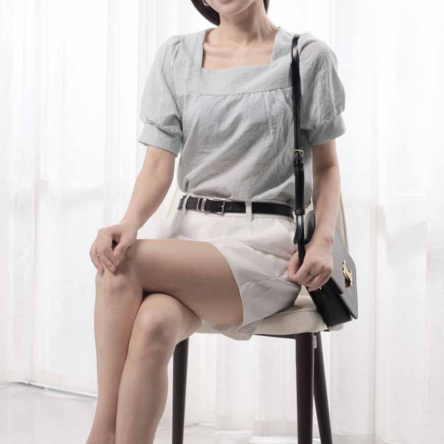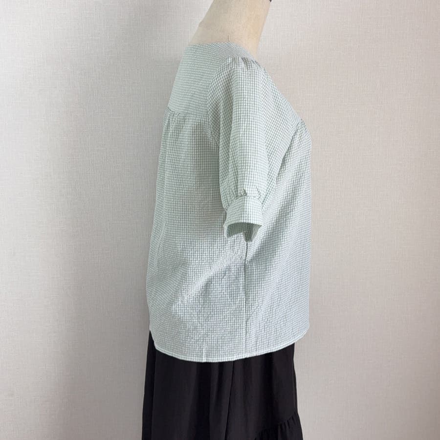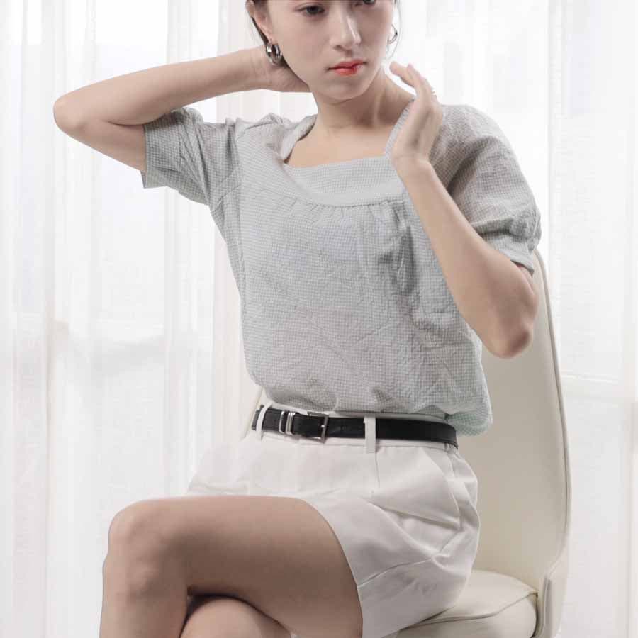 スクエアネックデザインが立体感を演出してくれるギンガムチェックブラウス。