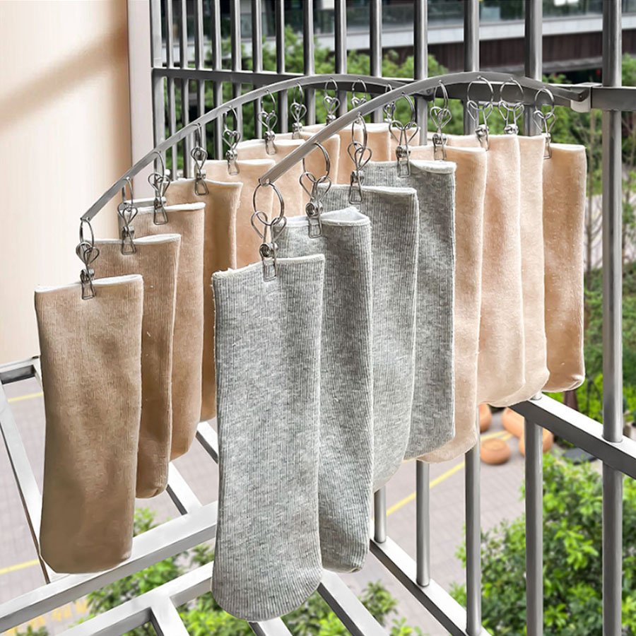 8個のピンチが付いたステンレス製のハンガーはシンプルでお洒落、省スペースで効率よく洗濯物が干せる優れモノ。