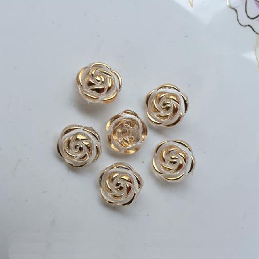 とても豪華なボタンです バラの形がとても綺麗です 花びらの先に金が施してあるのがとても豪華です 気に入っています