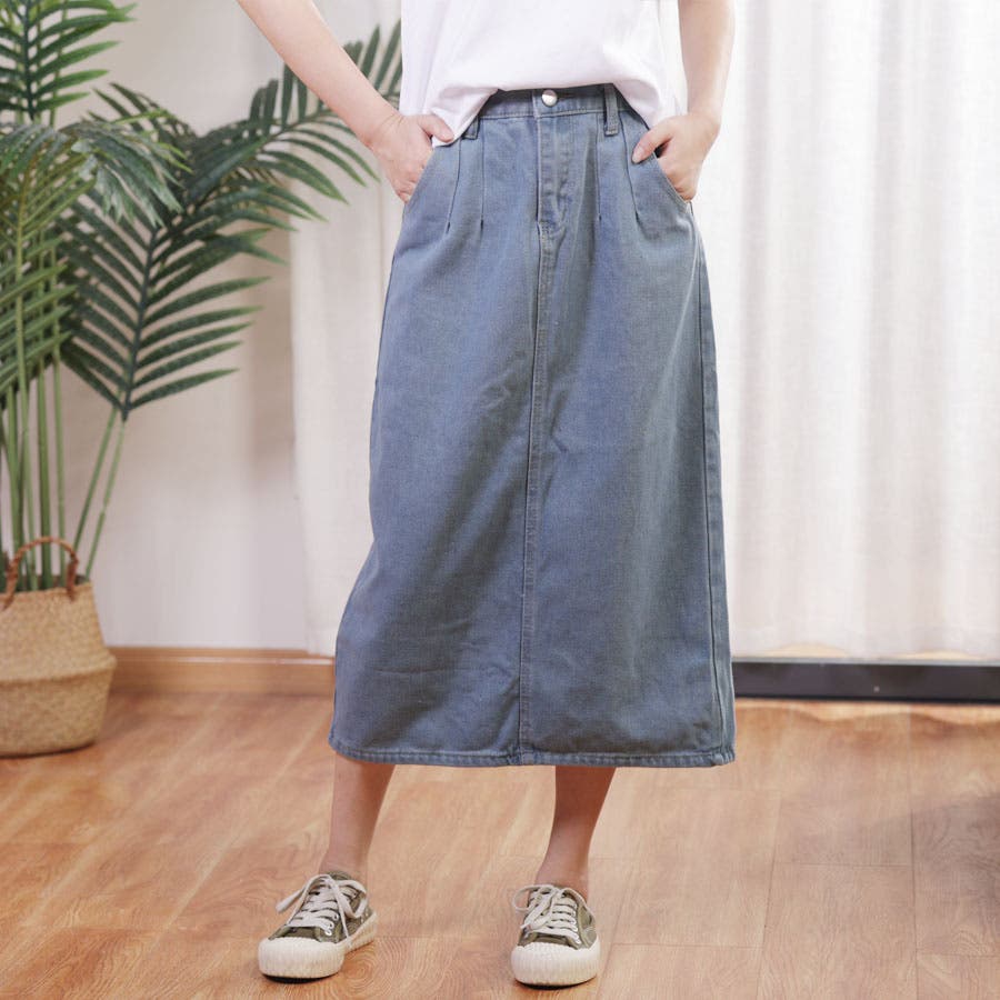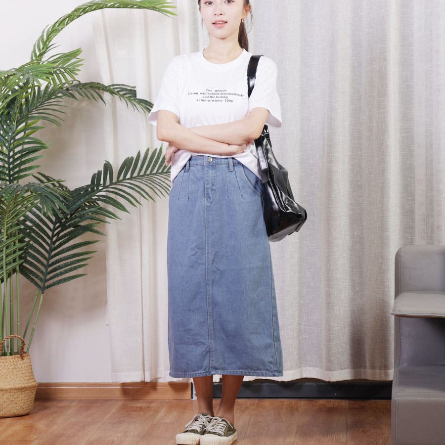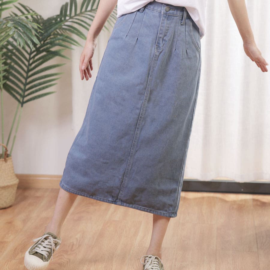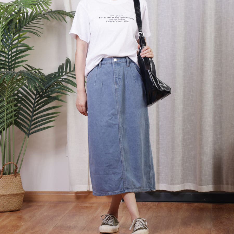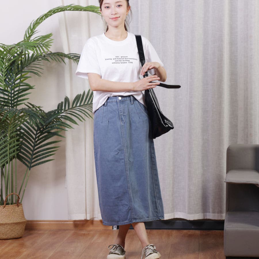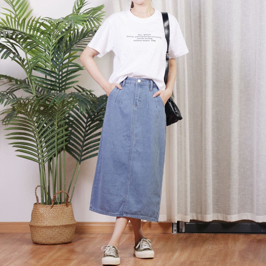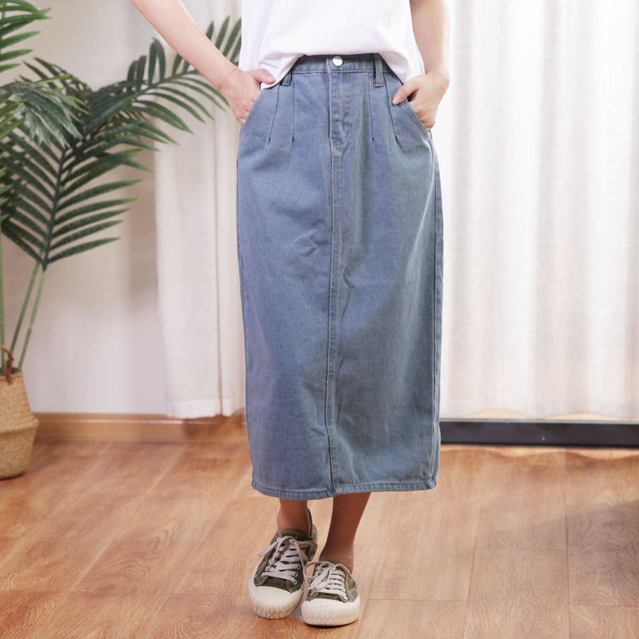 スタイルアップ効果の高いスッキリとしたシルエットのデニムスカート。
