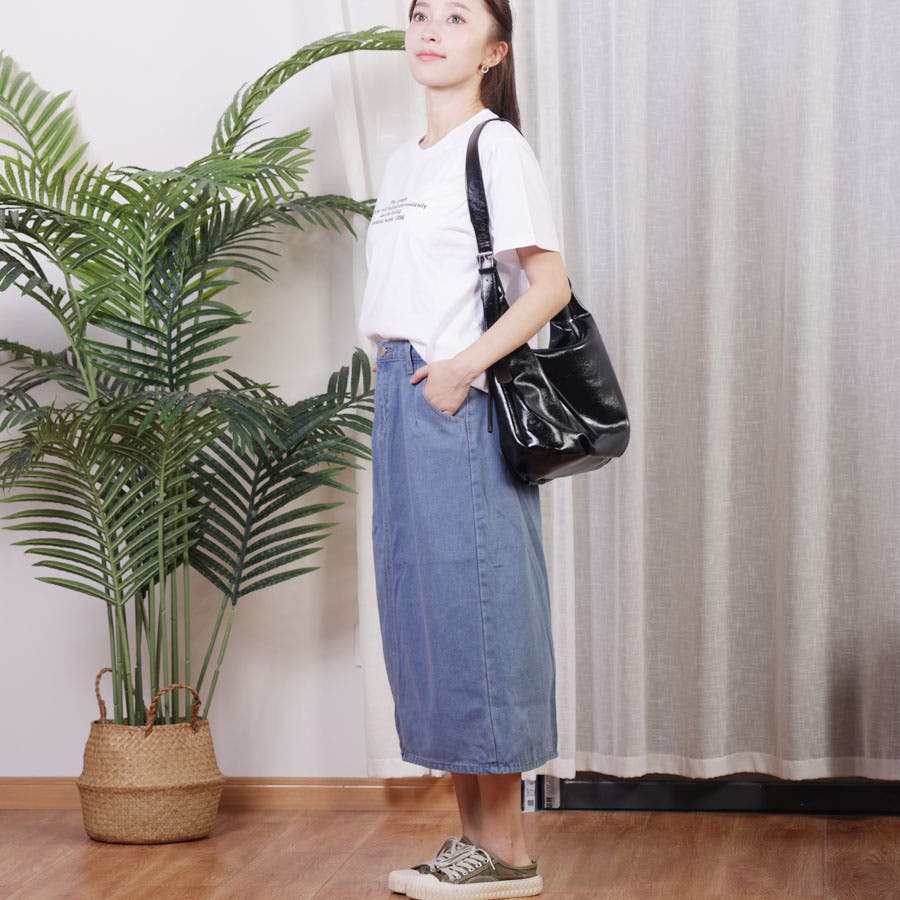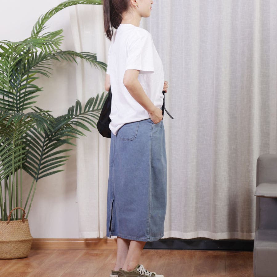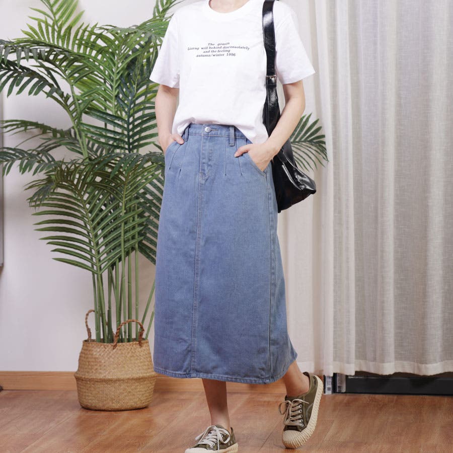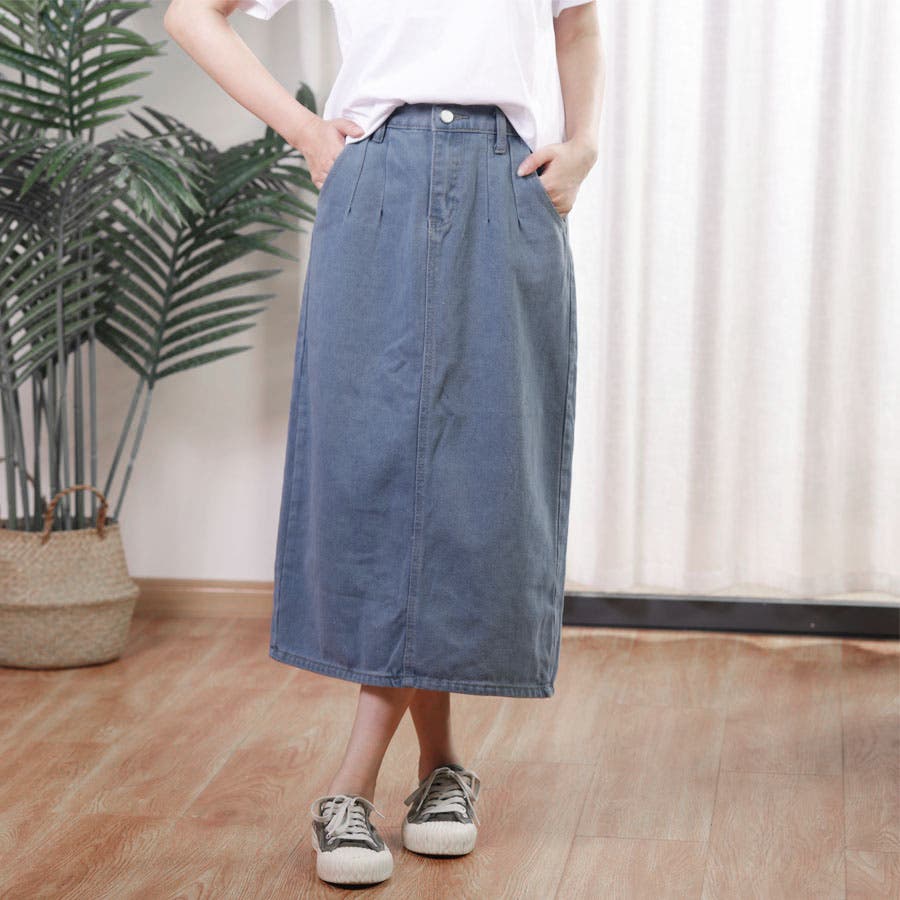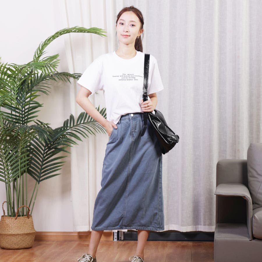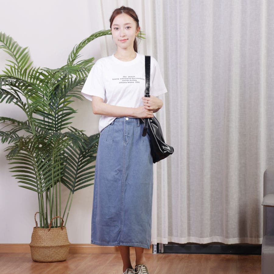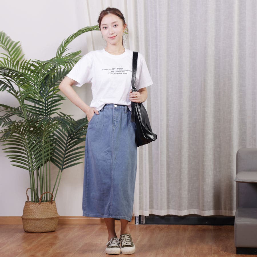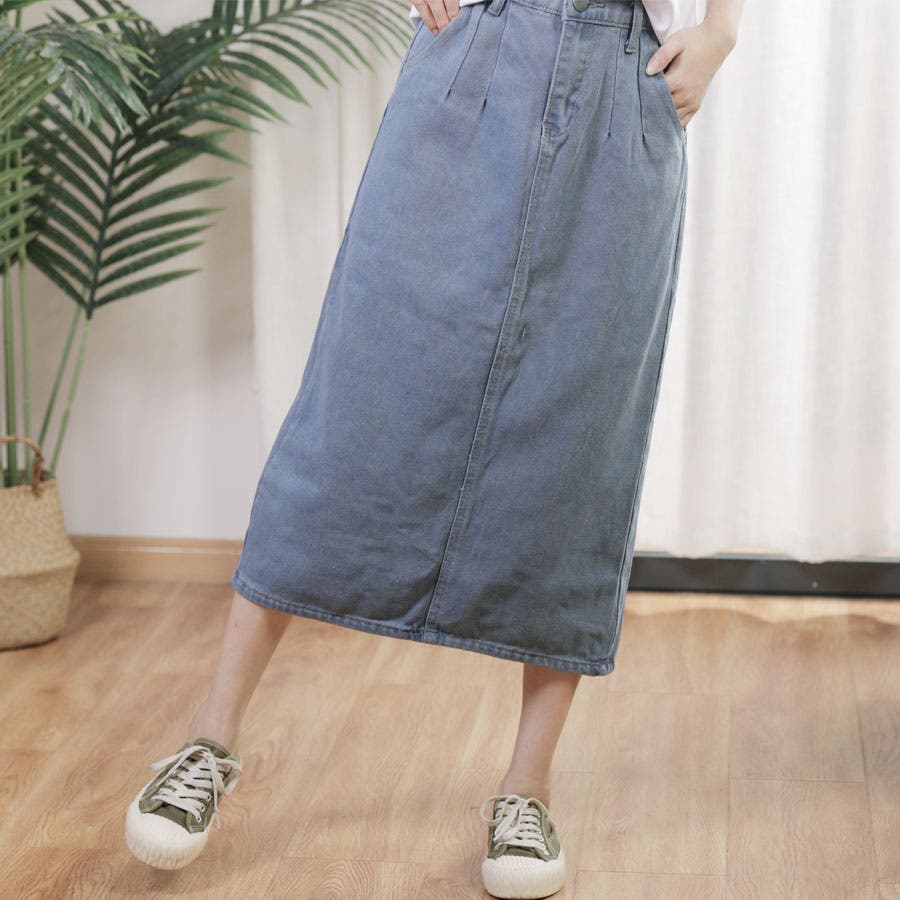 スタイルアップ効果の高いスッキリとしたシルエットのデニムスカート。