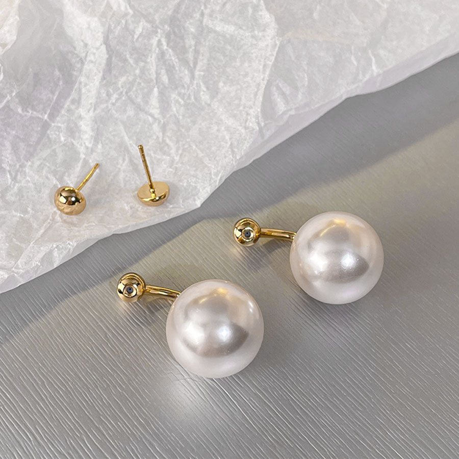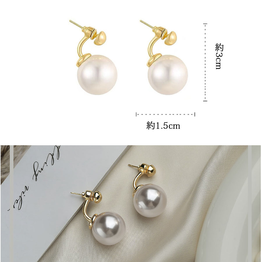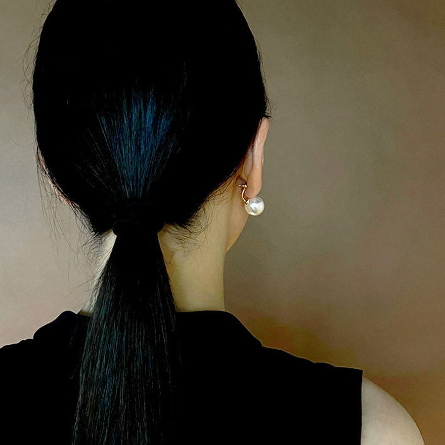 大きめパールはややマットな質感で主張しすぎず、顔まわりに優雅な印象を与えます。