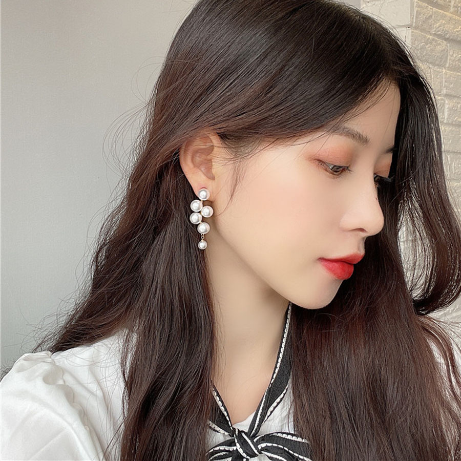 揺れるピアスで可愛らしく、フェミニンな印象を高める。