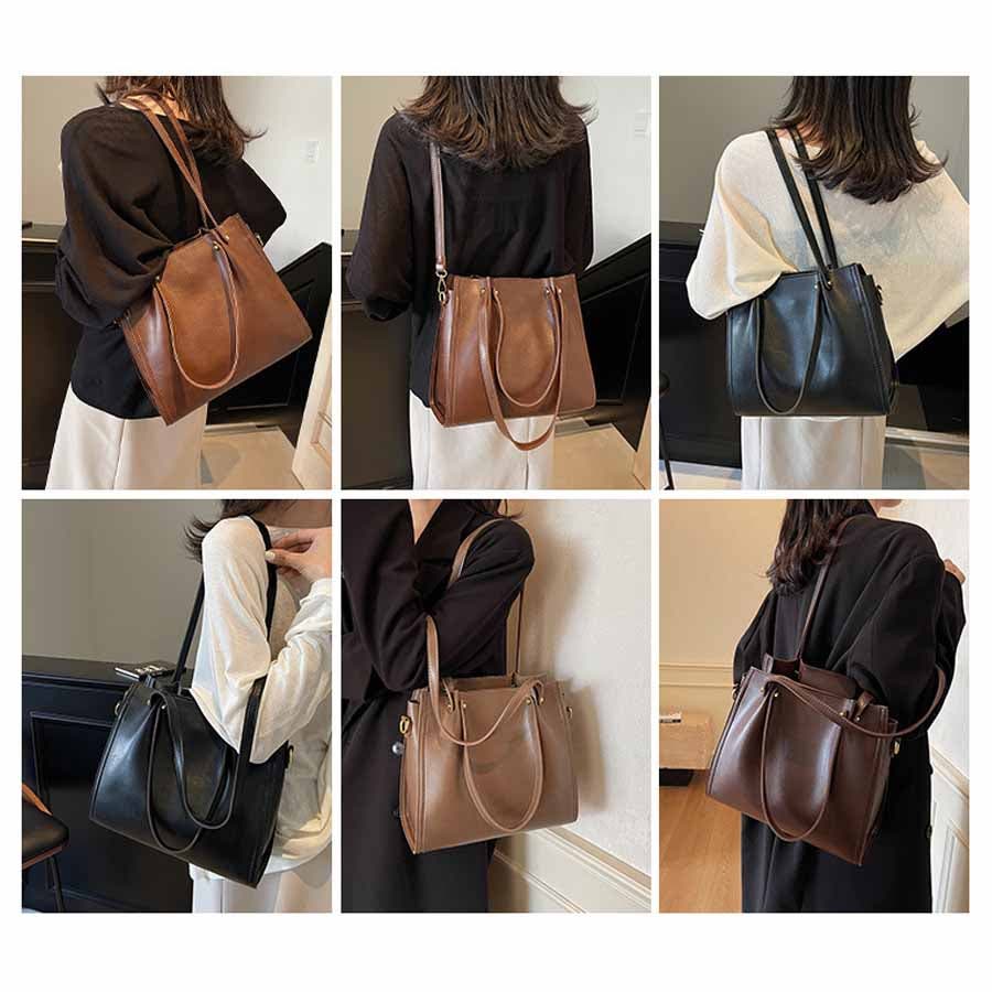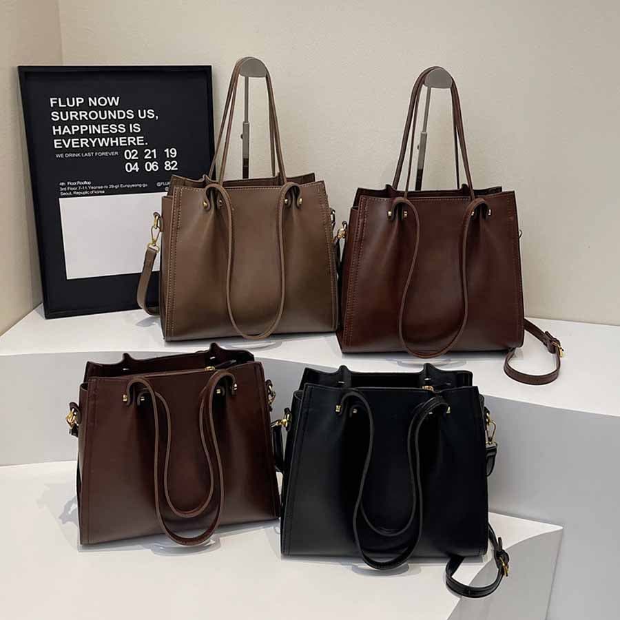ショルダーベルトを付けて、肩掛け・斜め掛けとスタイルに合わせて持ち方を変えられます。シンプルデザインで普段使いにも通勤用にもお使い頂けます。