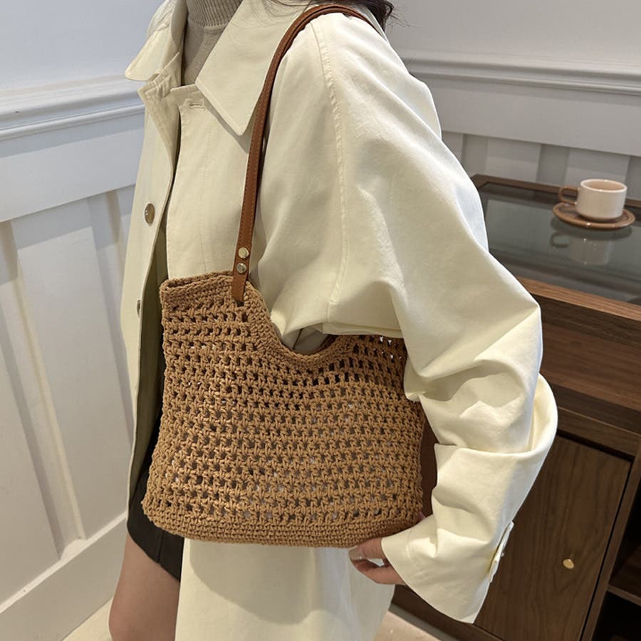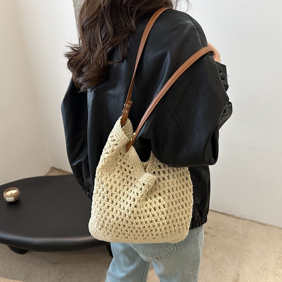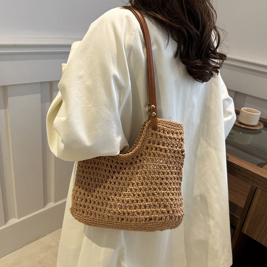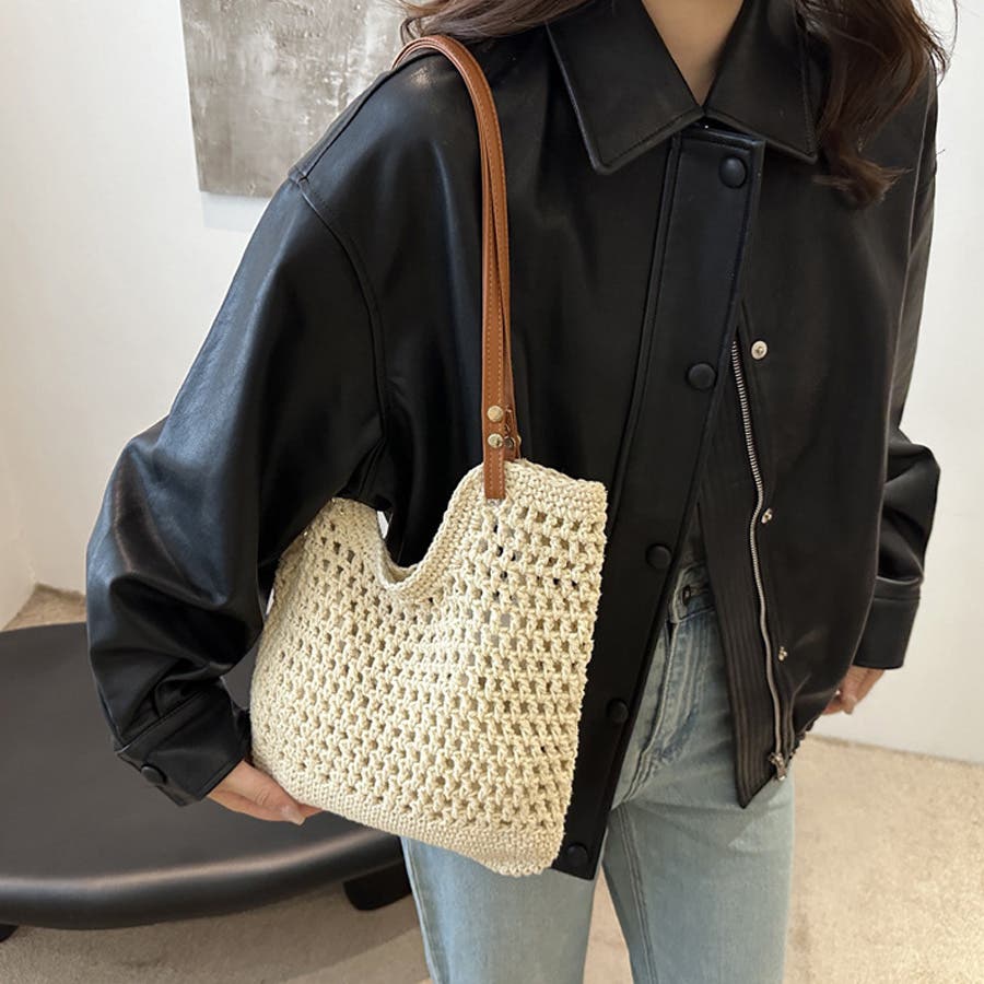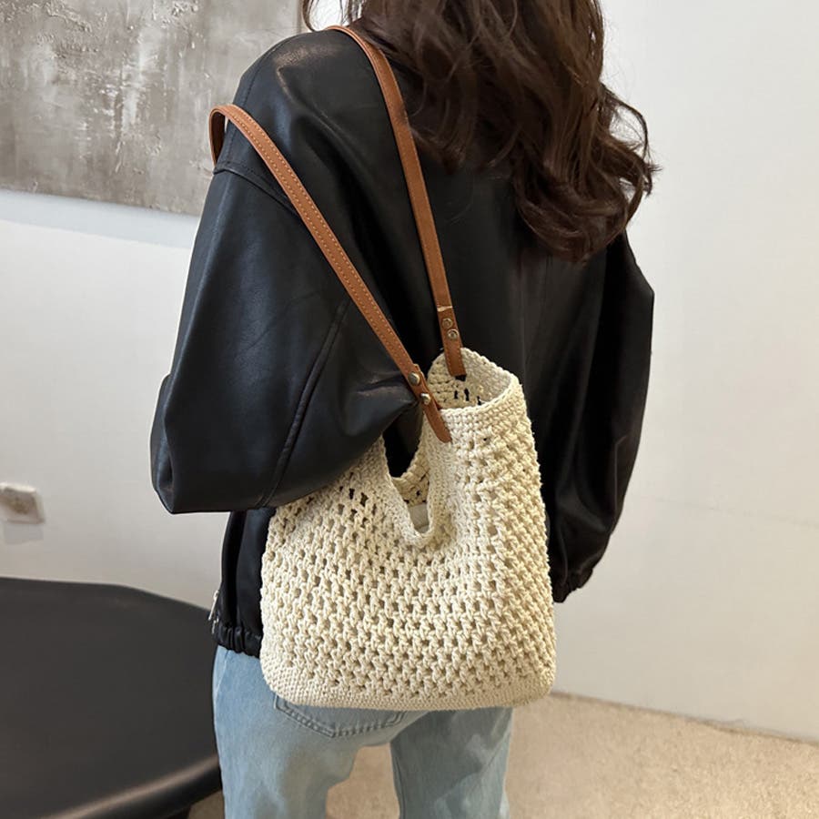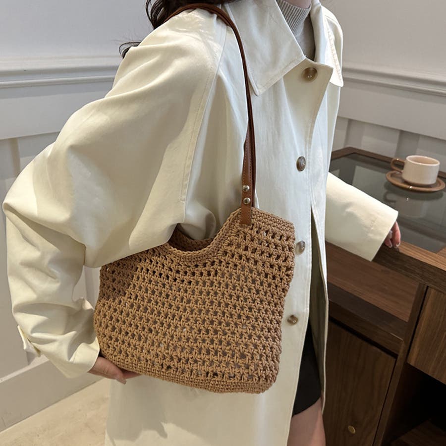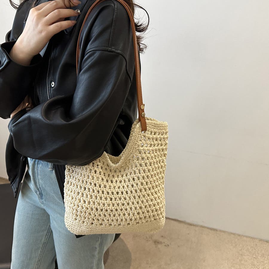 ポリエステル糸を丁寧に編み込んだトートバッグ。