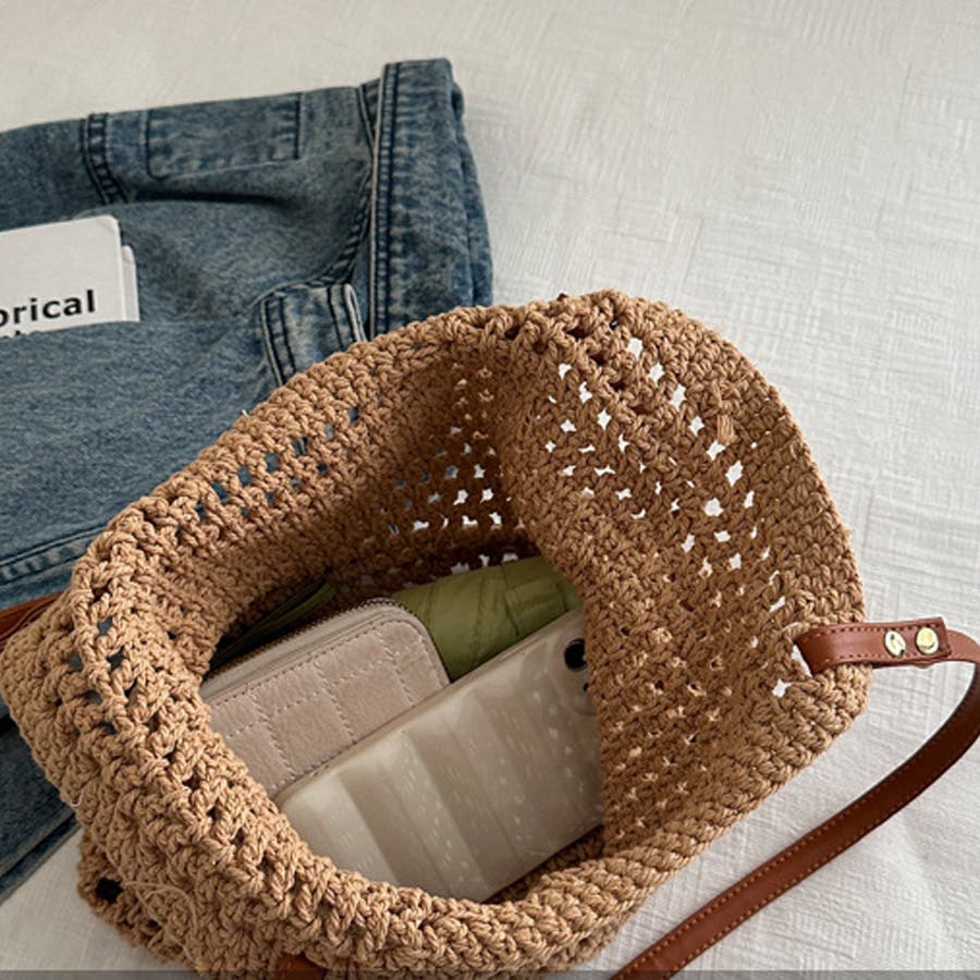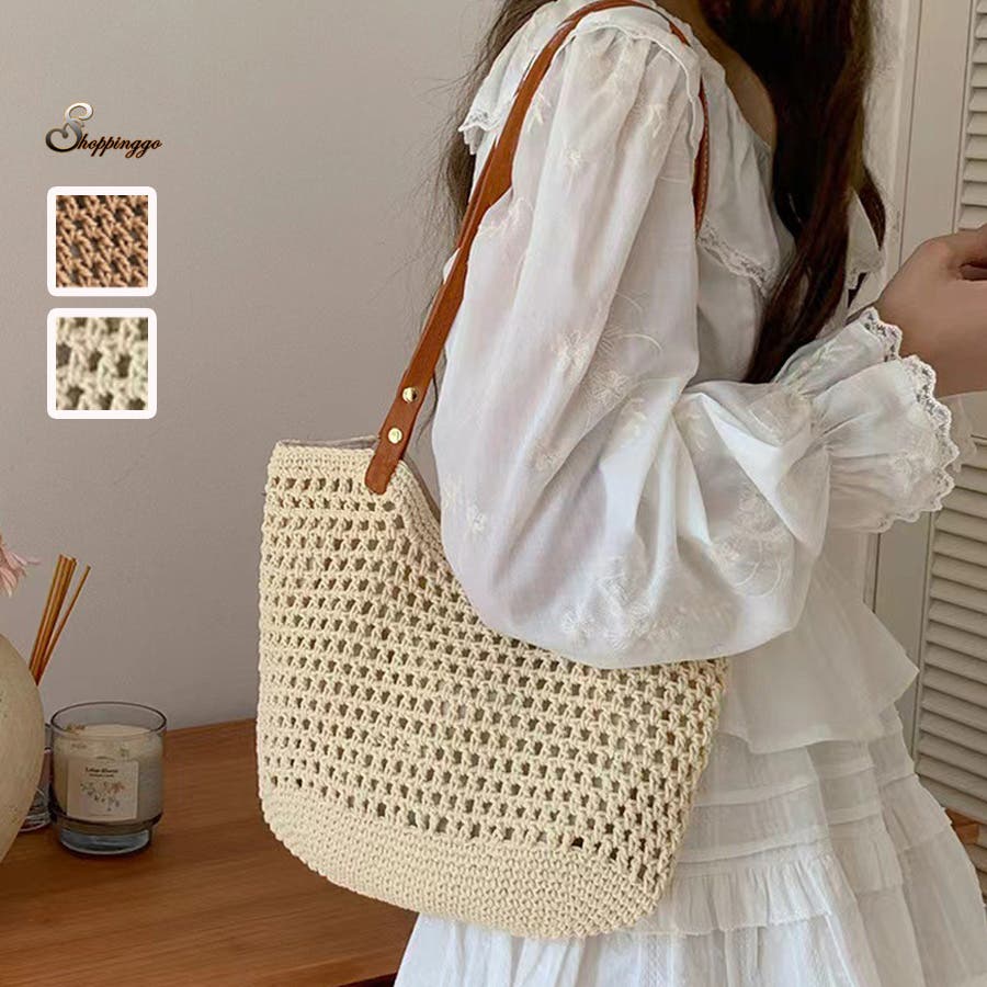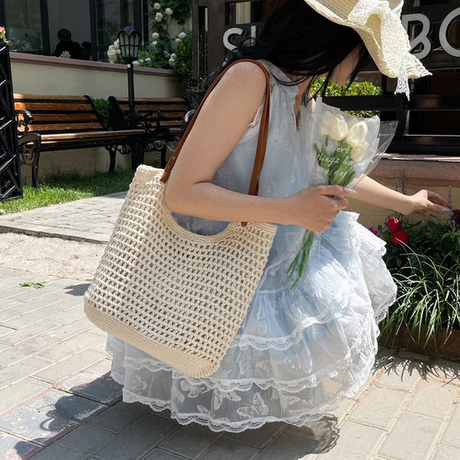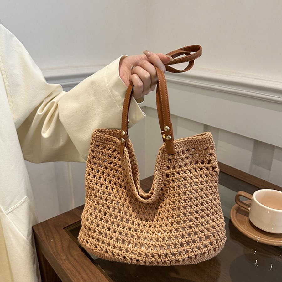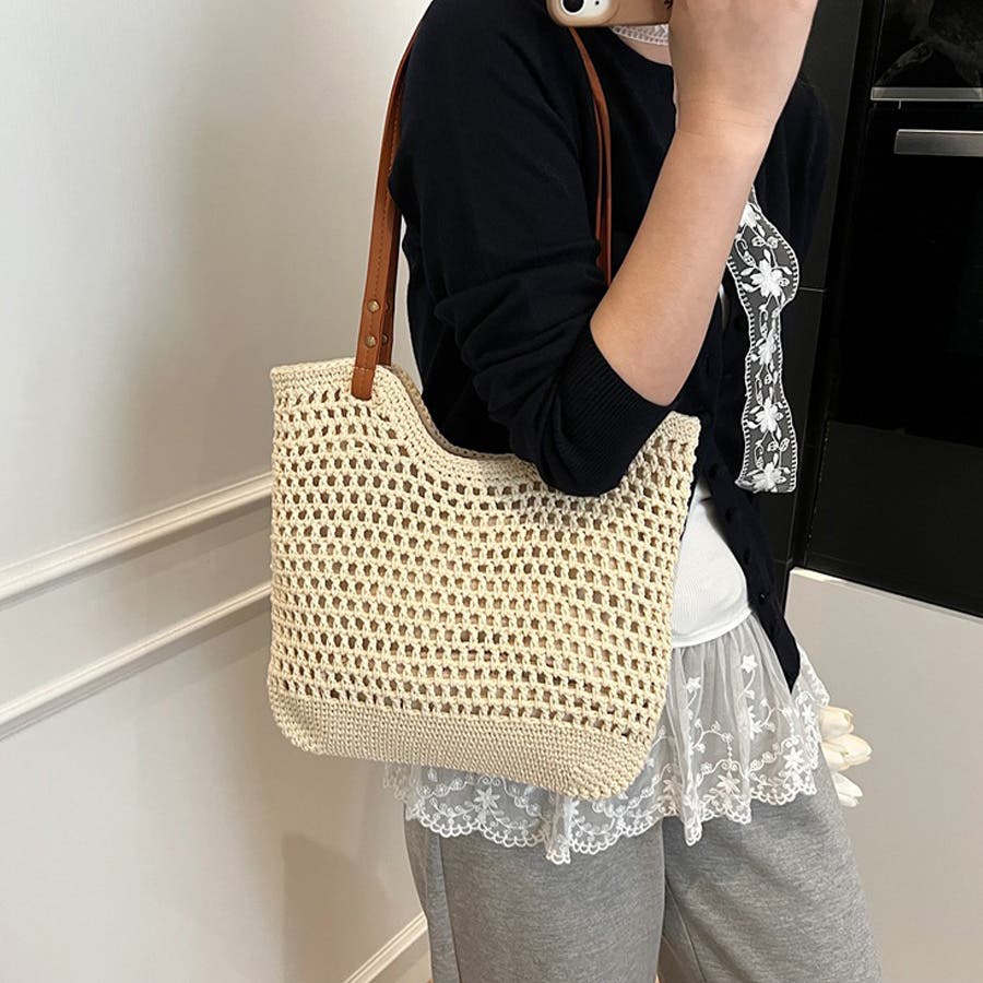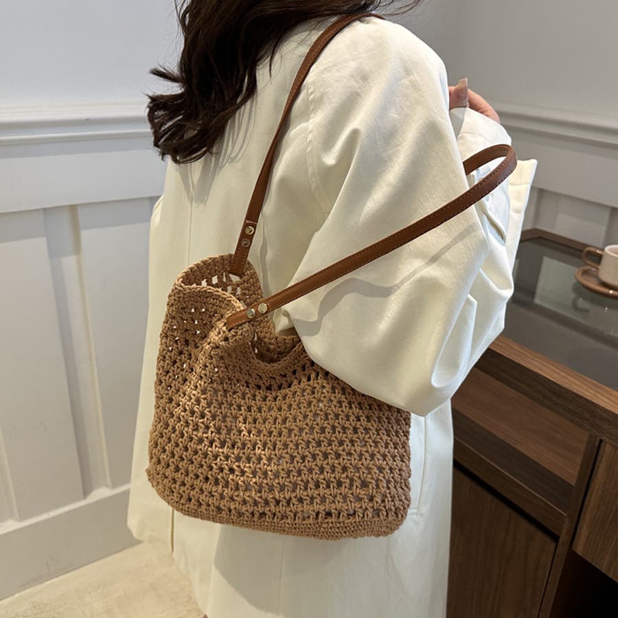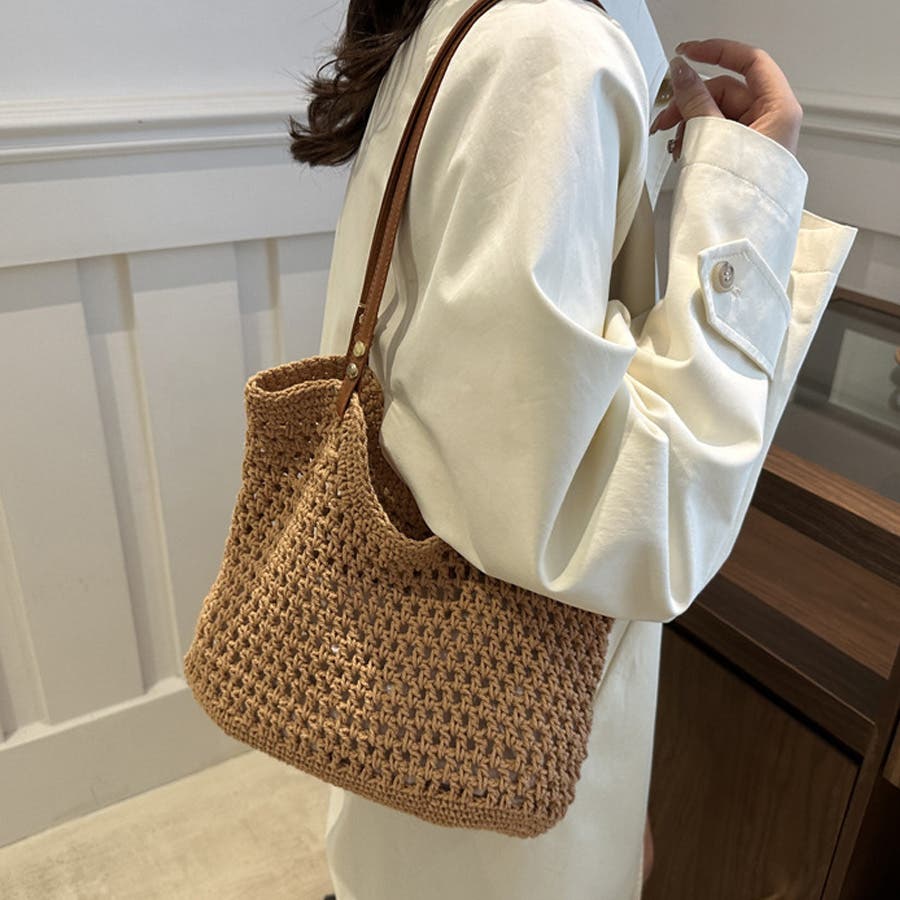 ポリエステル糸を丁寧に編み込んだトートバッグ。
