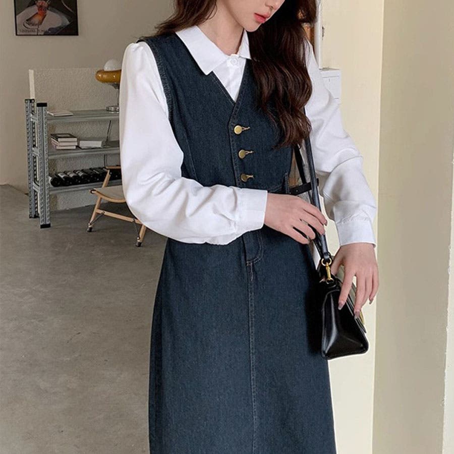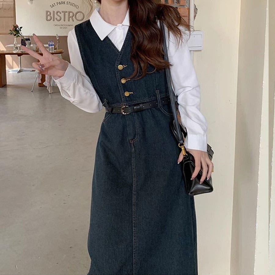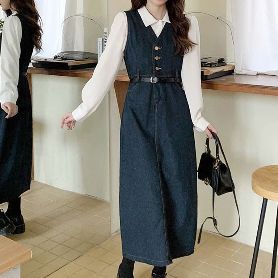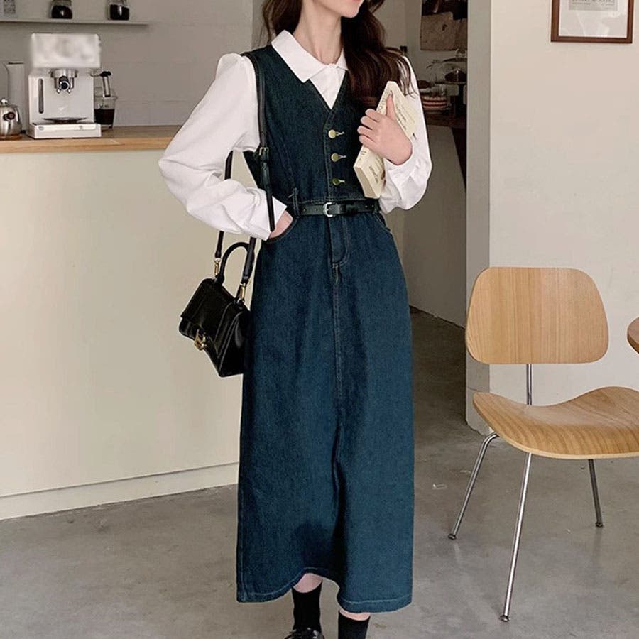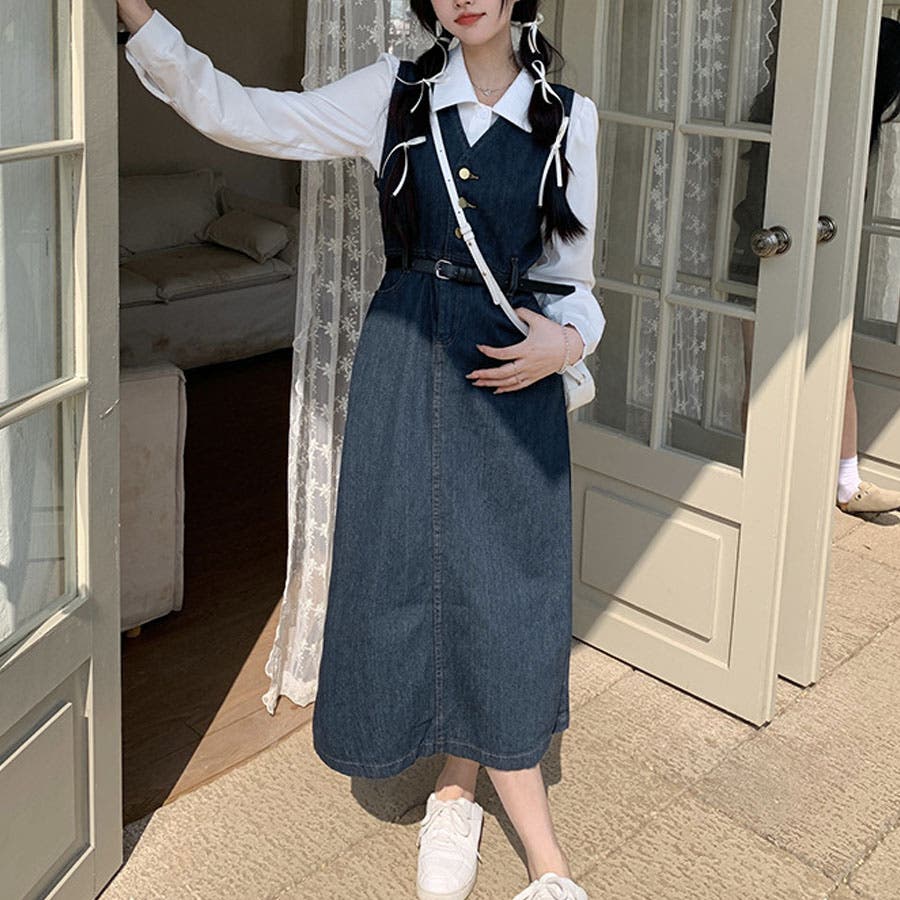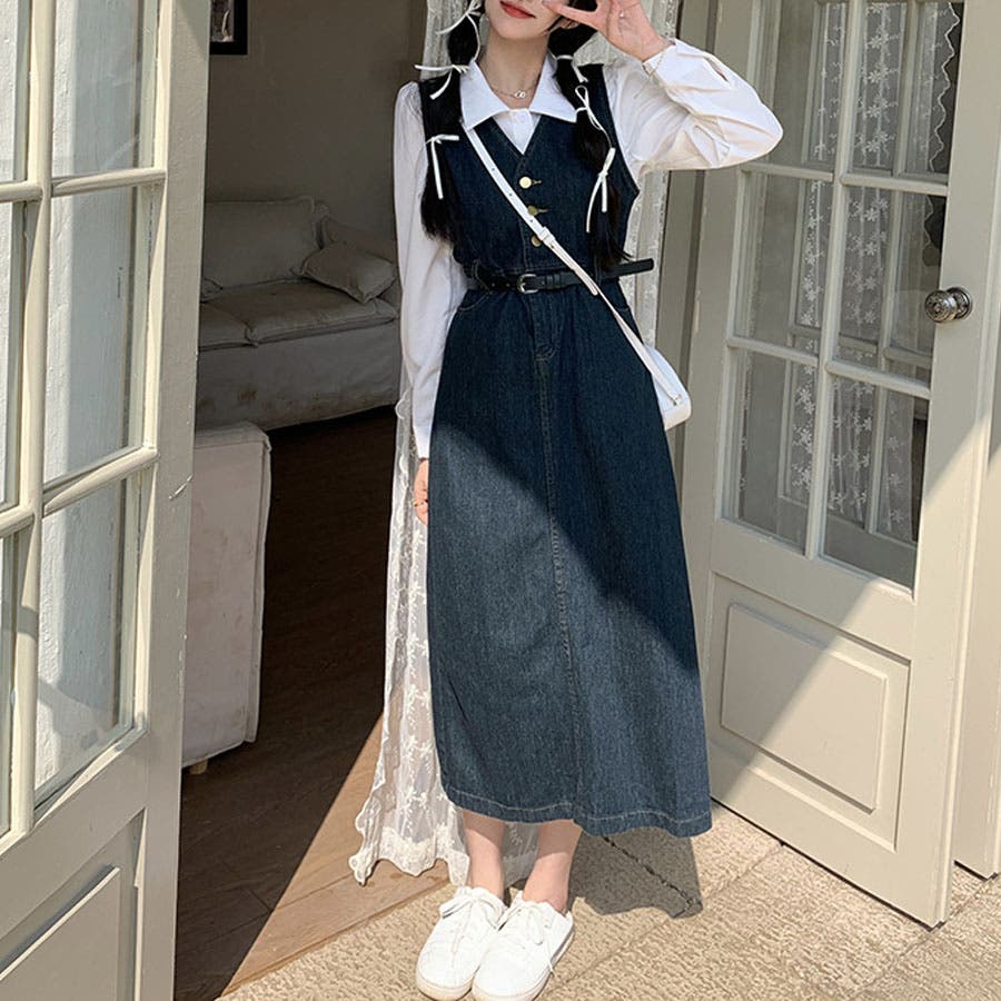 【ワンピース】総丈:111cm、ウエスト:約68-80cm、裾幅:約59cm