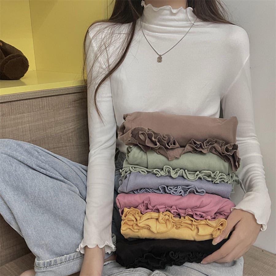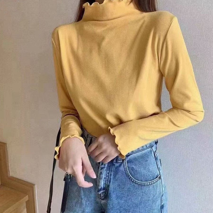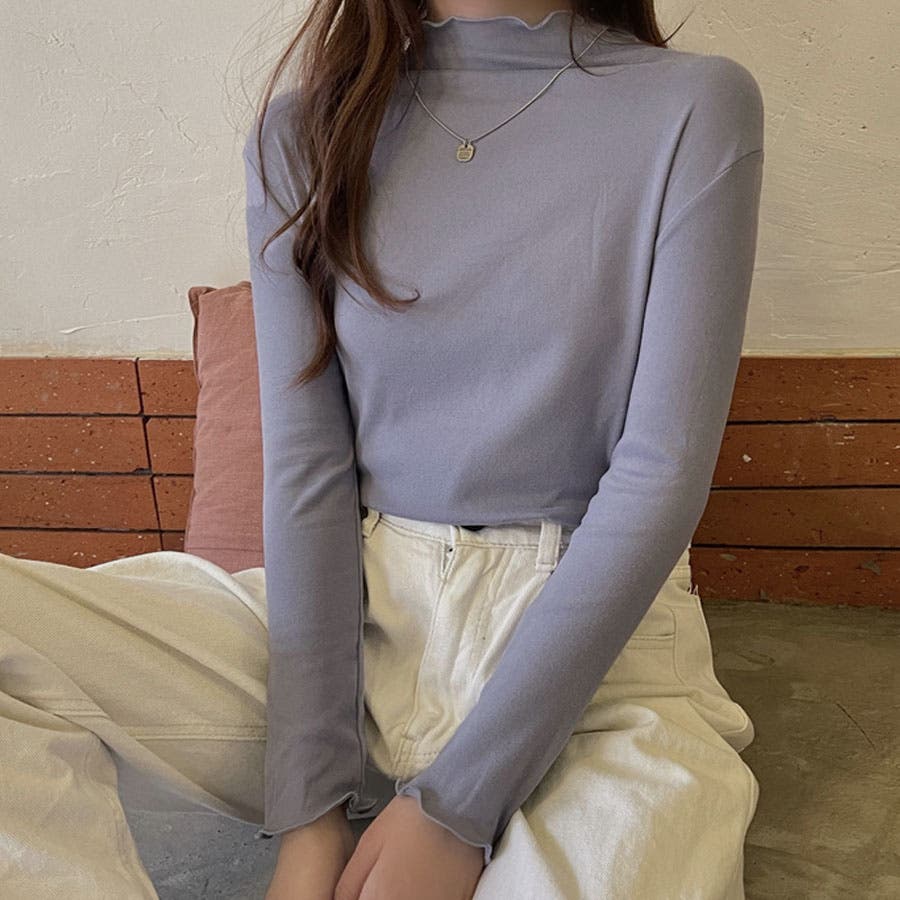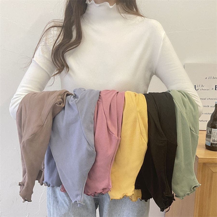 可愛いハイネックメロー仕上げ、顔周りがスッキリ見えます。