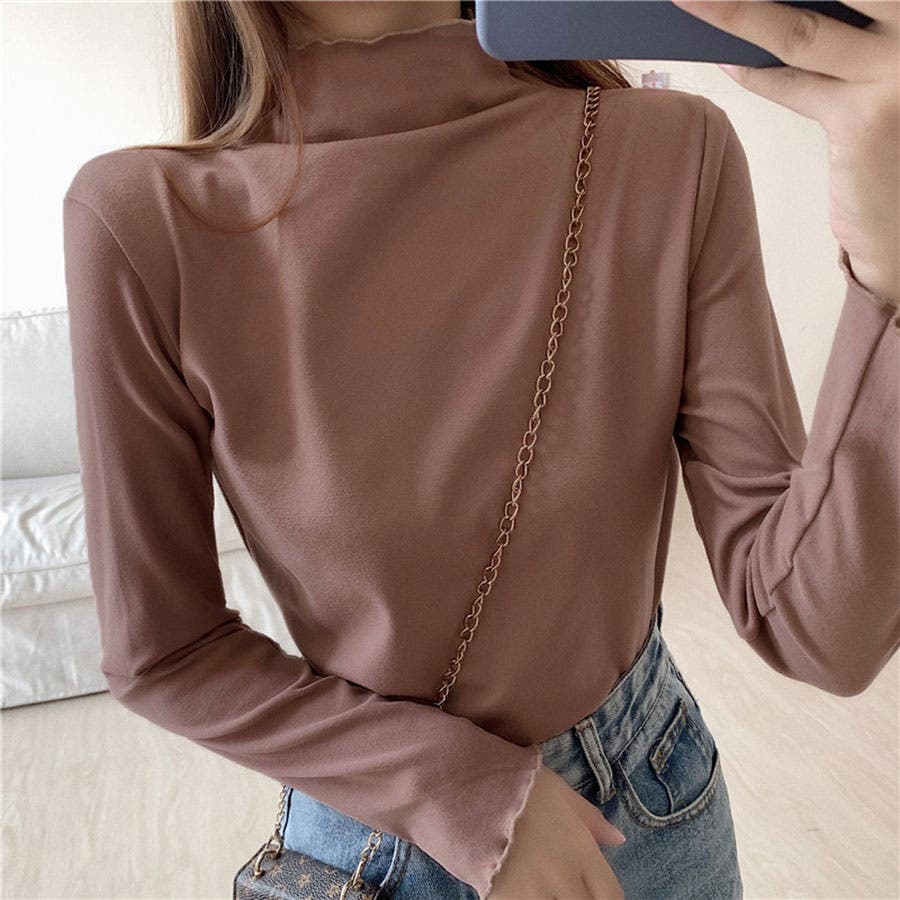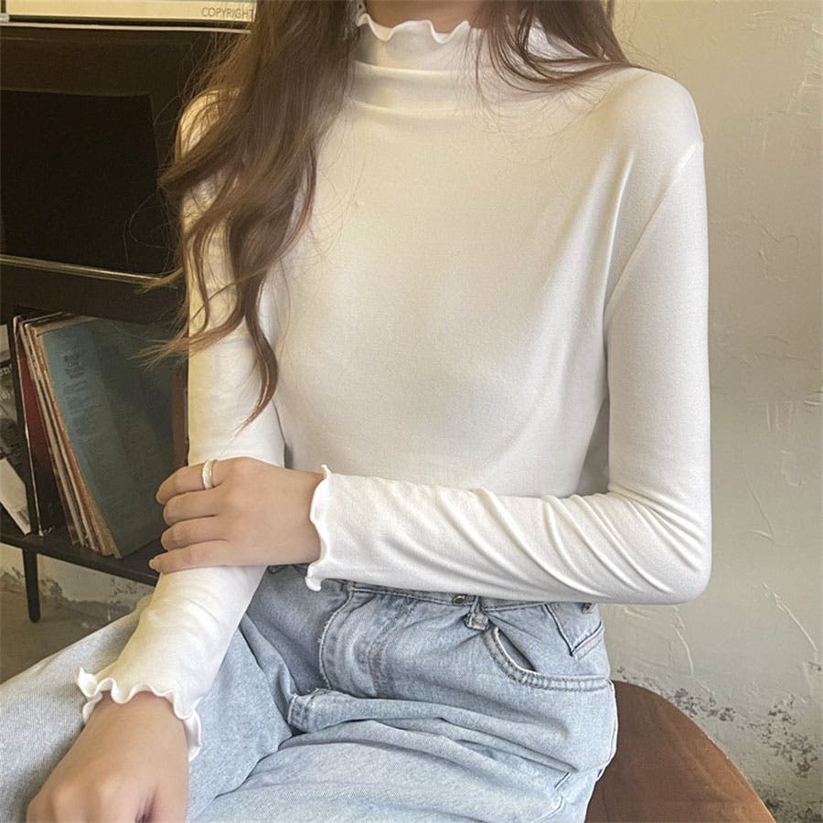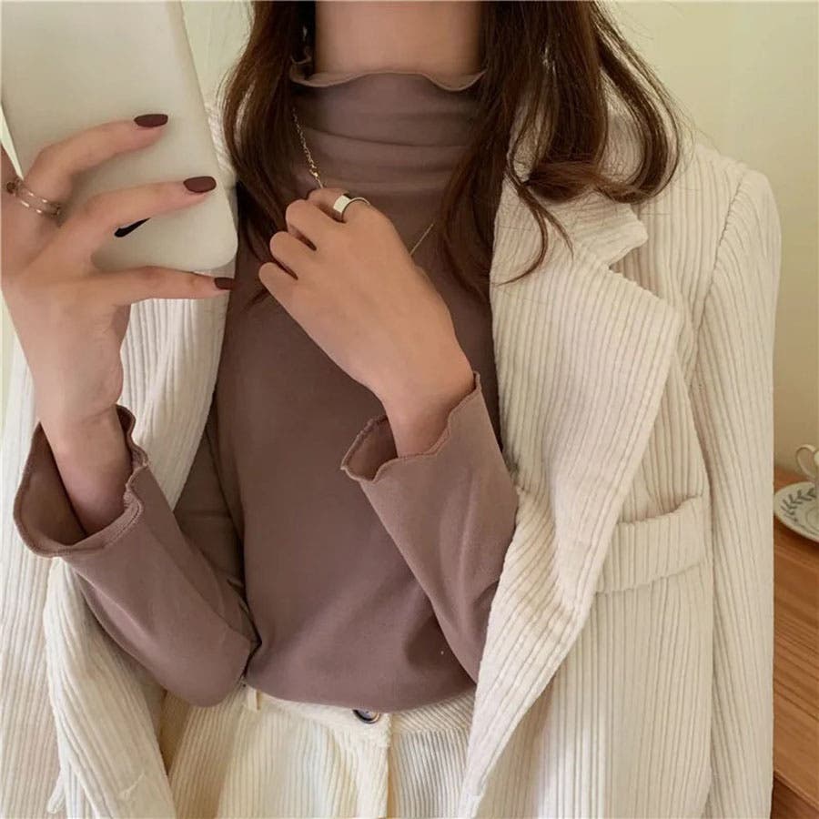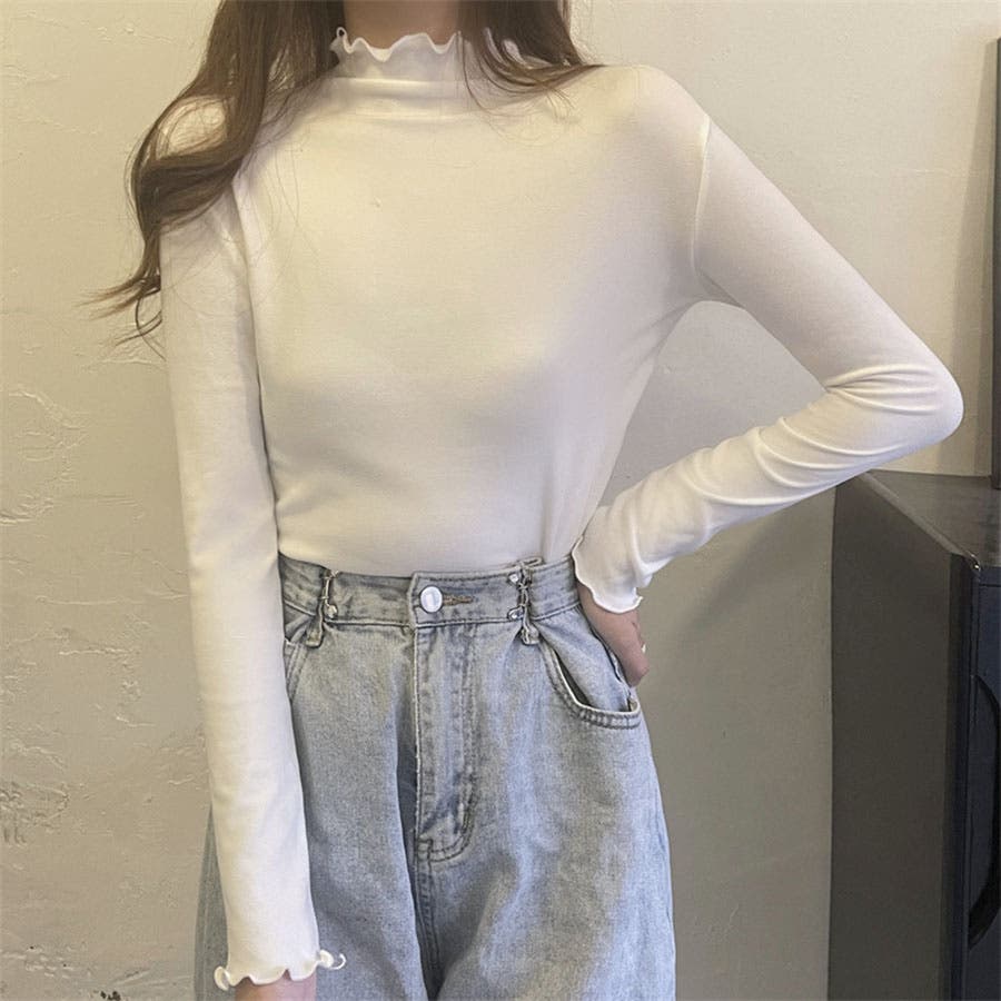可愛いハイネックメロー仕上げ、顔周りがスッキリ見えます。