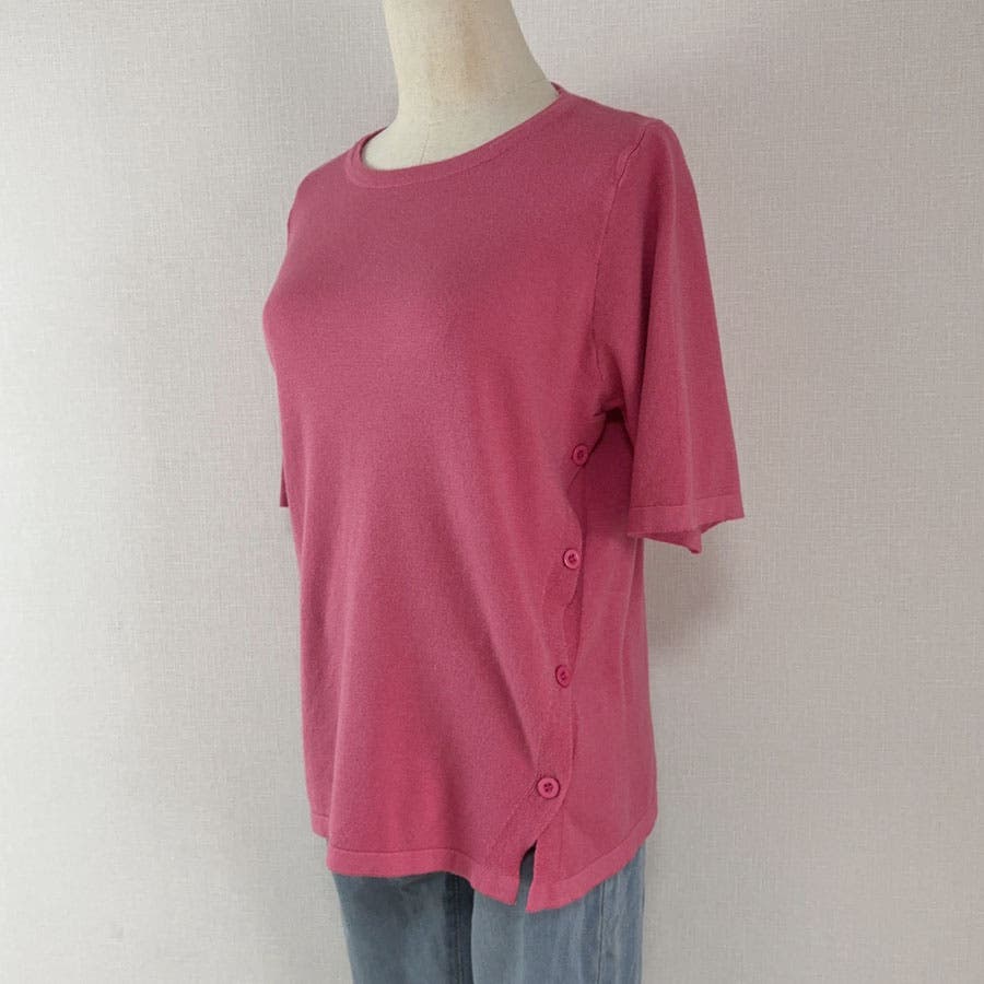 夏服 サイドボタンサマーニット 半袖