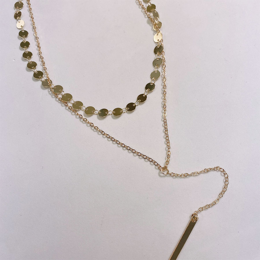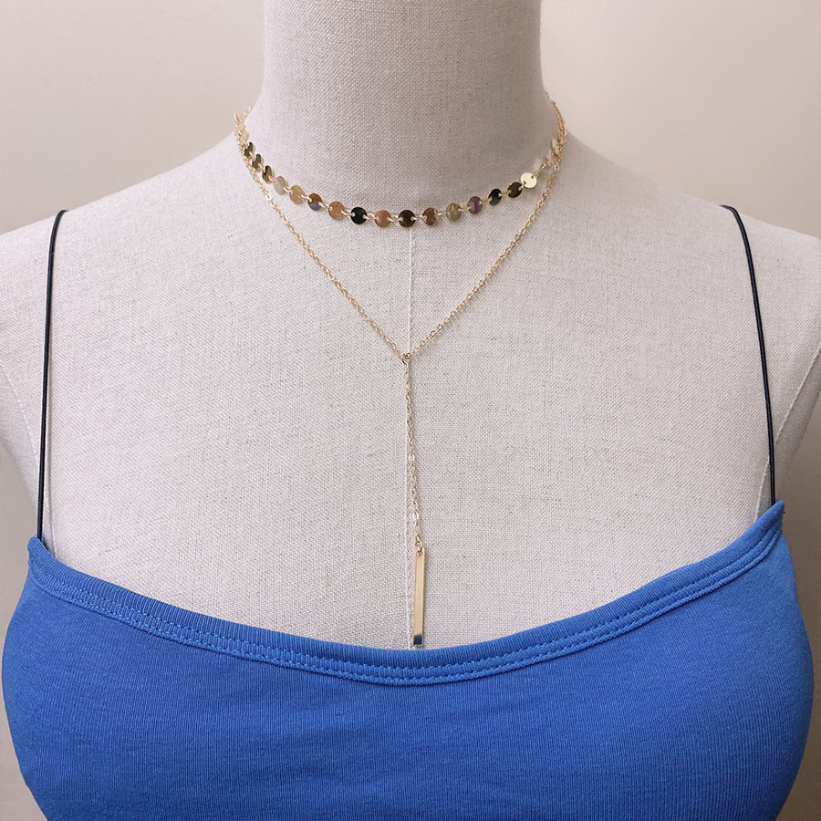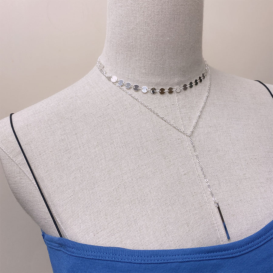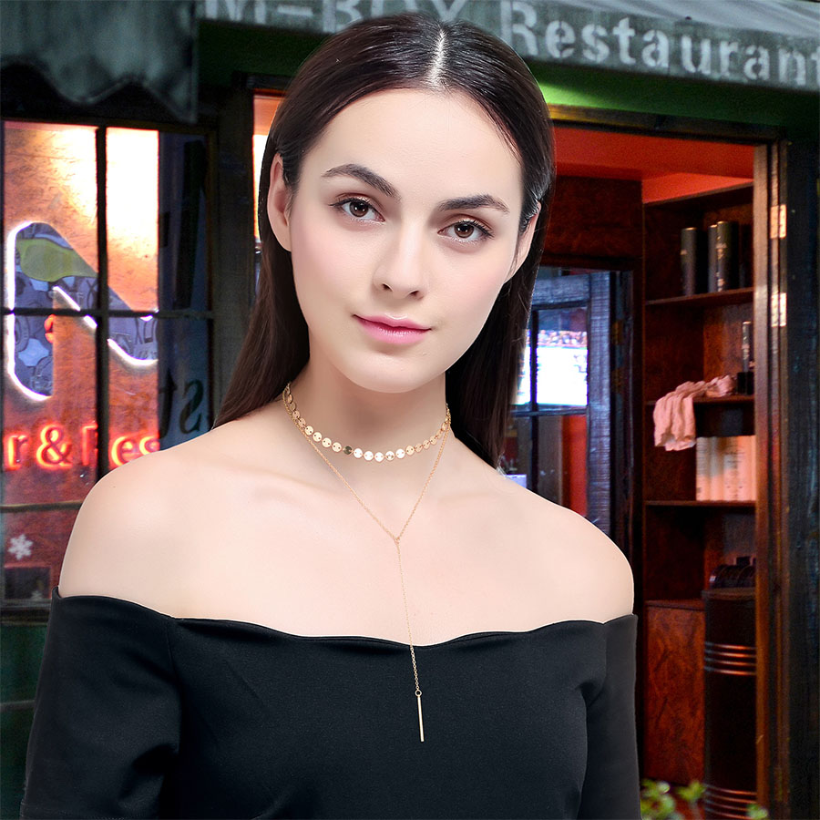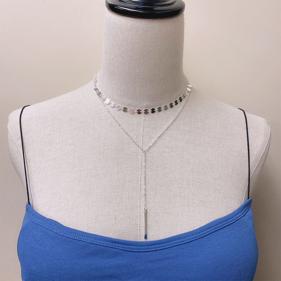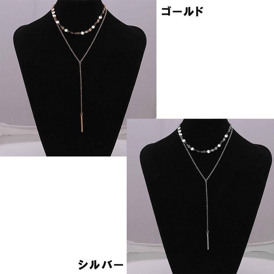 Y字のぶら下がりチェーンが縦ラインを強調し、胸元をよりすっきりと美しく魅せます。