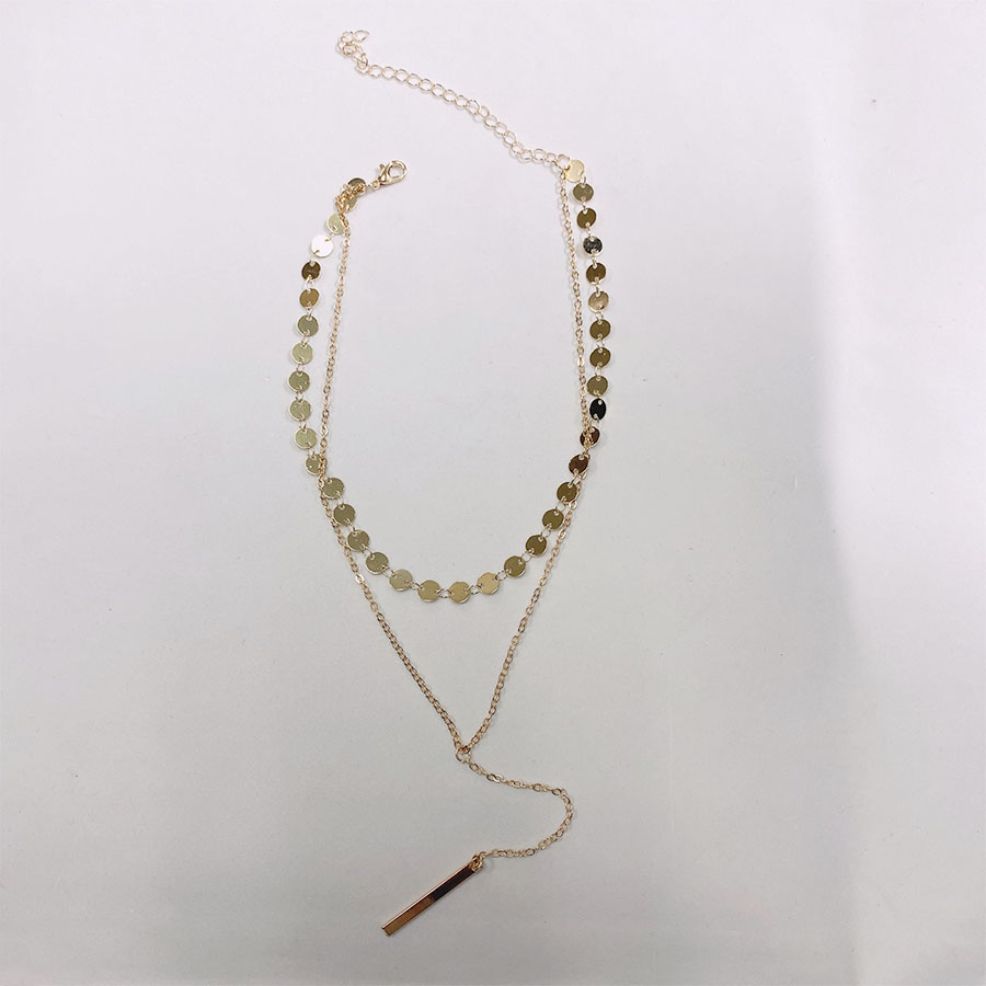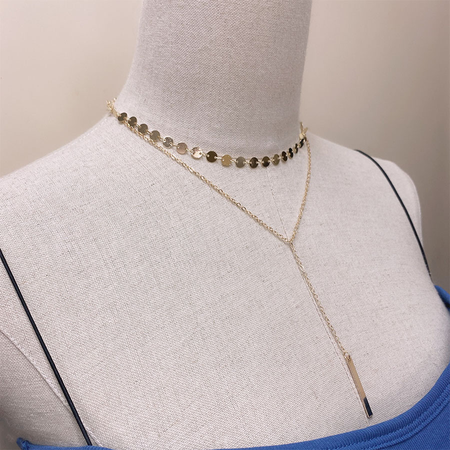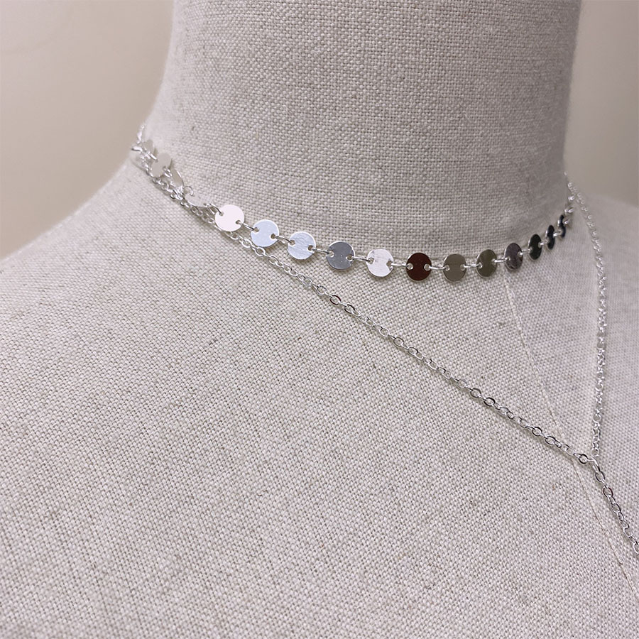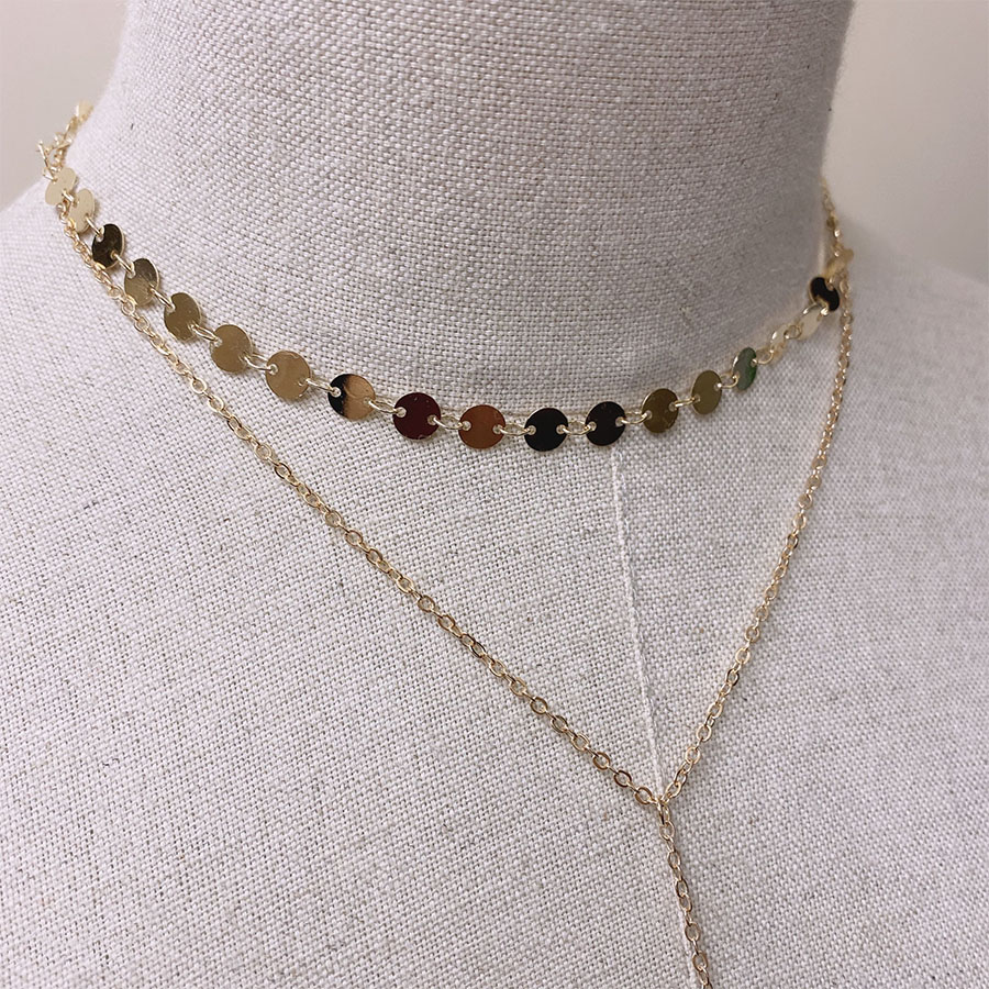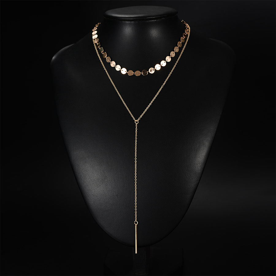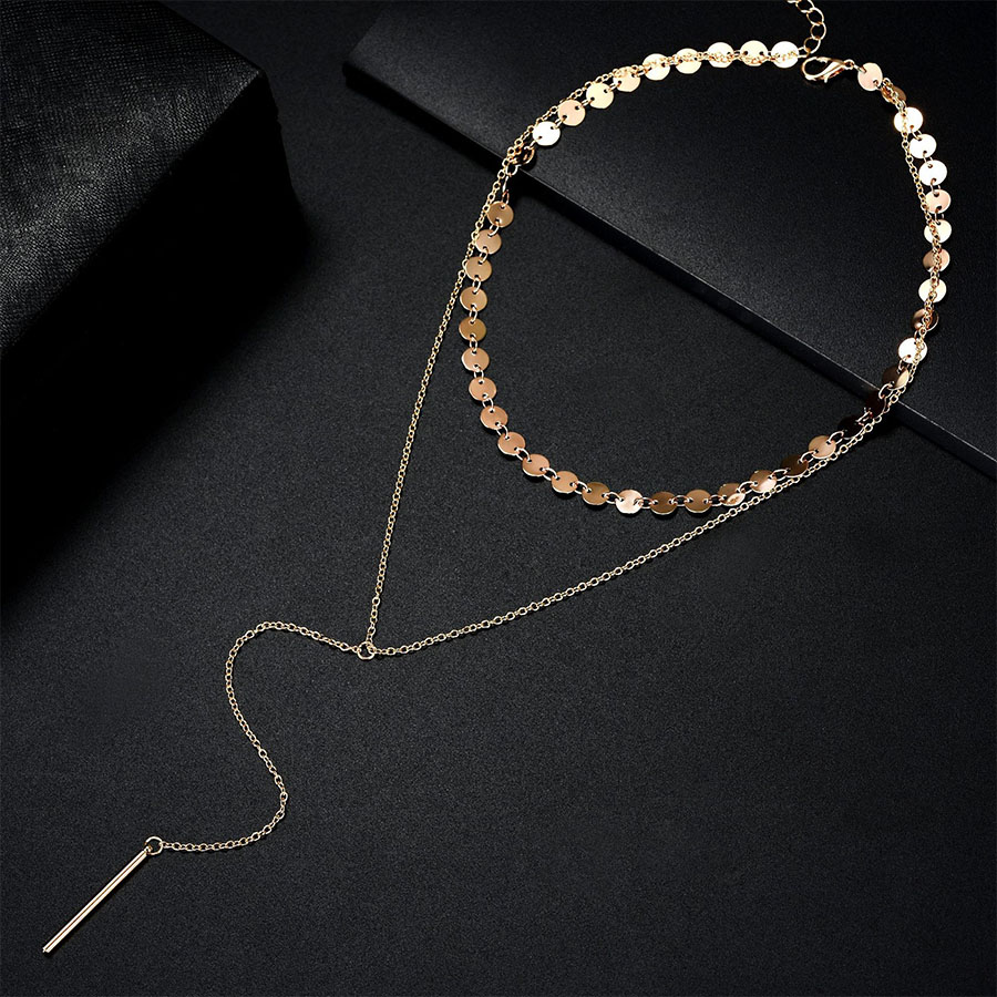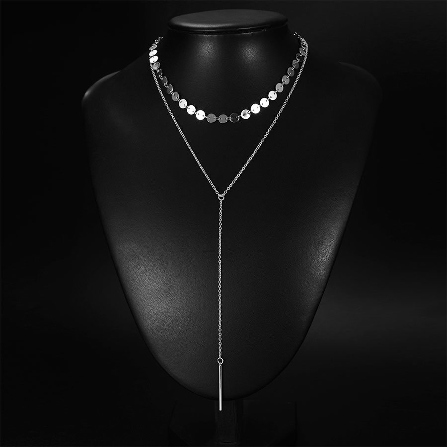 Y字のぶら下がりチェーンが縦ラインを強調し、胸元をよりすっきりと美しく魅せます。