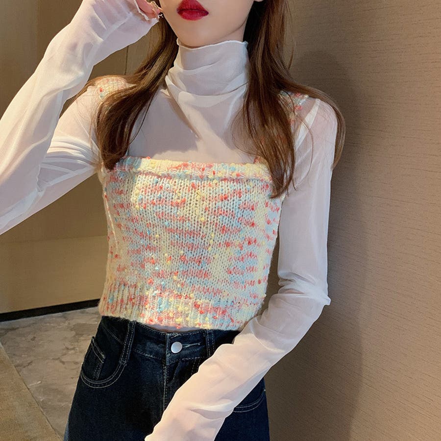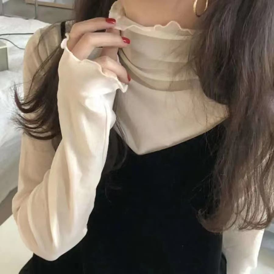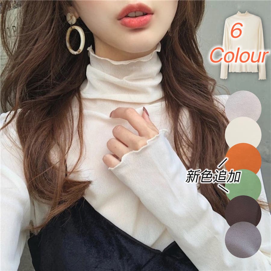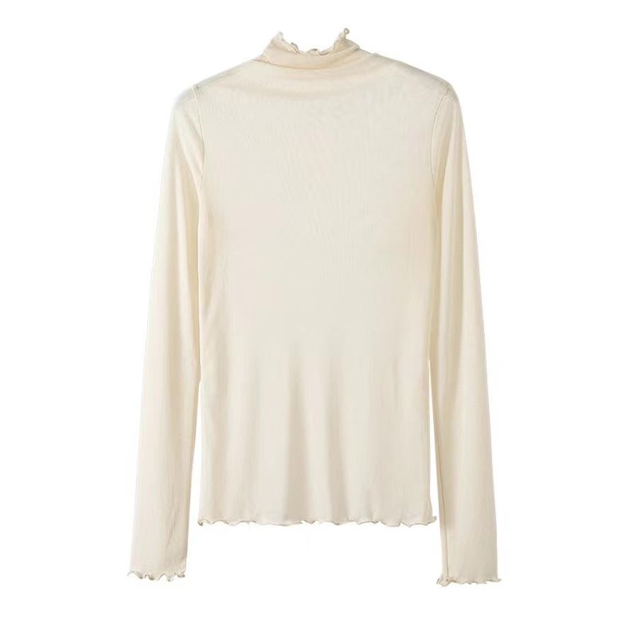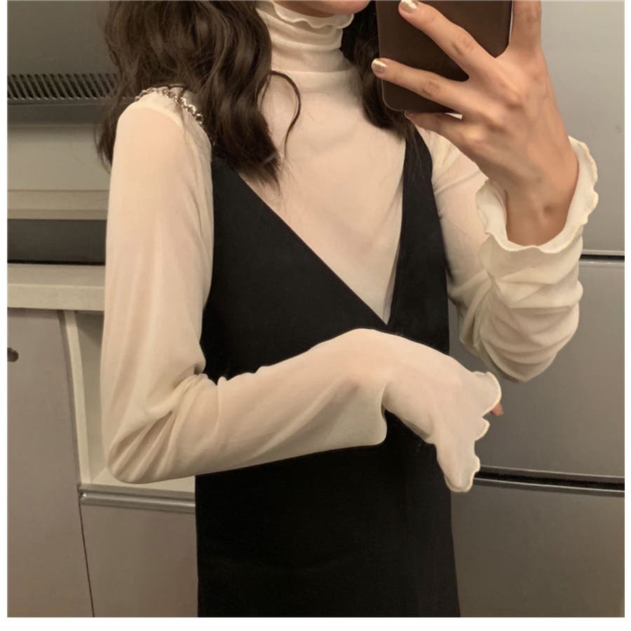 自然な肌見せにも。インナー使いや、重ね着でハイネックの首周りや裾、袖からちらりとのぞかせてもおしゃれに決まります。