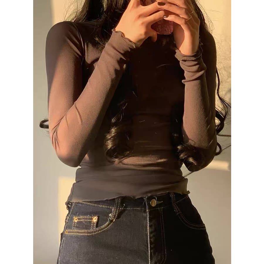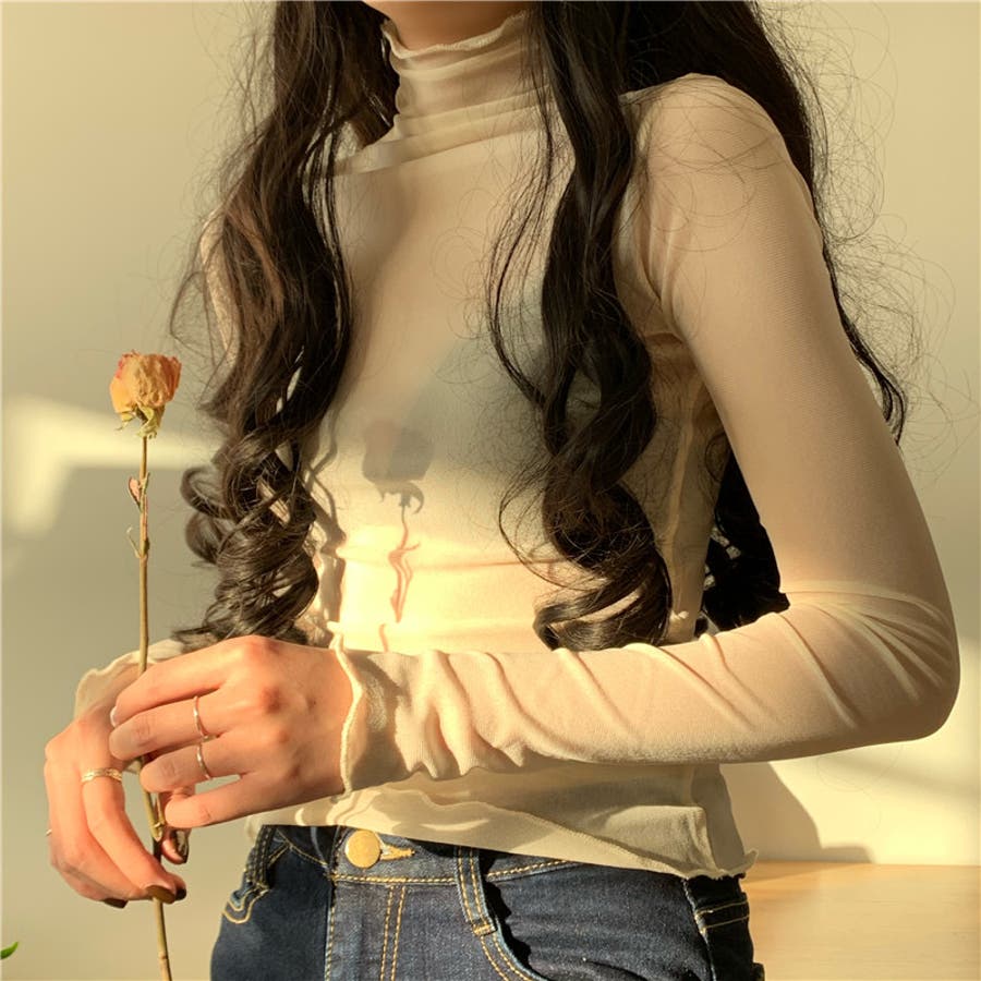 【ホワイト】一気にきれいめな雰囲気に。シアートップス 韓国ファッション 透け