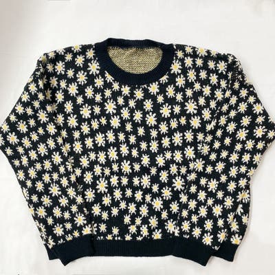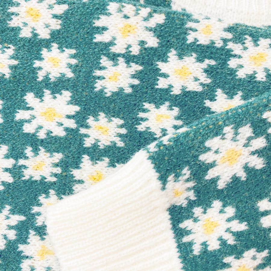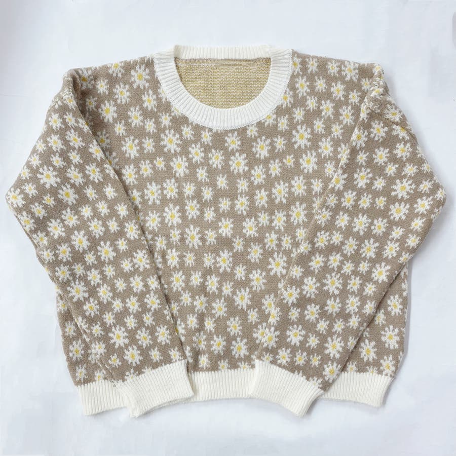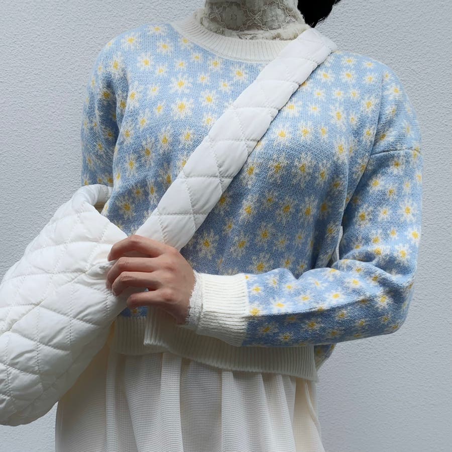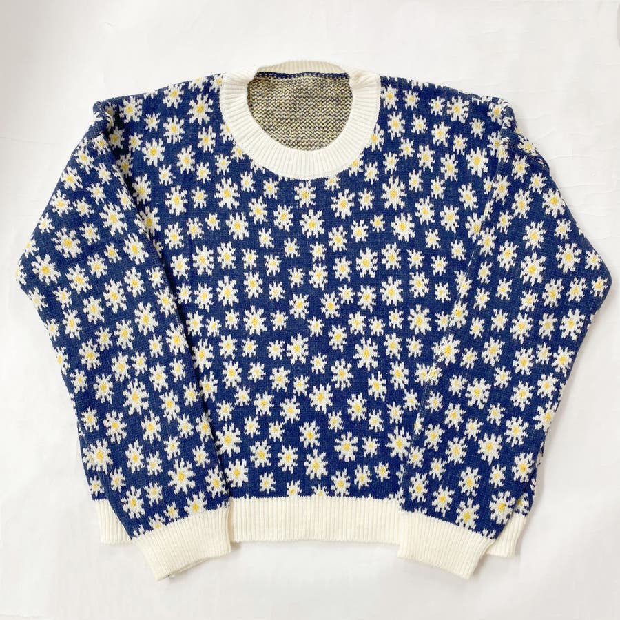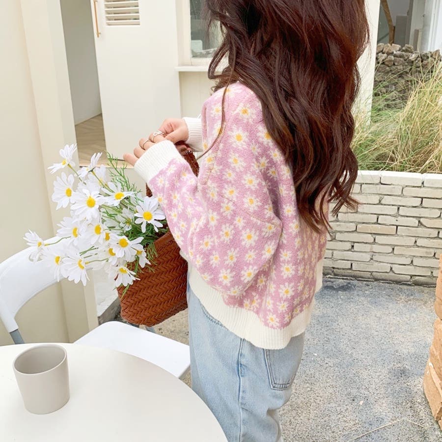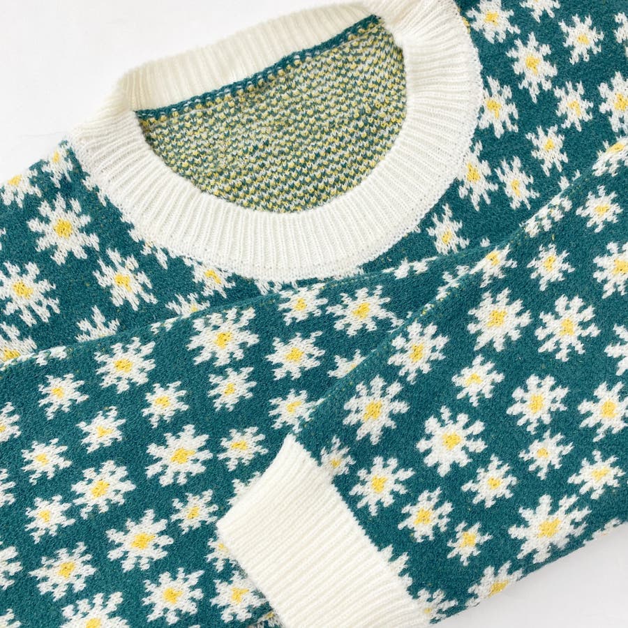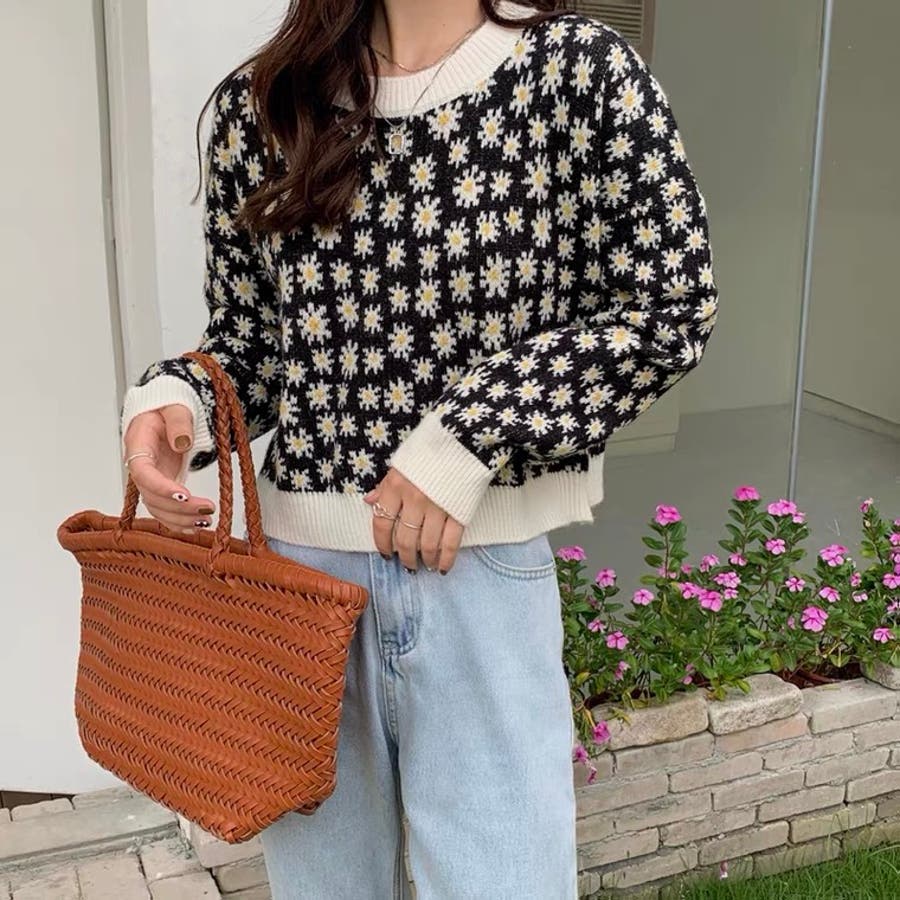 フラワ-柄ニットプルオーバー 韓国ファッション 可愛い