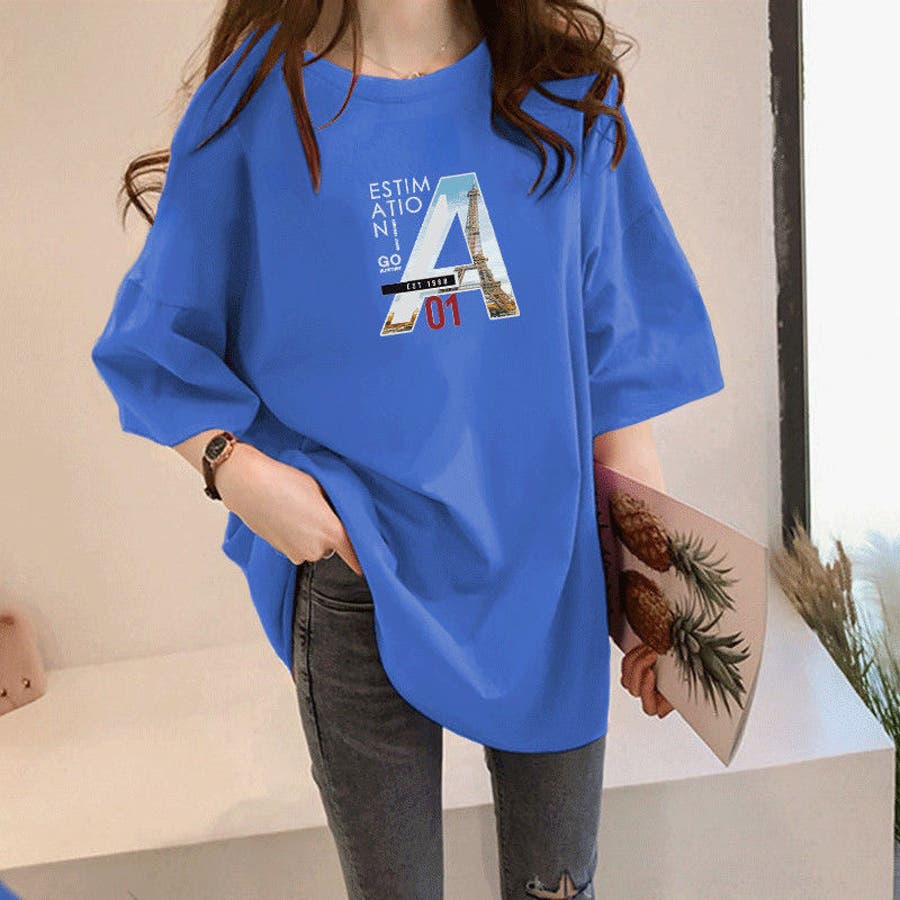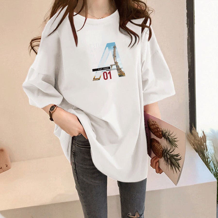 オーバーサイズ ロングT 大きめ 爽やか カットソー 通勤 カジュアル 半袖