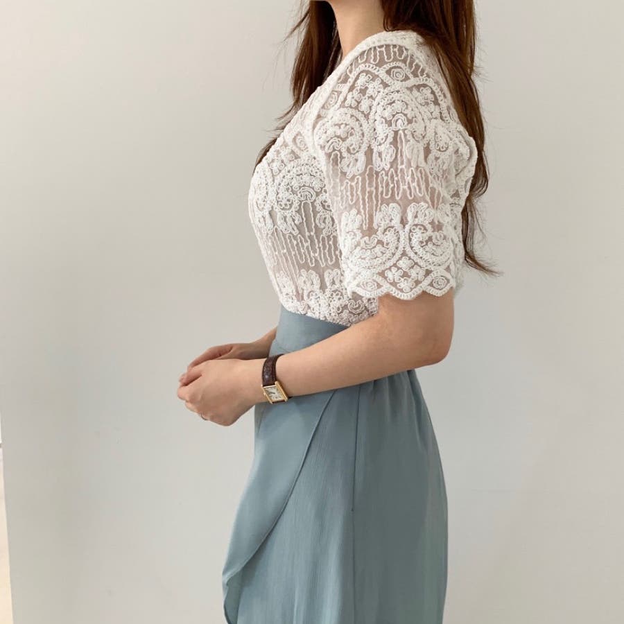 前身頃に散りばめられたお花の刺繍がどこかレトロな雰囲気を醸し出してくれます。