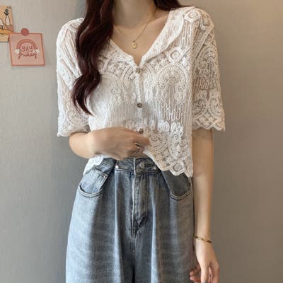 ヘルシーな肌見せが叶う透かし編みデザインで夏場まで重宝するのが嬉しいポイント。
