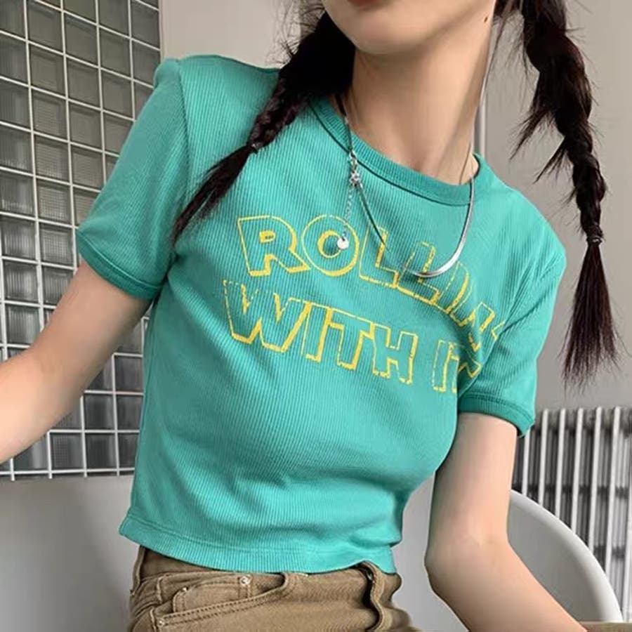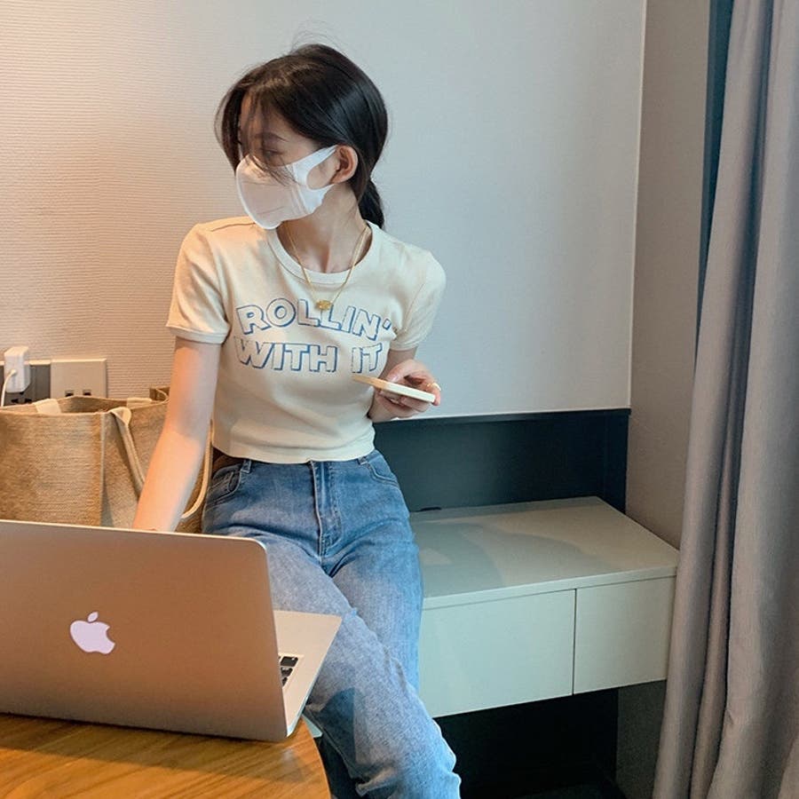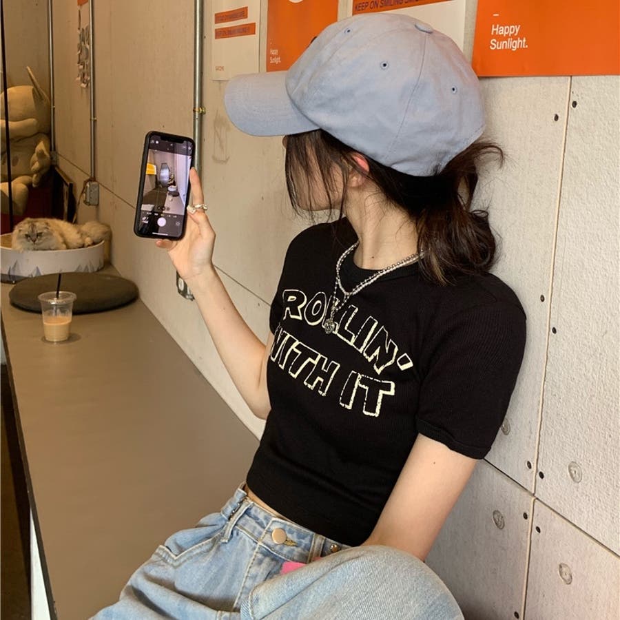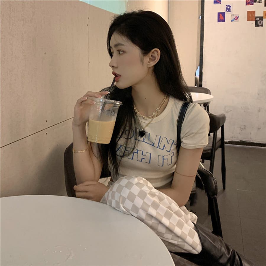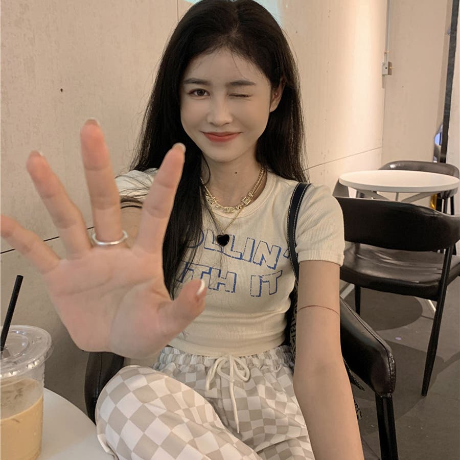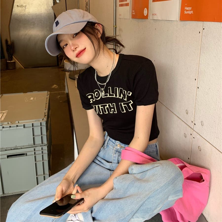 ショート丈半袖Tシャツ 韓国ファッション 夏服