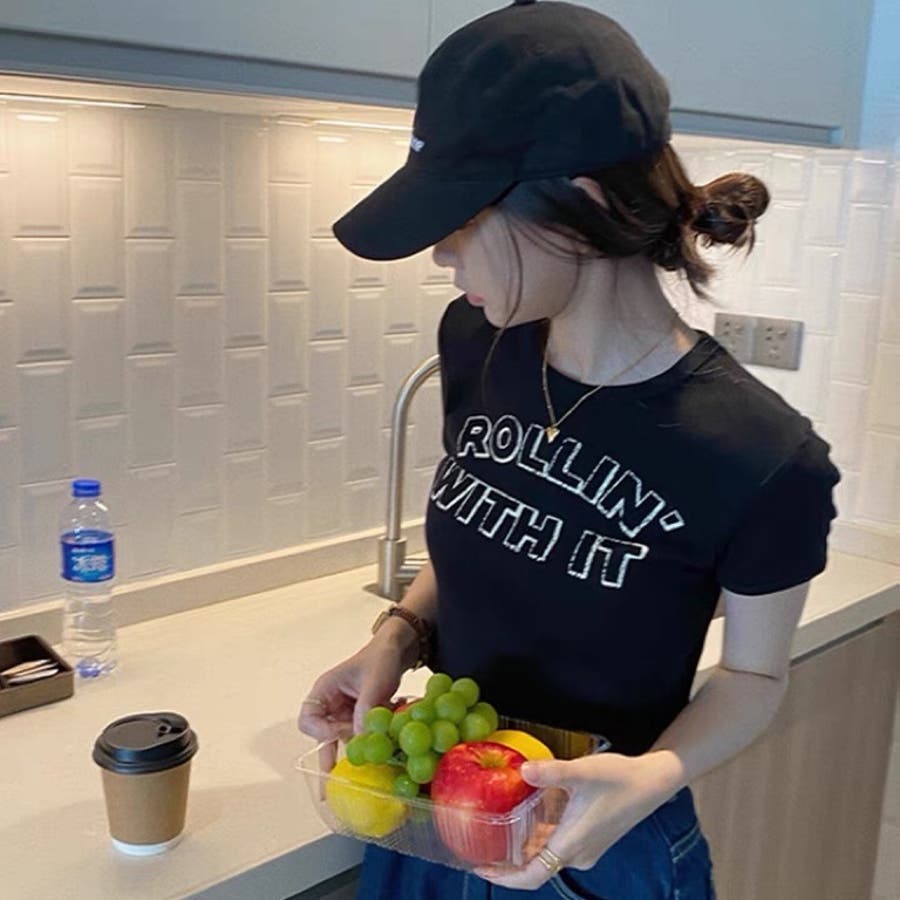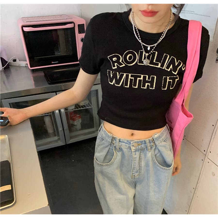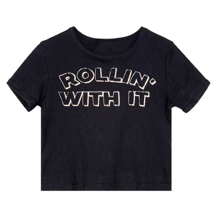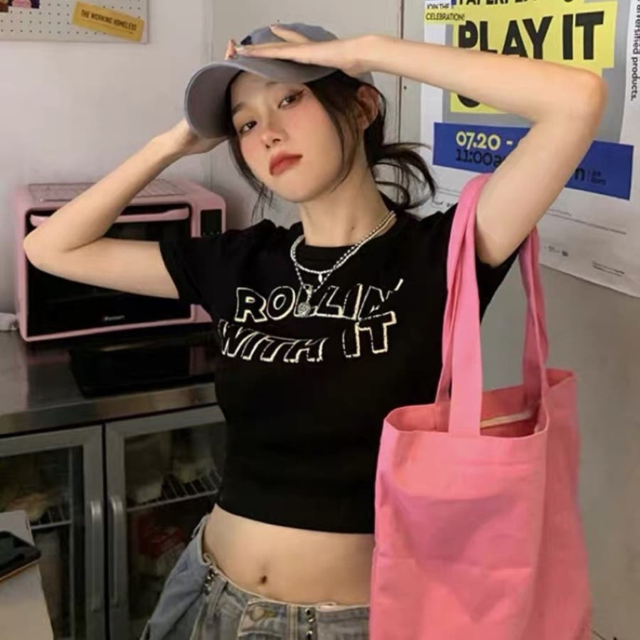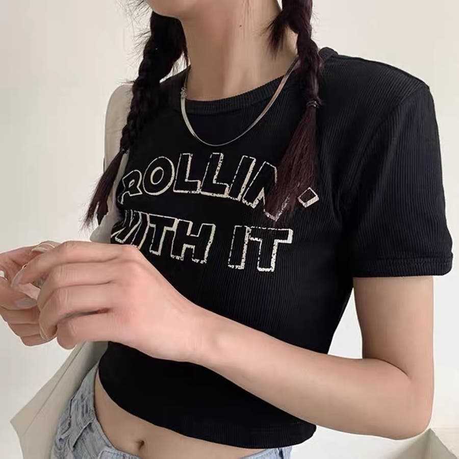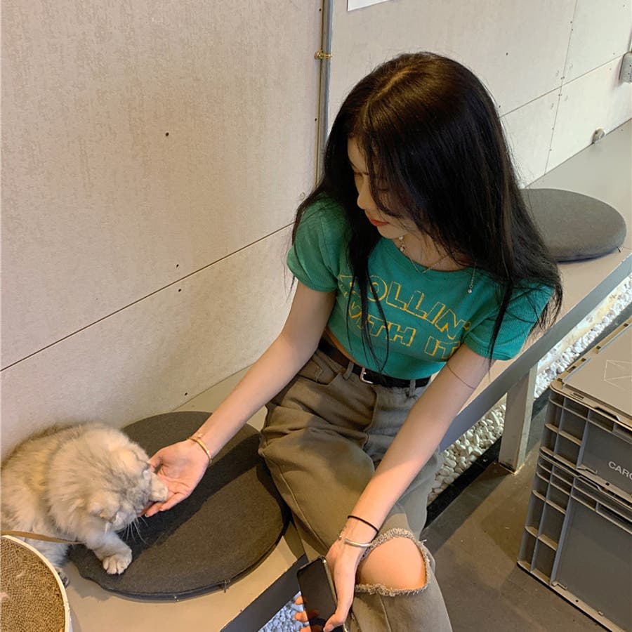 ショート丈半袖Tシャツ 韓国ファッション 夏服