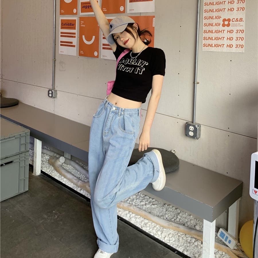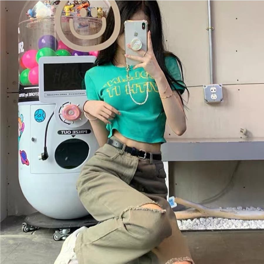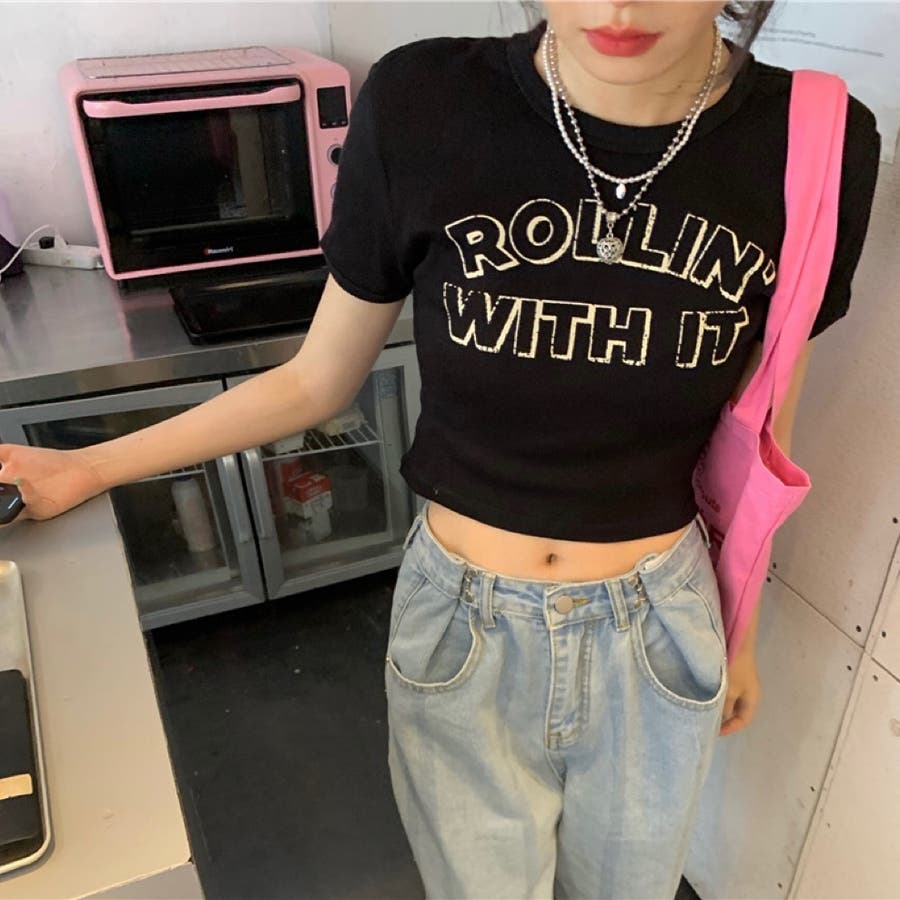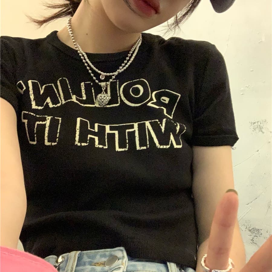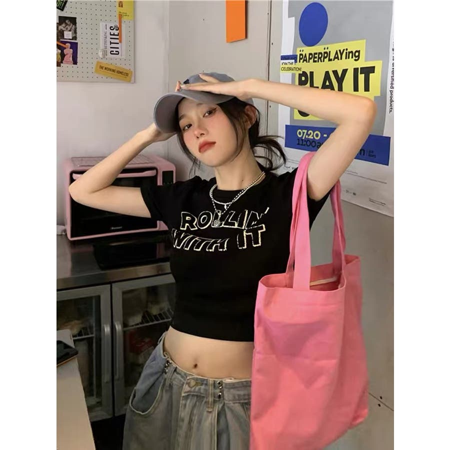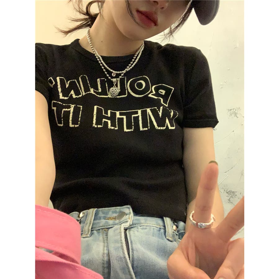 ショート丈半袖Tシャツ 韓国ファッション 夏服