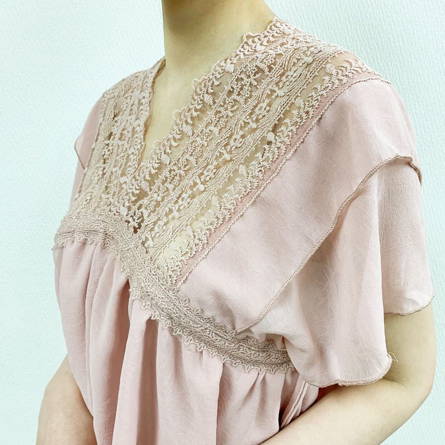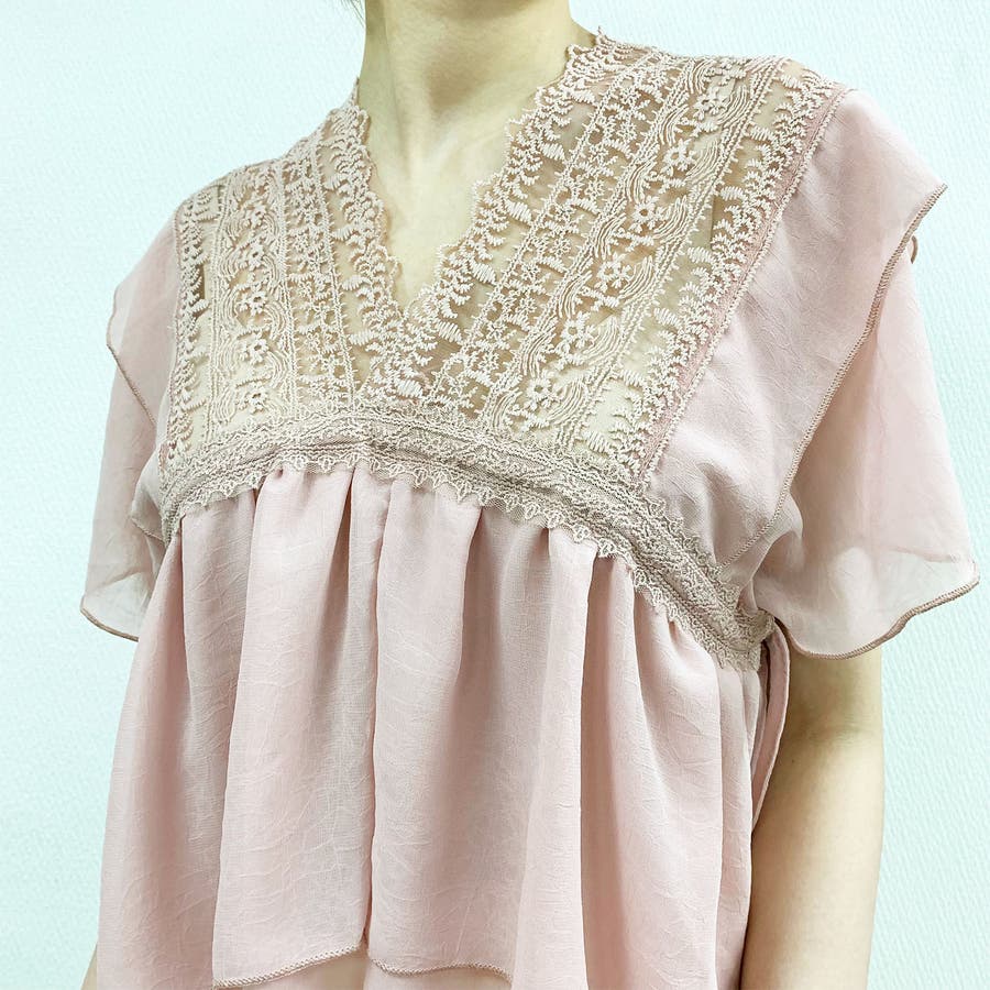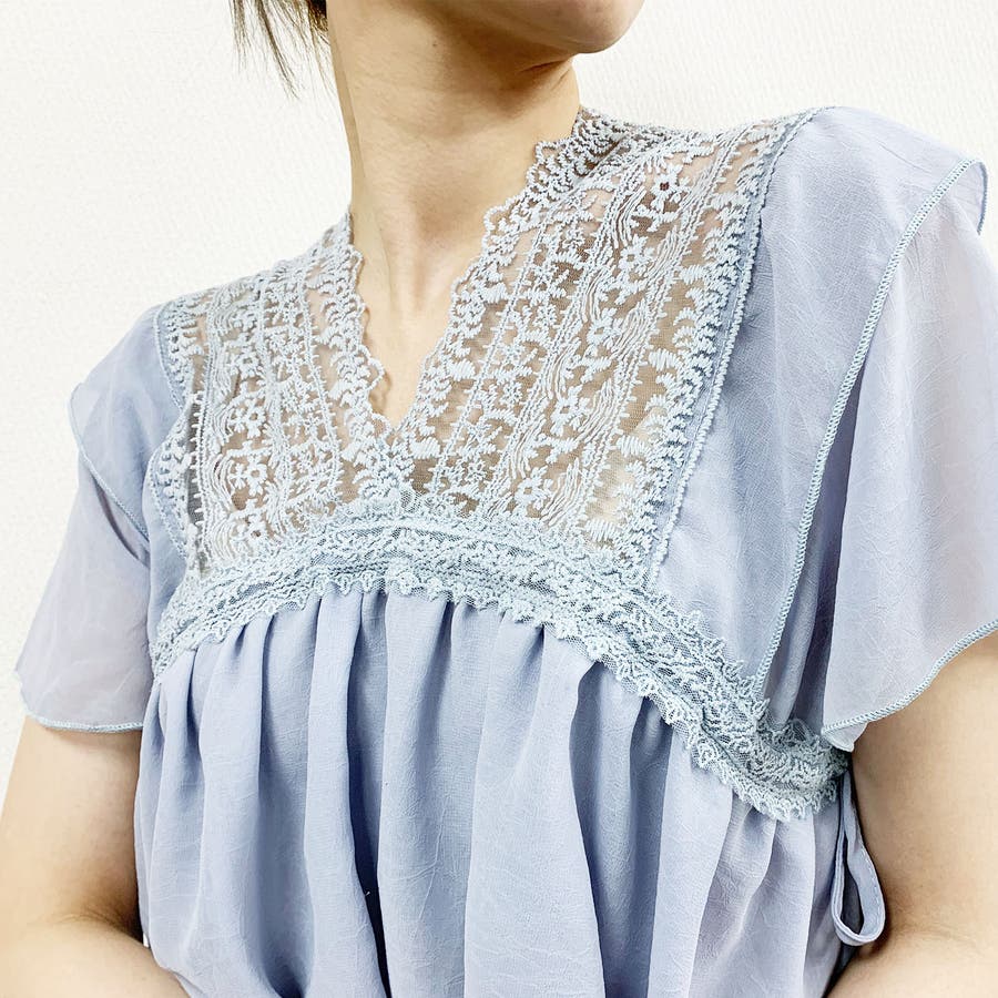 襟元のレースがデコルテをさらに美しく見せてくれるでしょう。