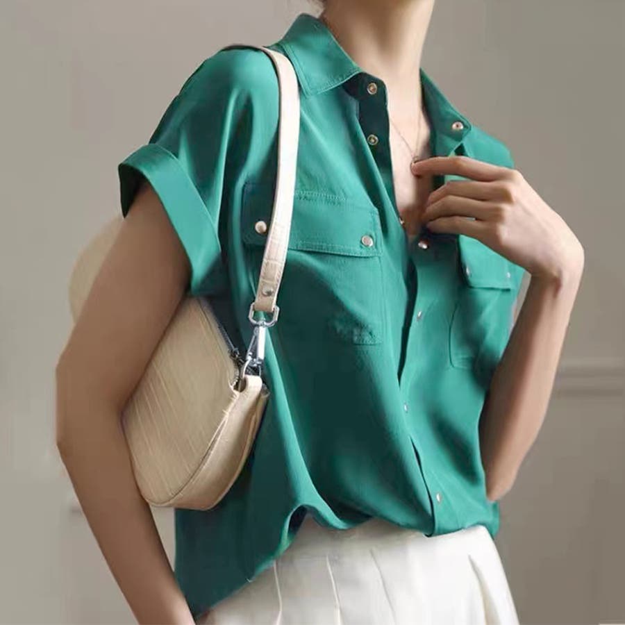 シワが付くのでアイロン必須。さん (30代 / 女性 / 身長160~165cm / 体重45~49kg)購入アイテム:カラー グリーンサイズ Mいつものトップスサイズ:Mサイズ感:ぴったり - 可愛い