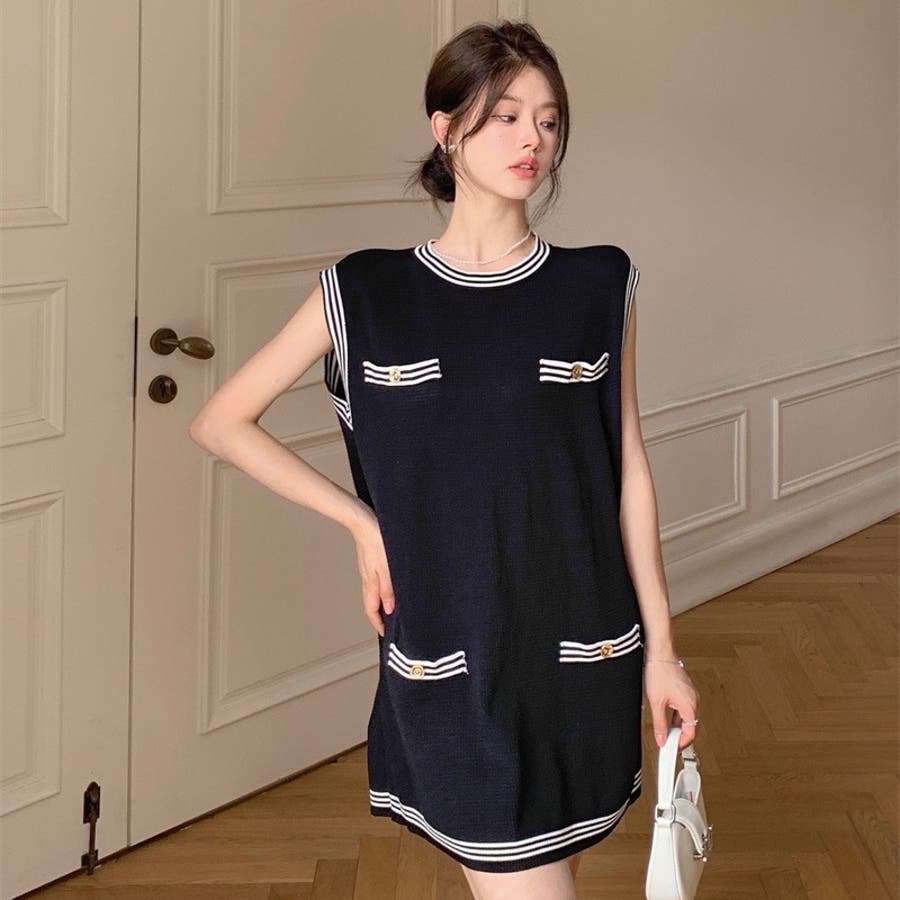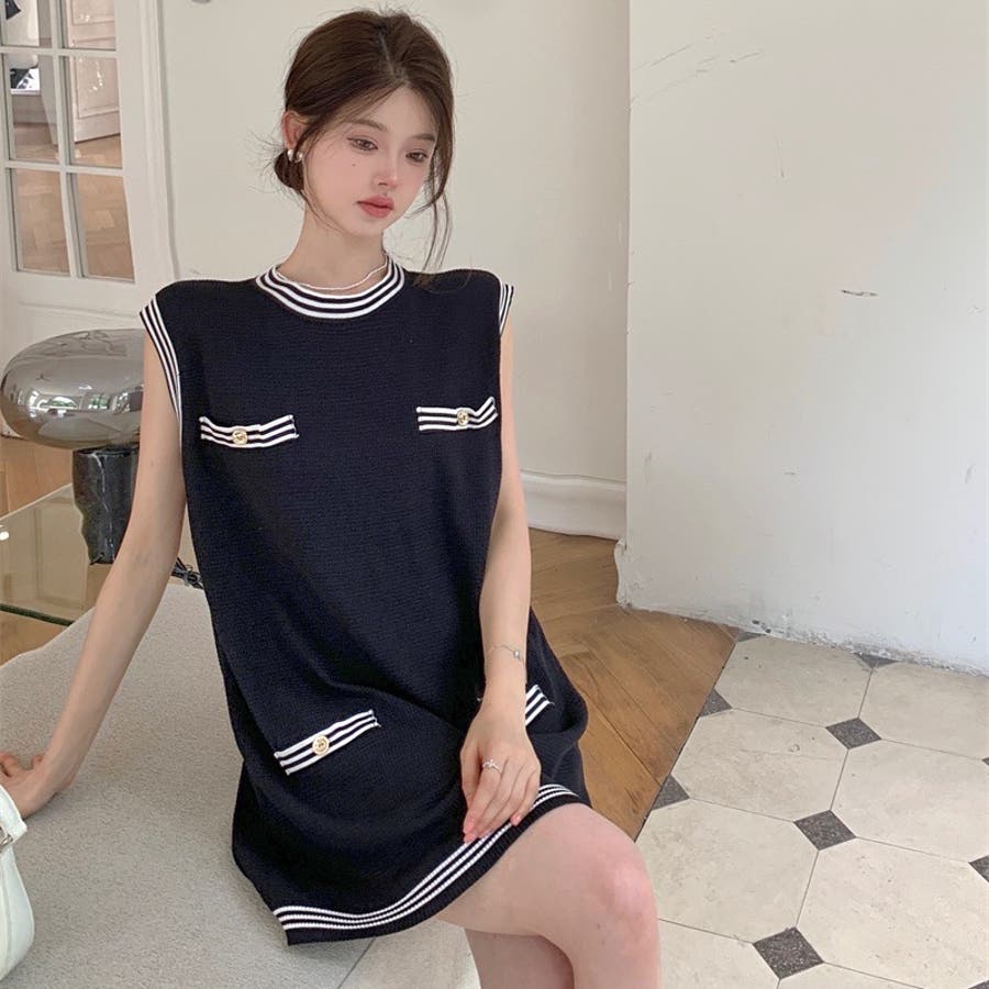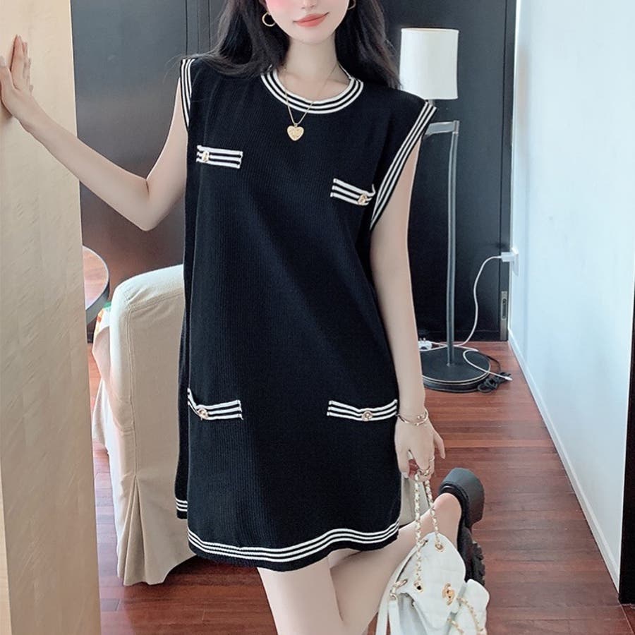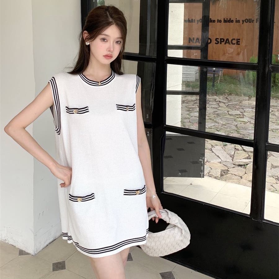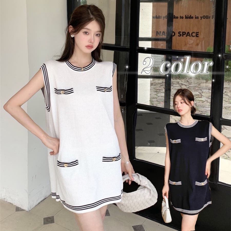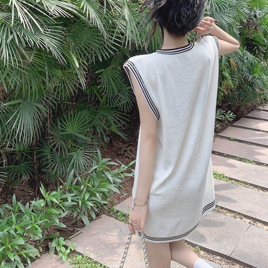 ニットロングベスト 韓国ファッション 夏服