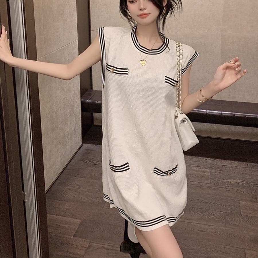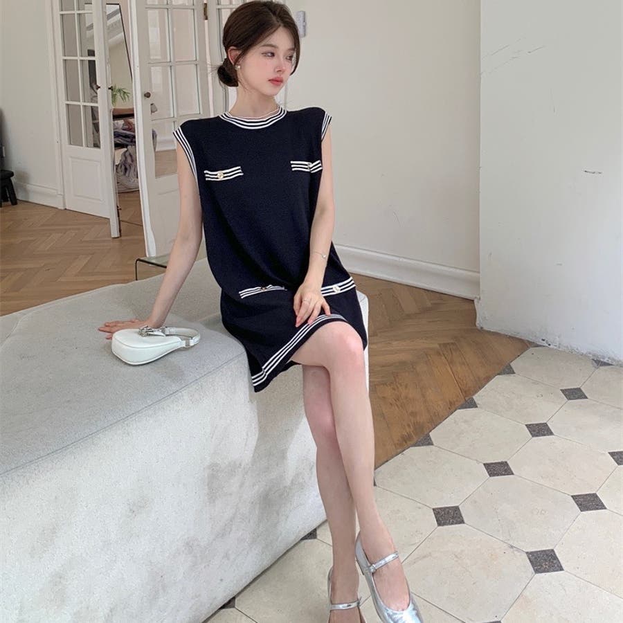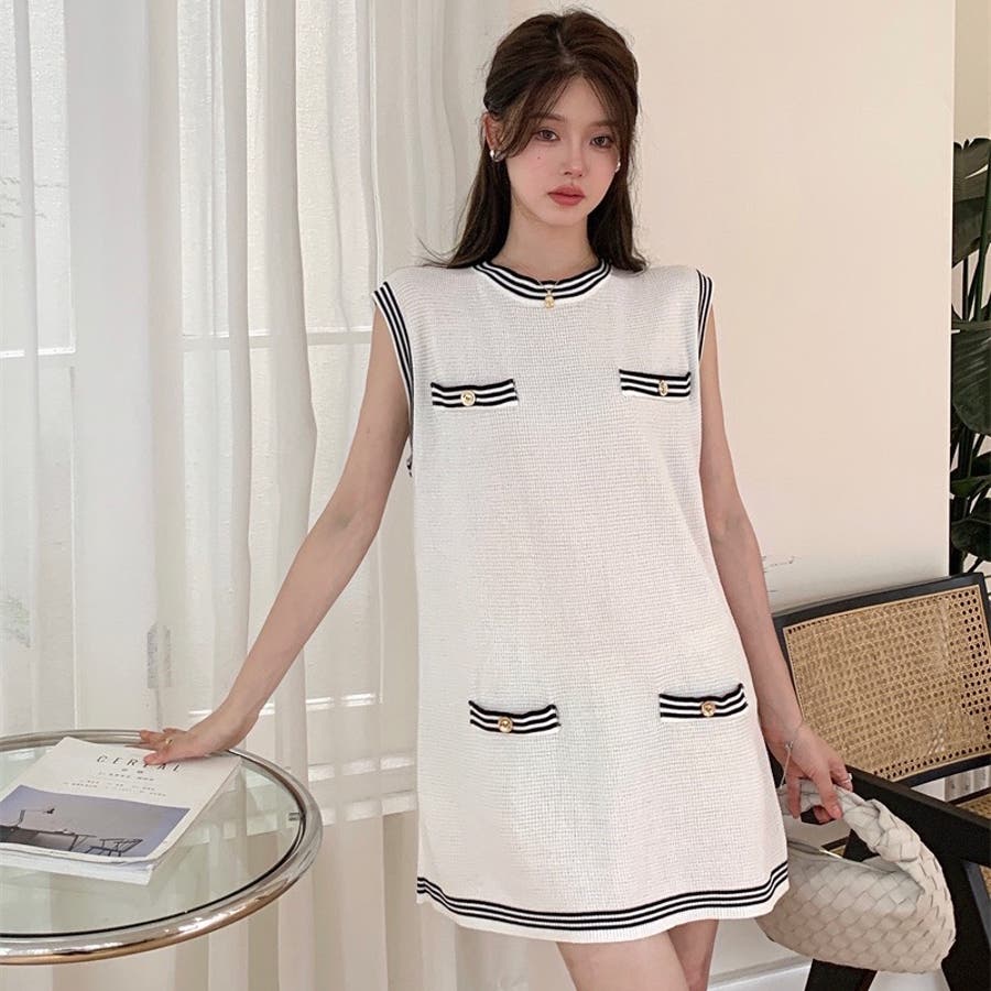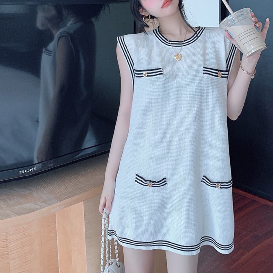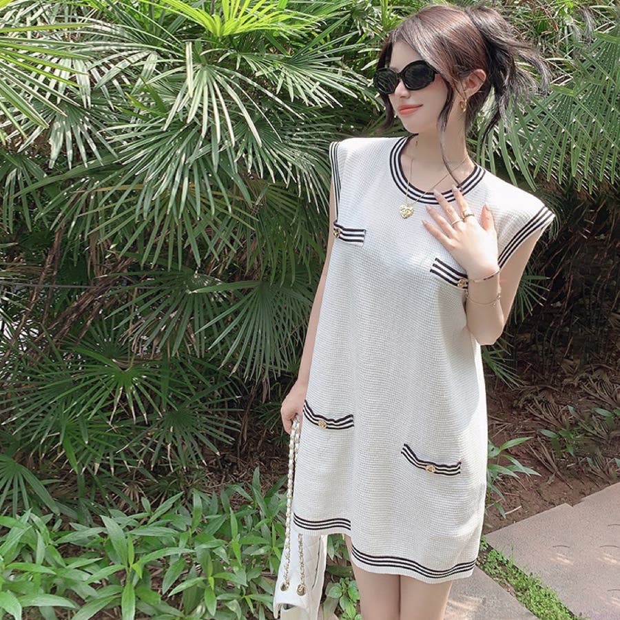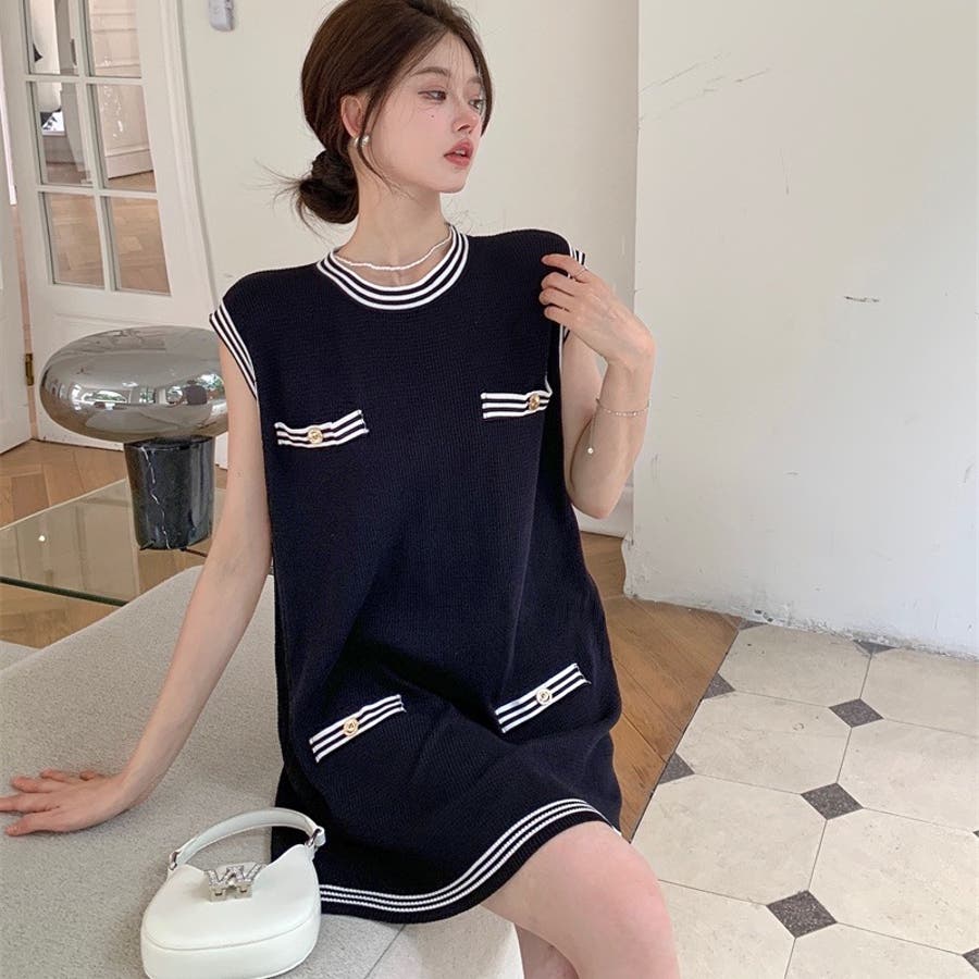 ニットロングベスト 韓国ファッション 夏服