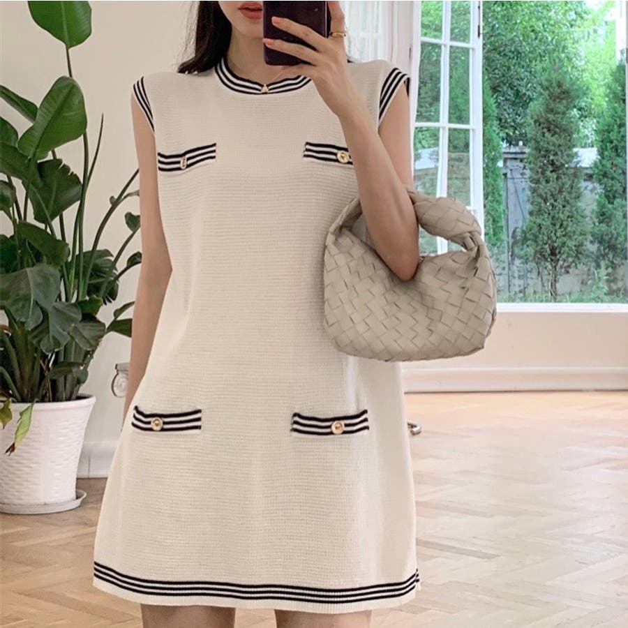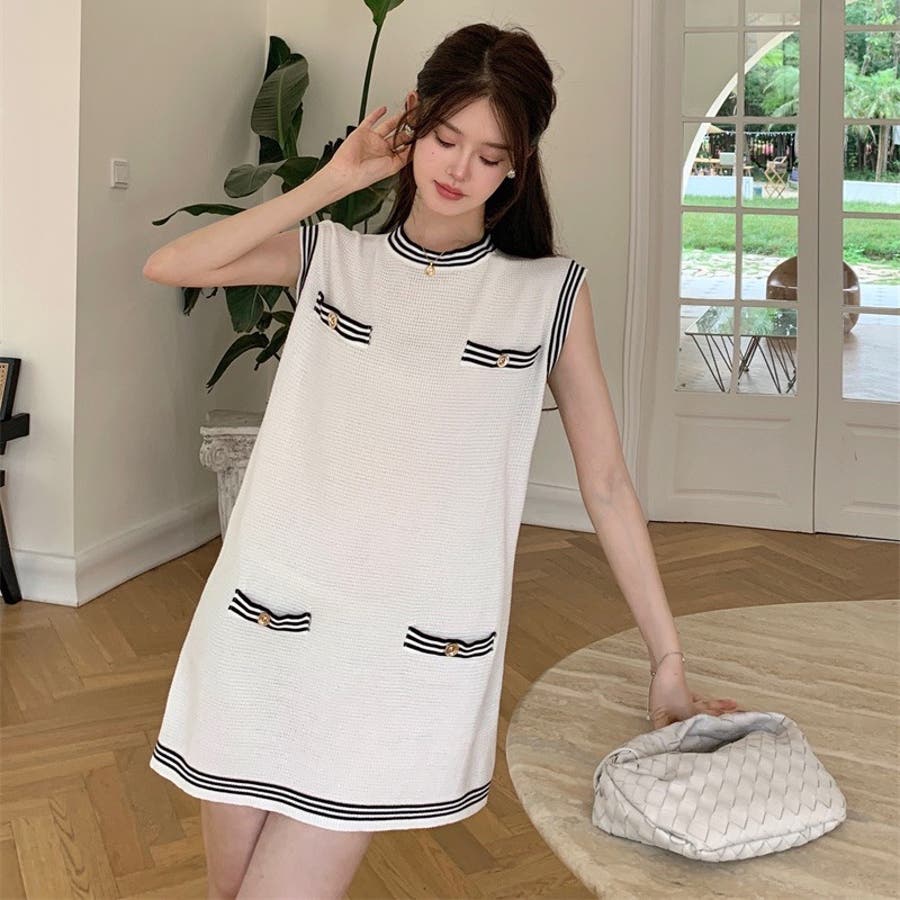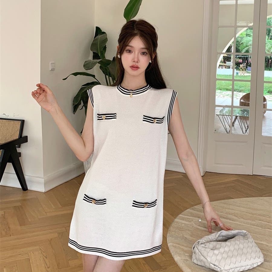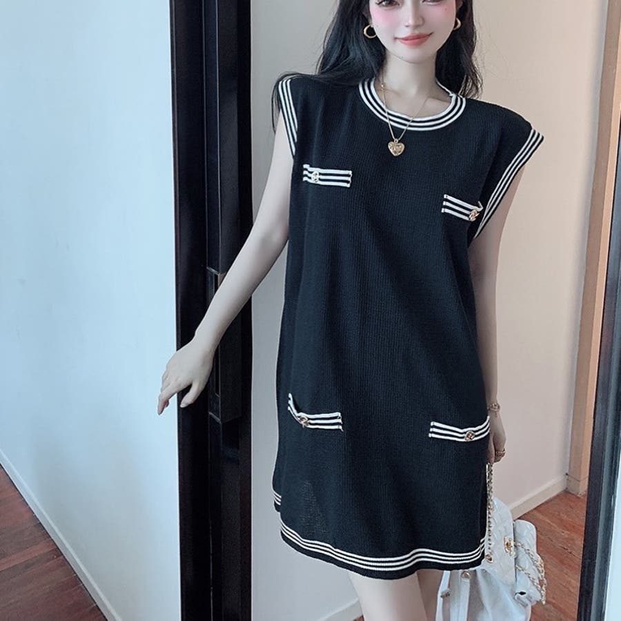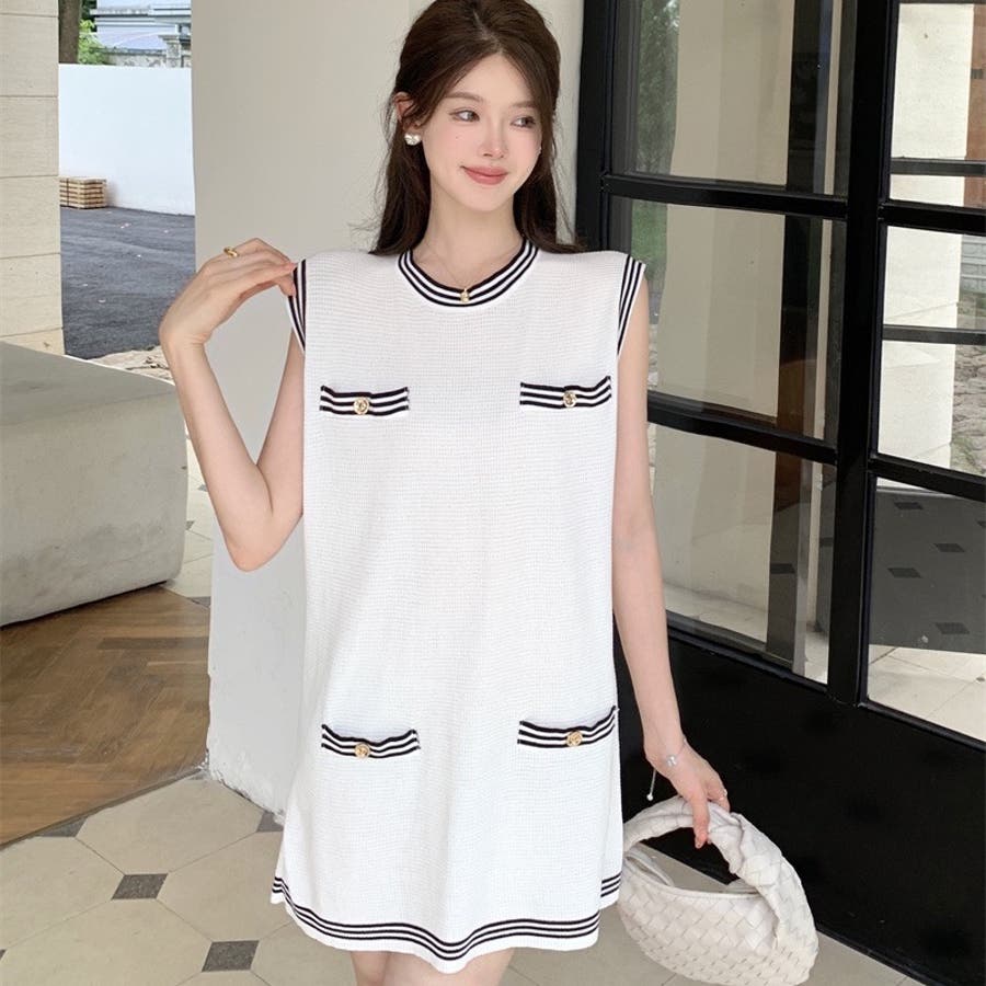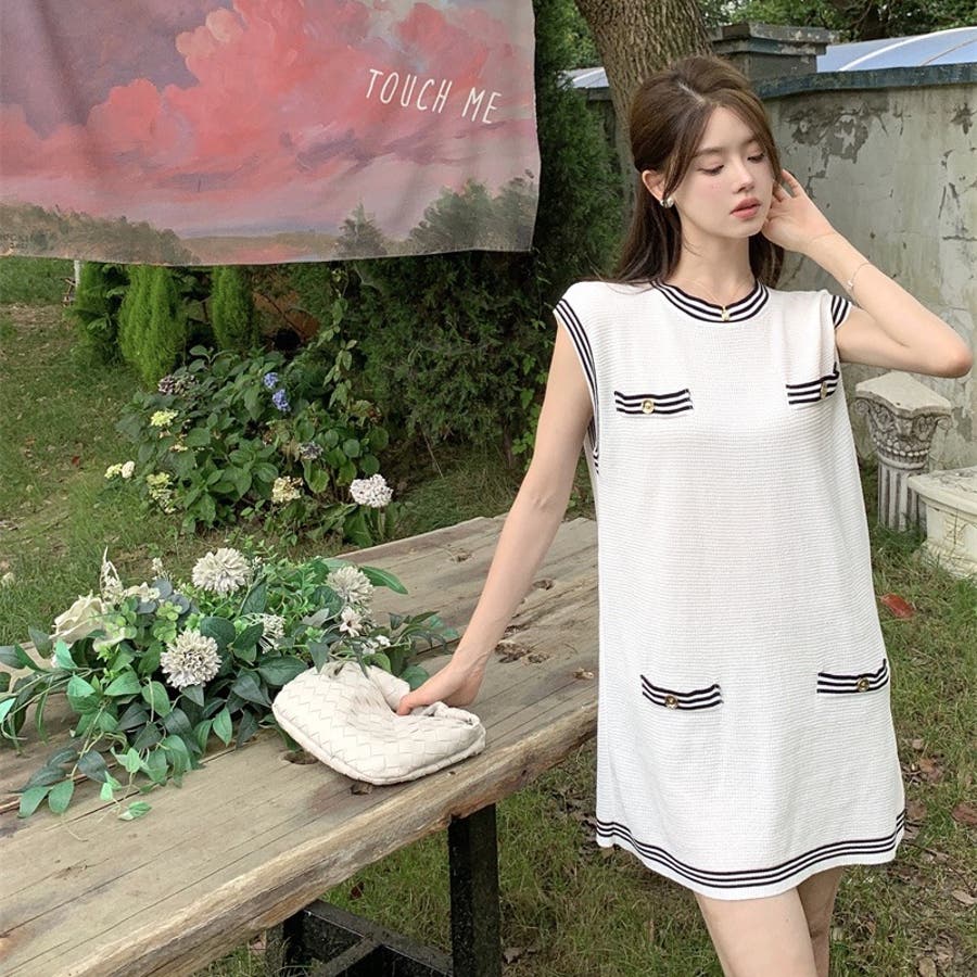 ニットロングベスト 韓国ファッション 夏服