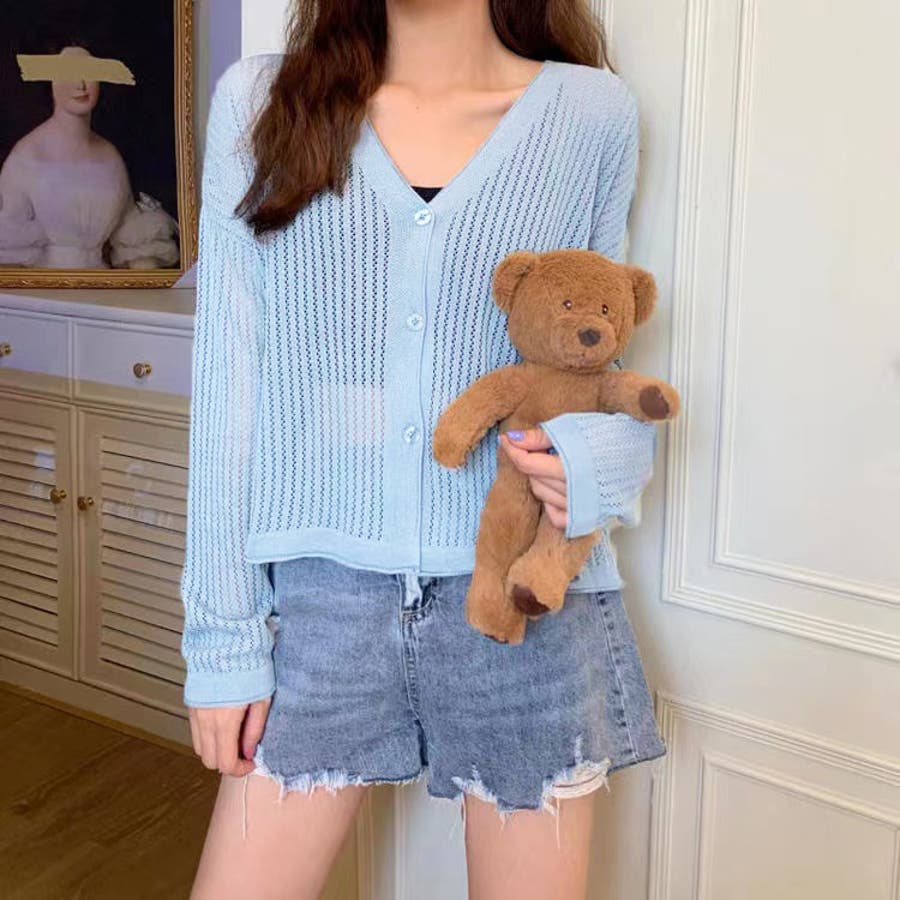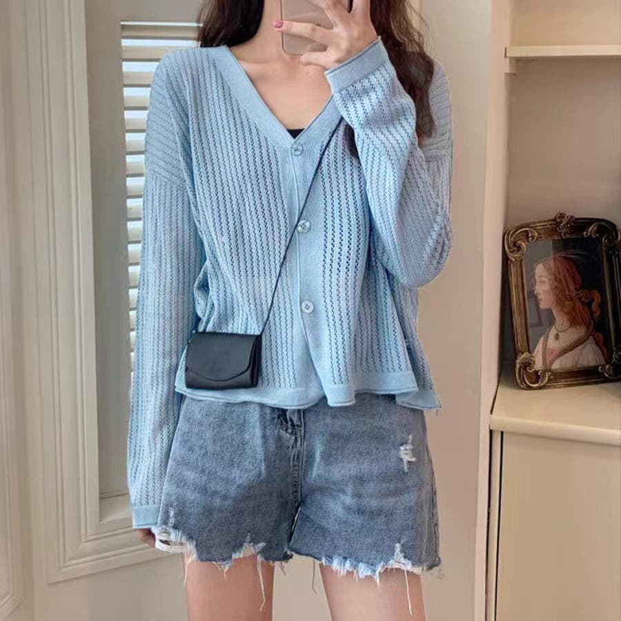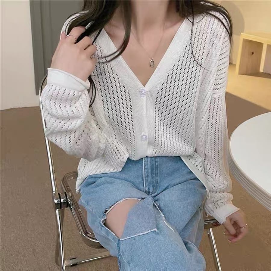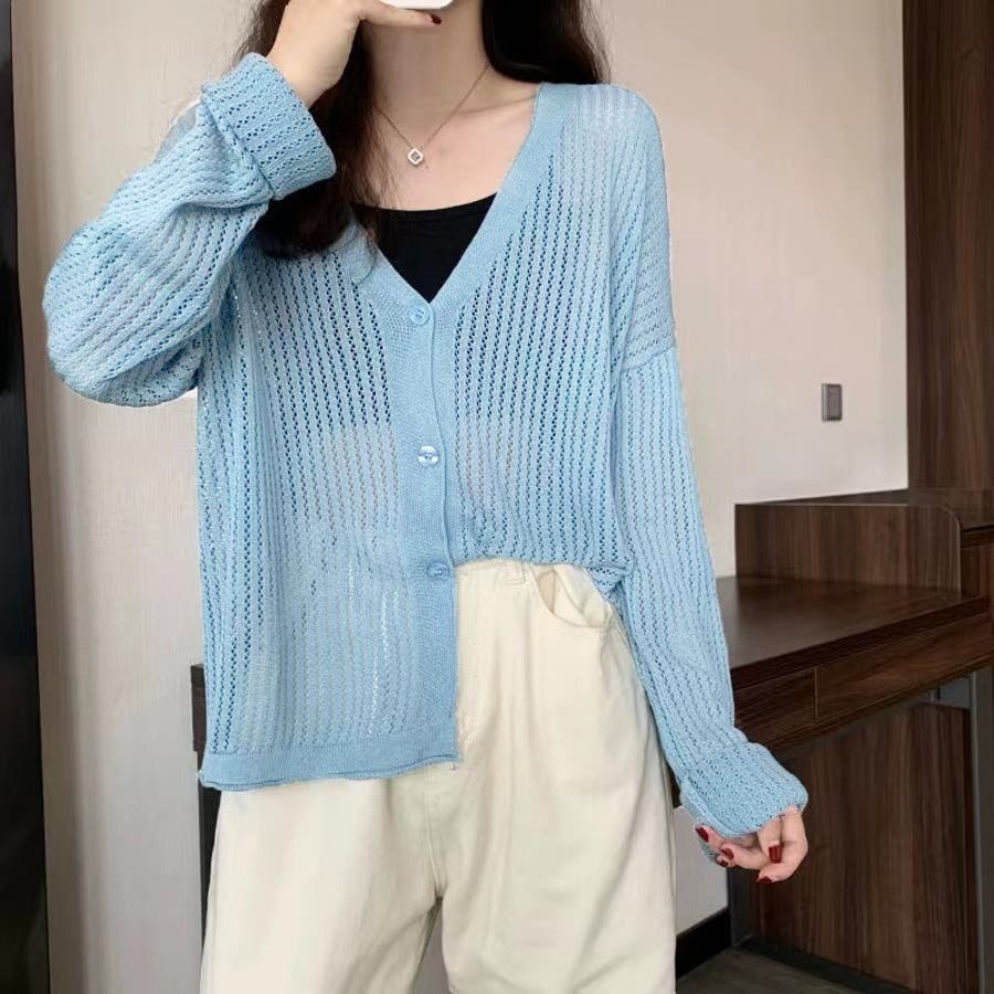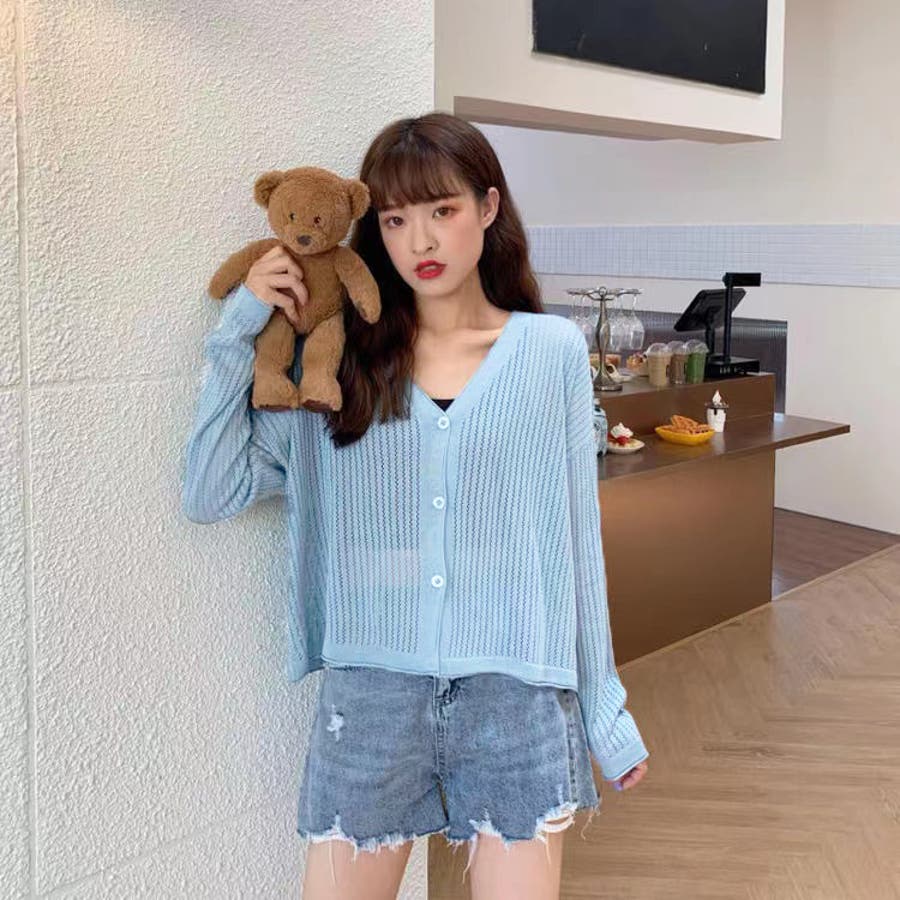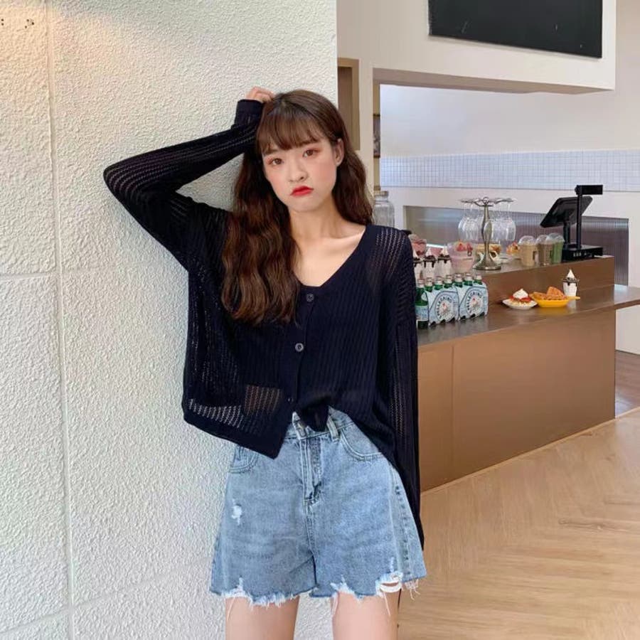 透かし編みカーディガン 韓国ファッション 量産型
