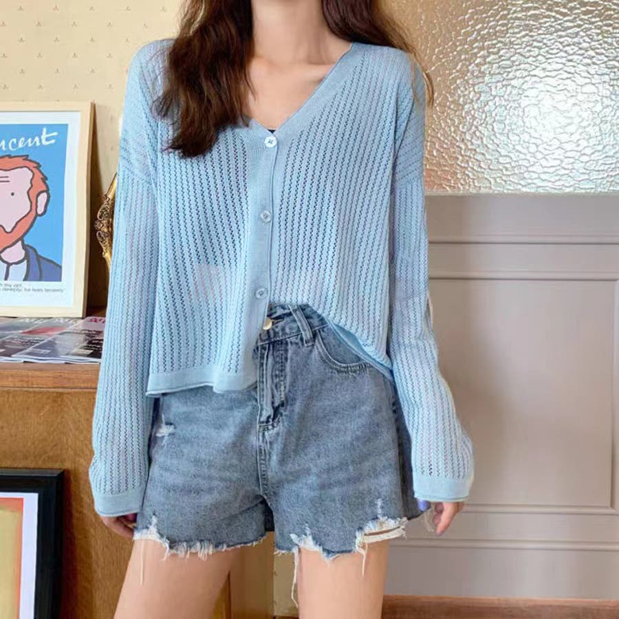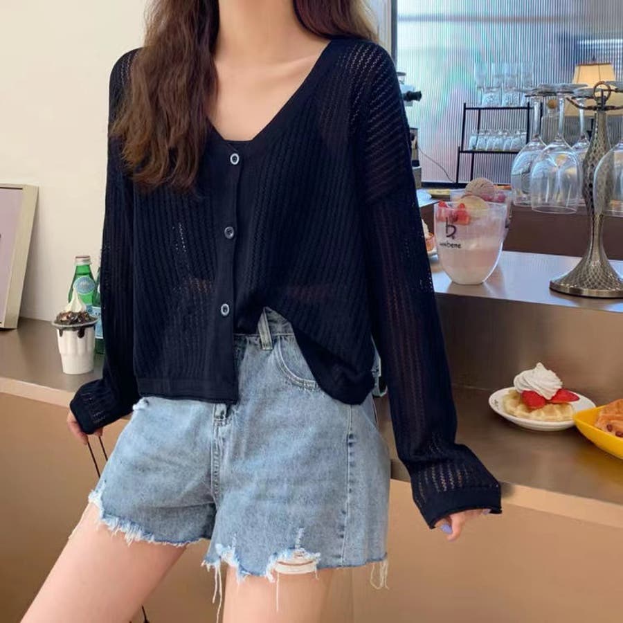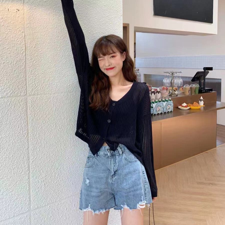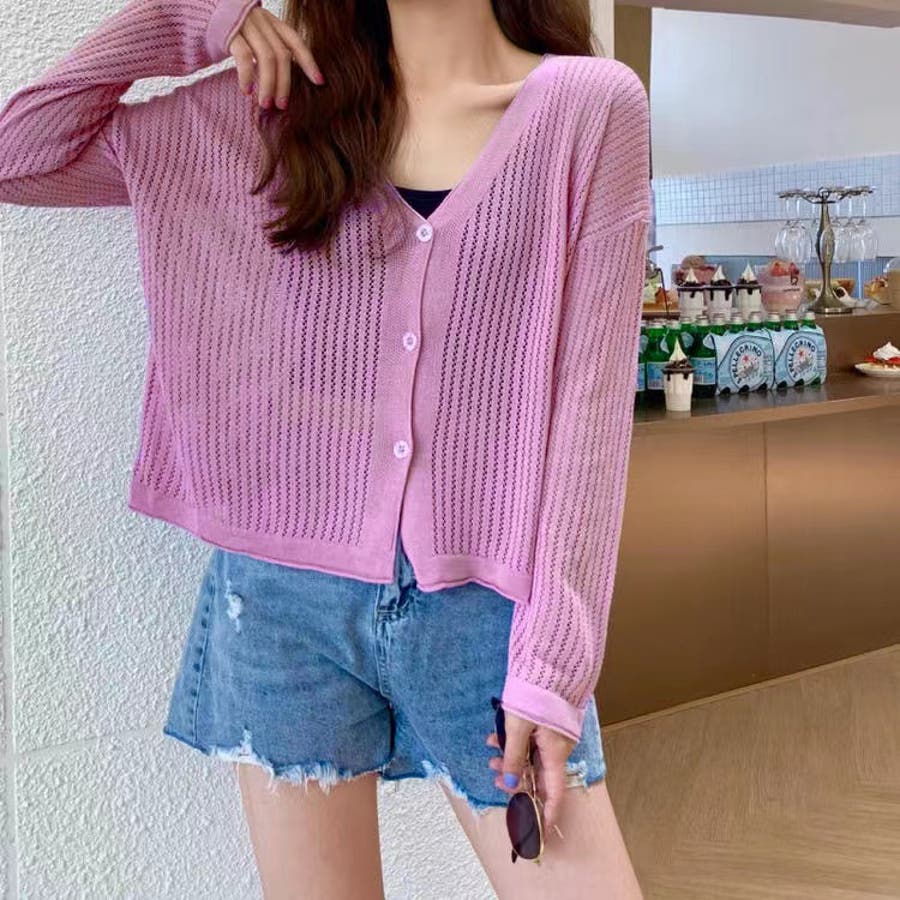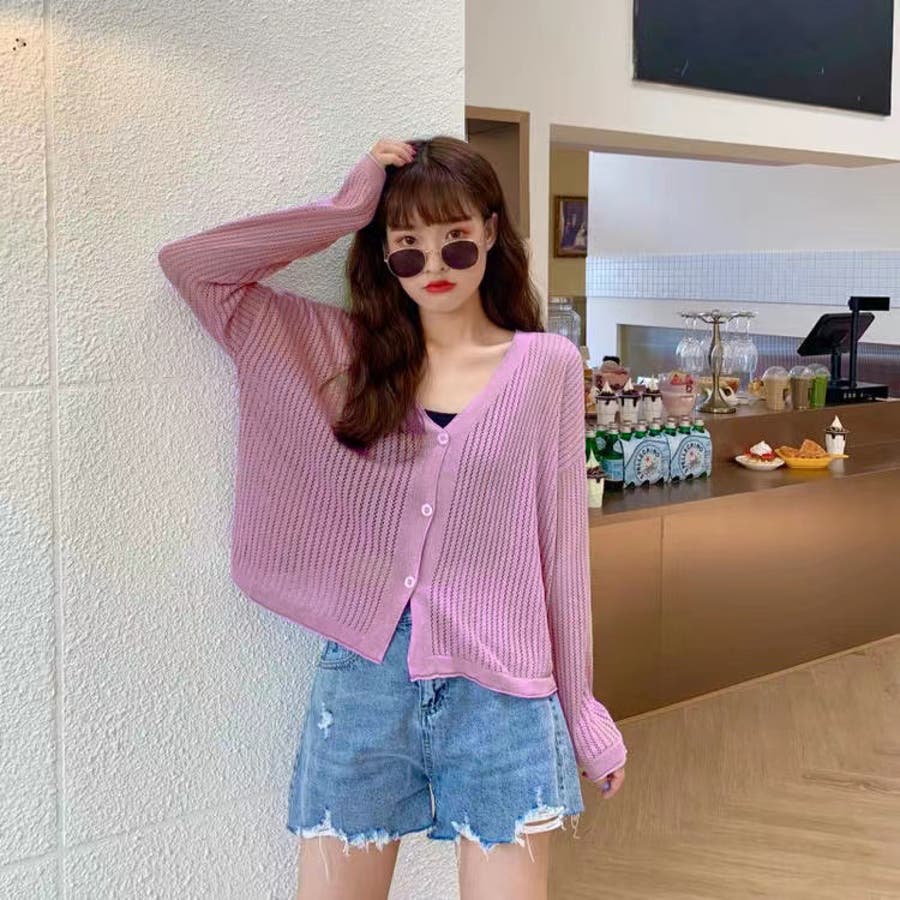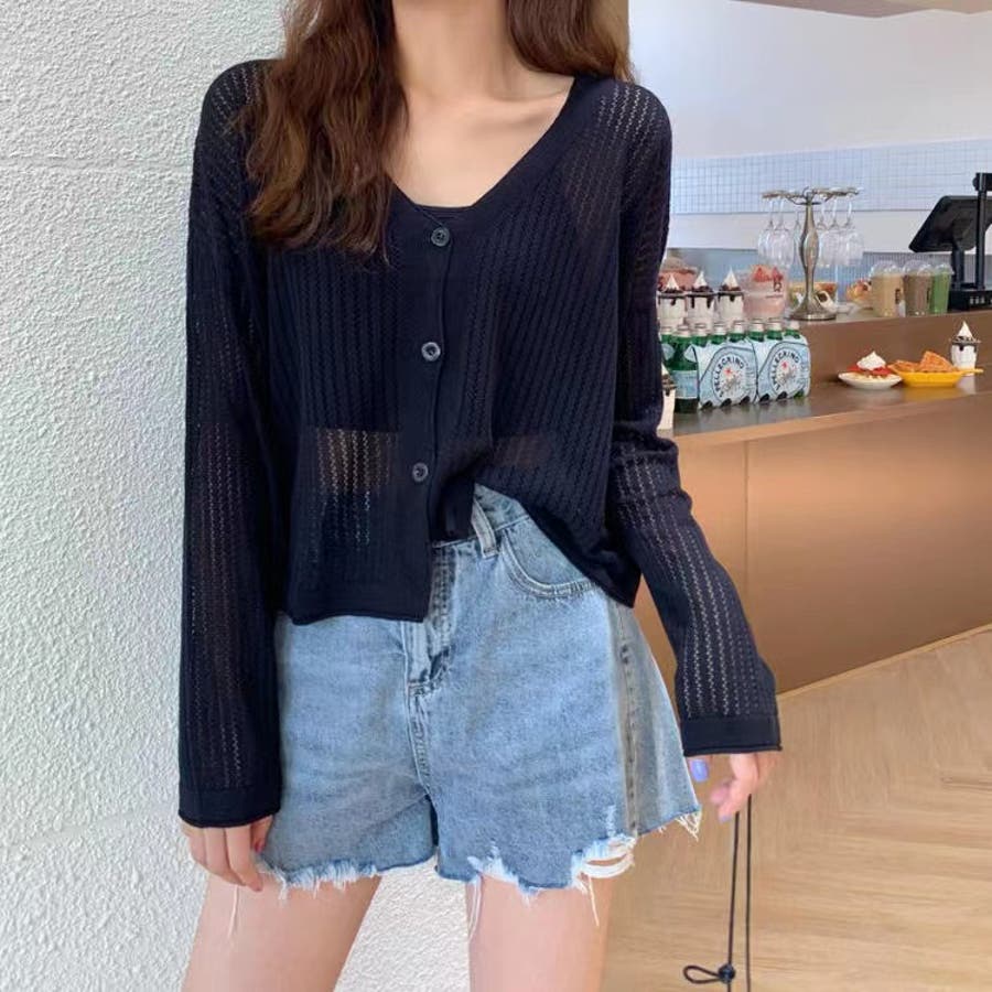 透かし編みカーディガン 韓国ファッション 量産型