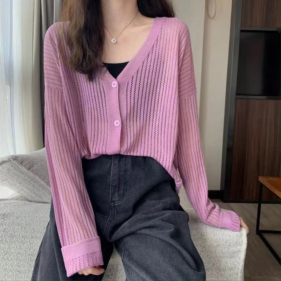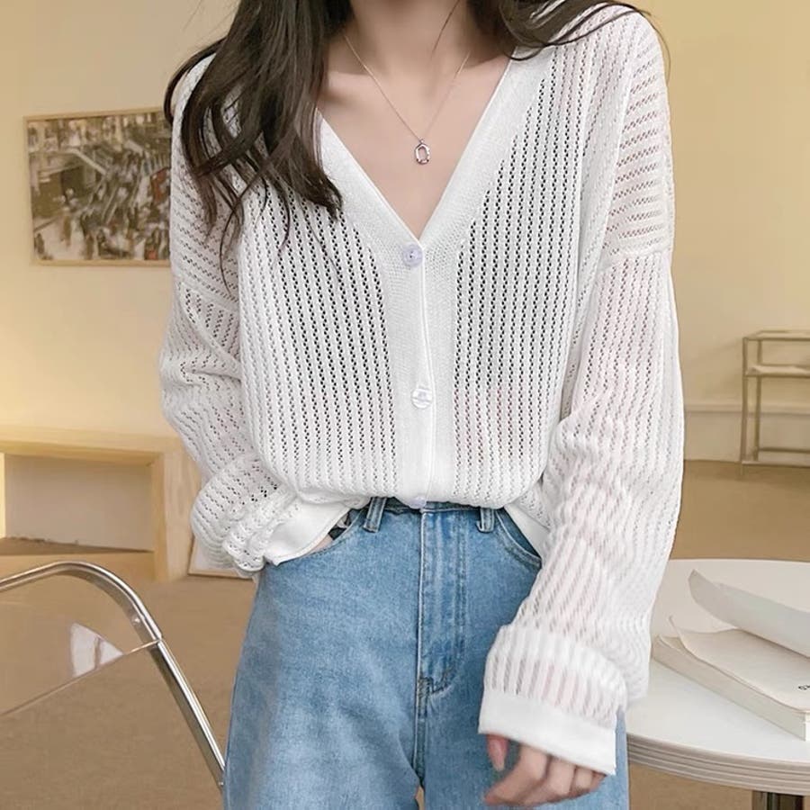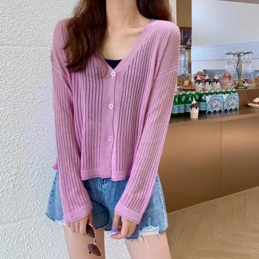 透かし編みカーディガン(レディースファッション通販)