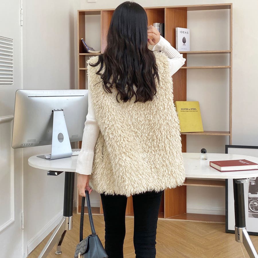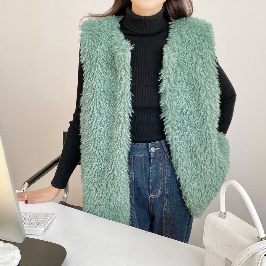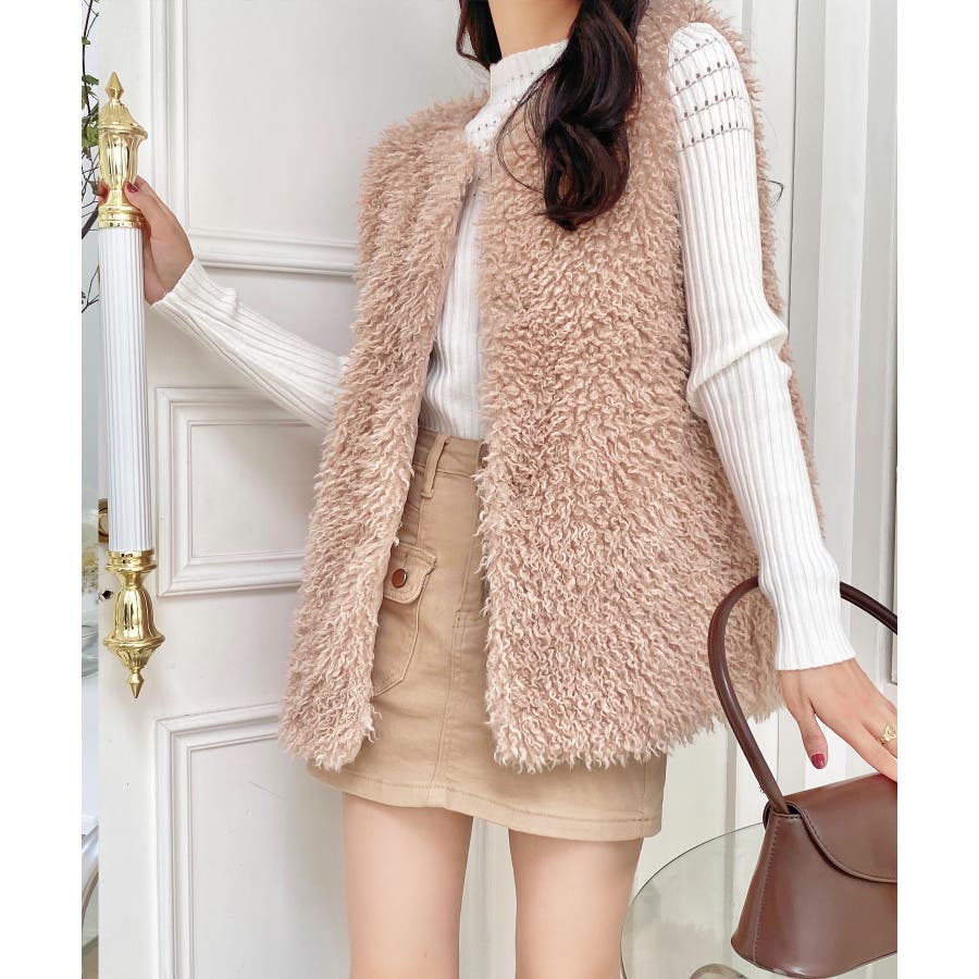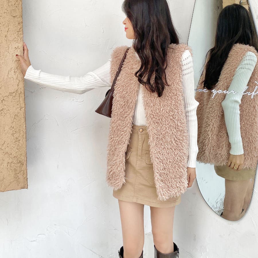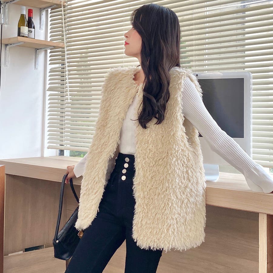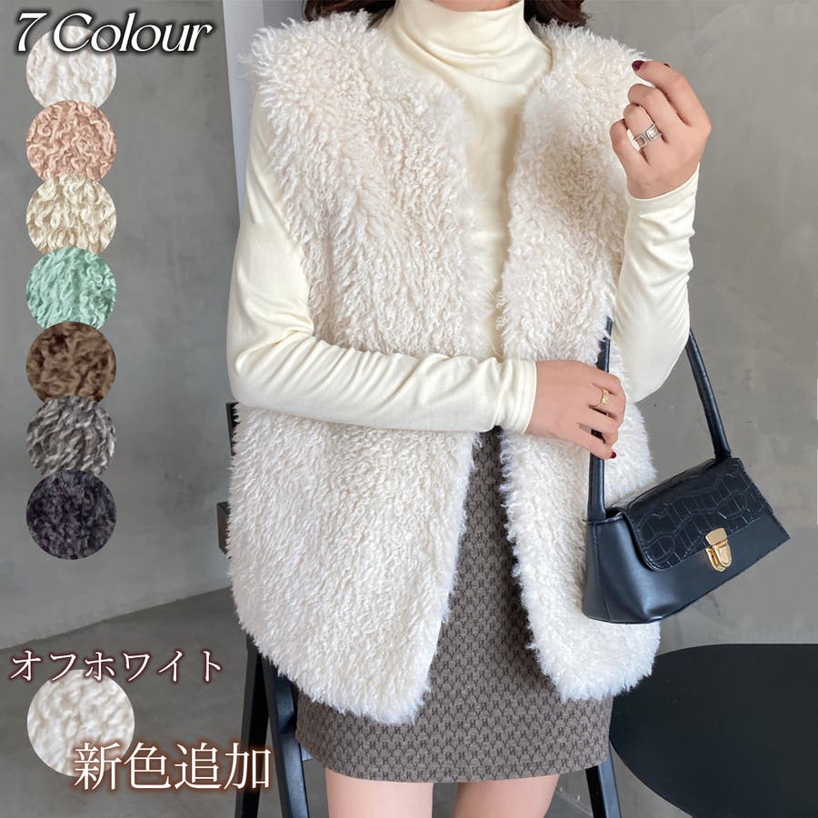 ファーベスト 韓国ファッション アウター フェミニン ワンカラー ピンク アイボリー ブラック ストリート 秋冬 カラー 黒 トップス オフェスカジュアル OL セクシー 大きいサイズ オーバー 10代 20代 30代 40代 50代 人気 人気アイテム ベーシック ノースリーブ 袖なし もこもこ ふわふわ アウター