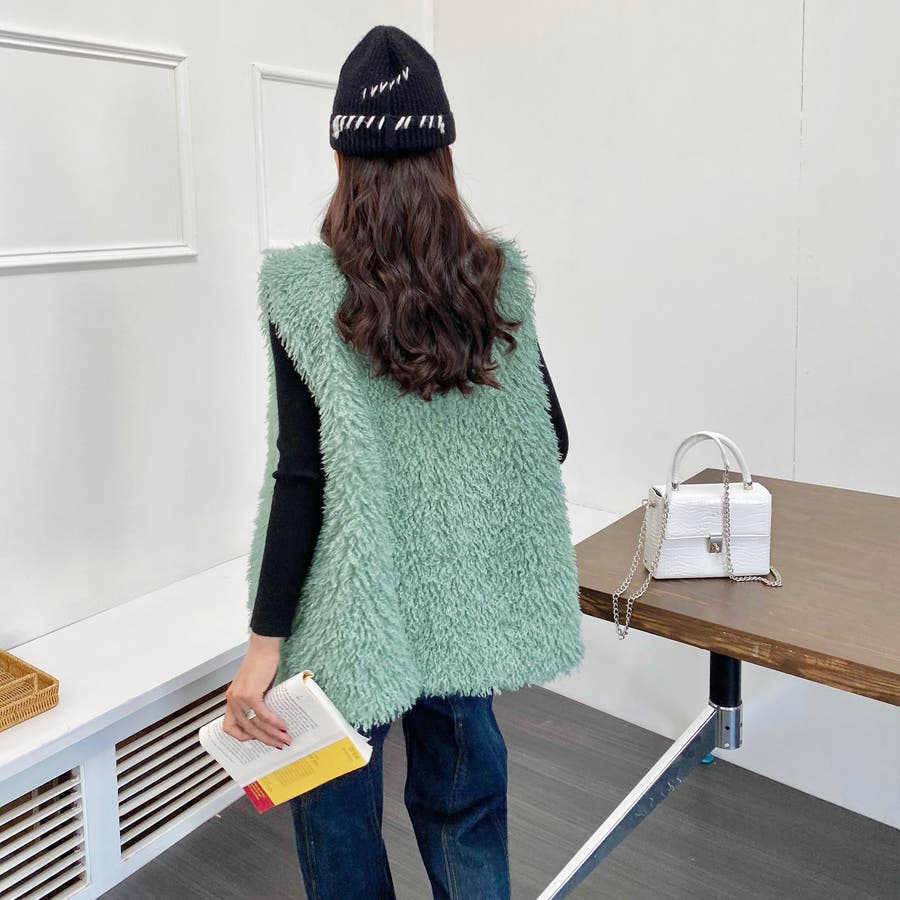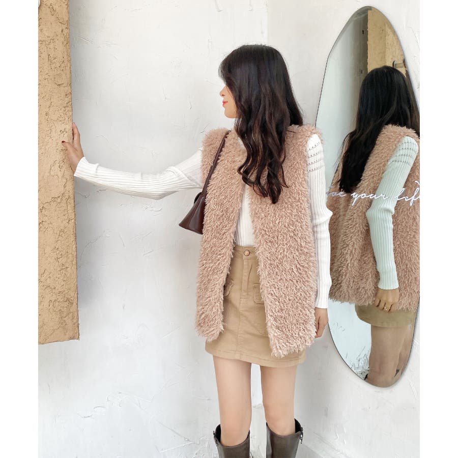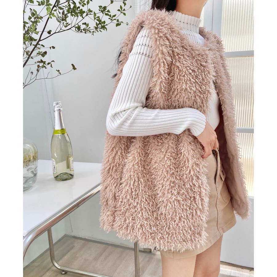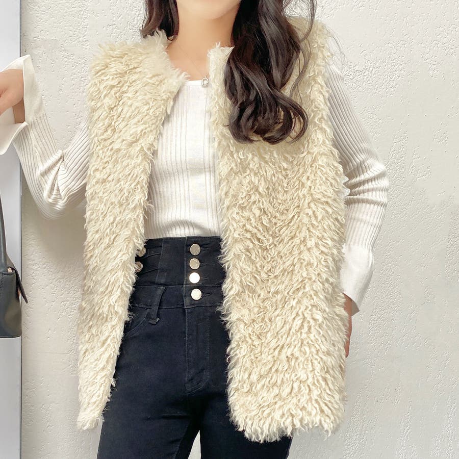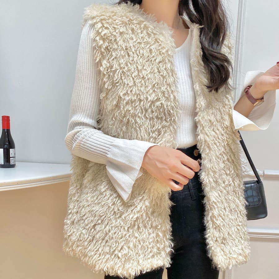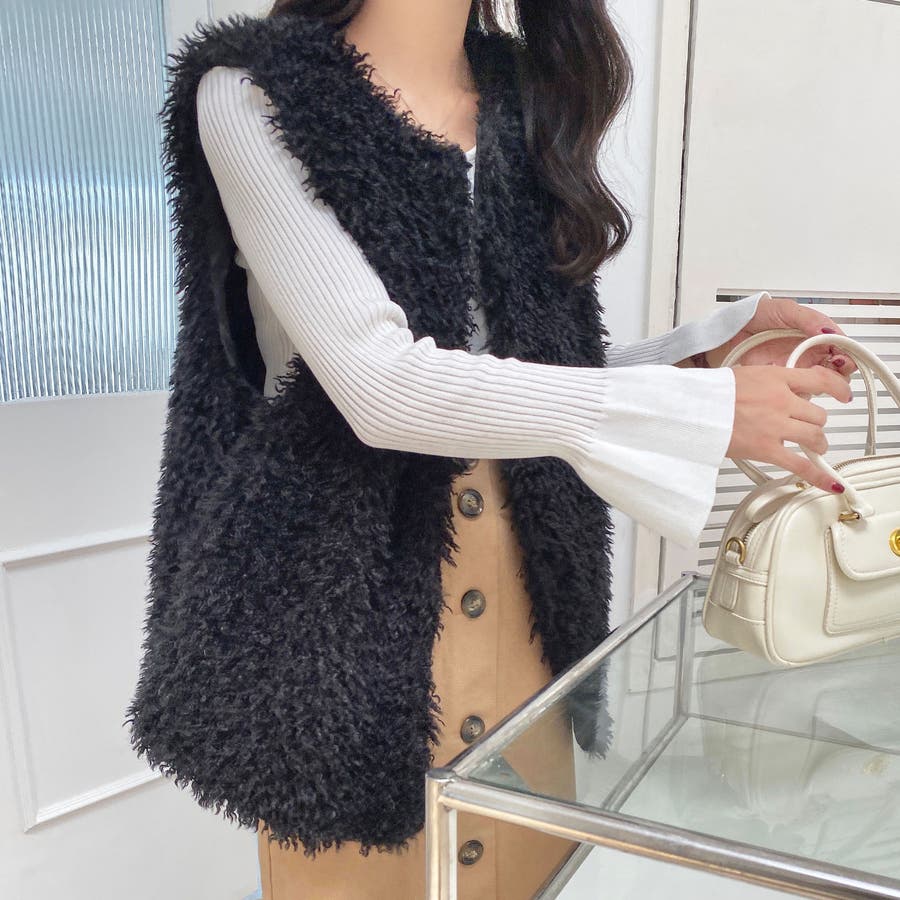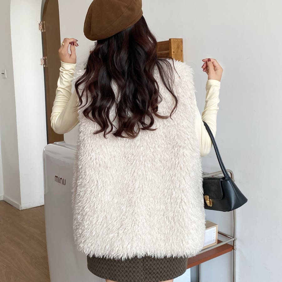 ファーベスト 韓国ファッション アウター フェミニン ワンカラー ピンク アイボリー ブラック ストリート 秋冬 カラー 黒 トップス オフェスカジュアル OL セクシー 大きいサイズ オーバー 10代 20代 30代 40代 50代 人気 人気アイテム ベーシック ノースリーブ 袖なし もこもこ ふわふわ アウター