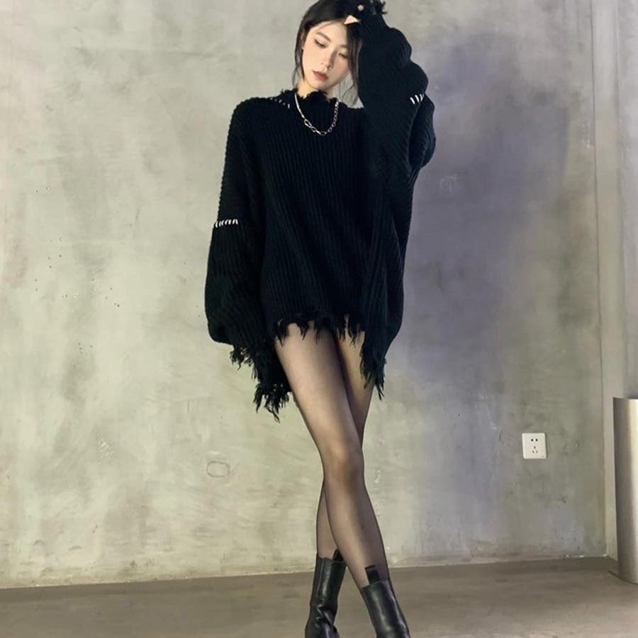 今シーズン注目のダメージニットデザインルーズ過ぎないシルエットで大人っぽくカジュアルダウンができる。