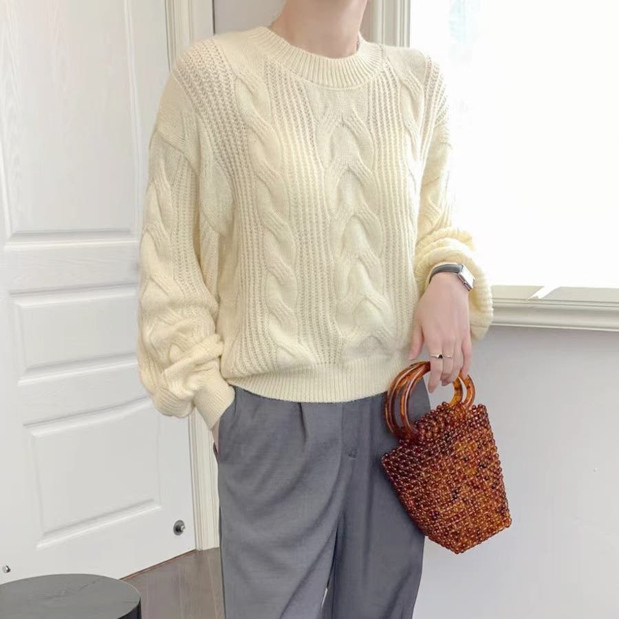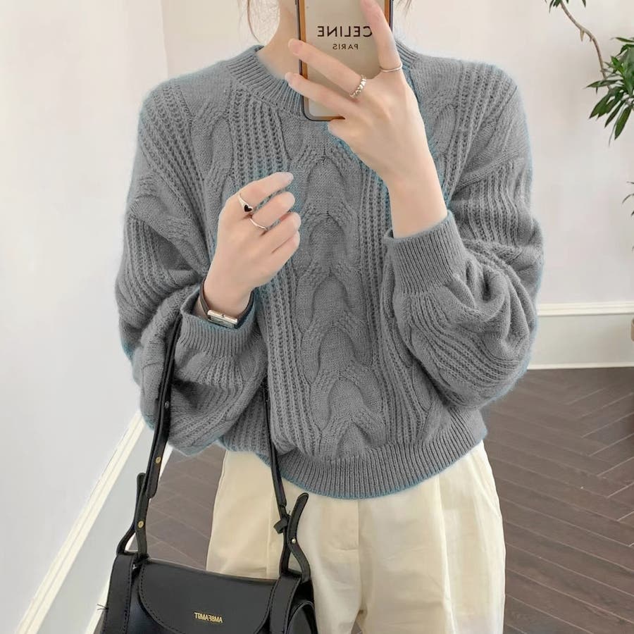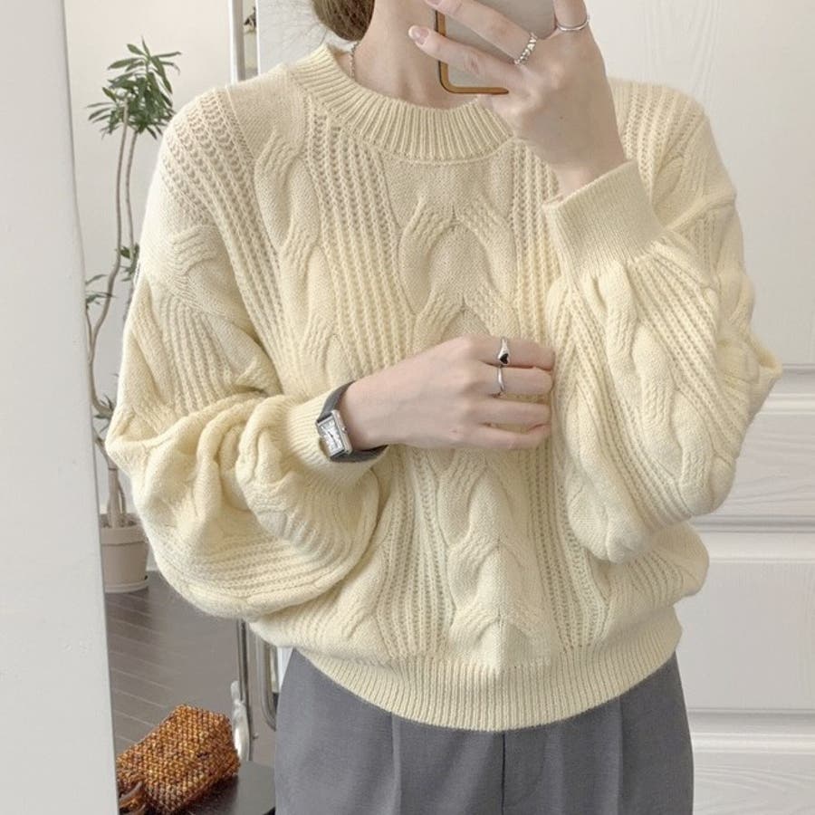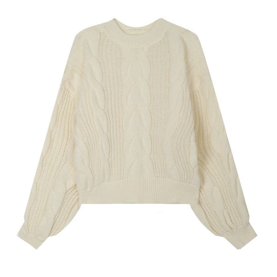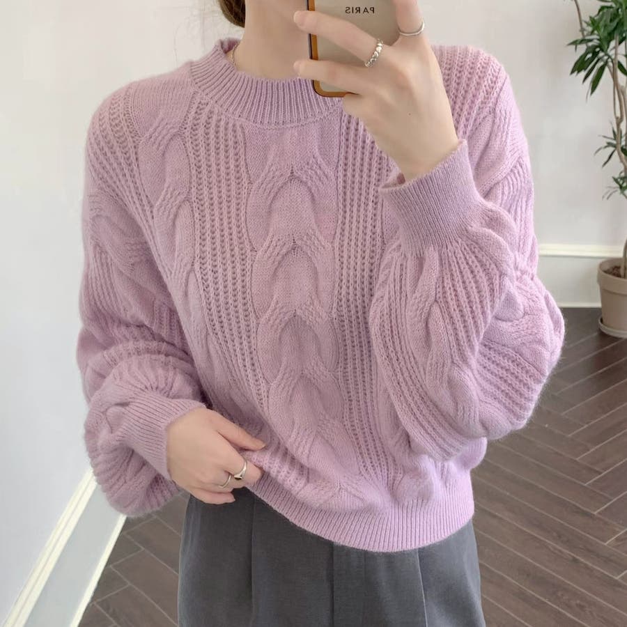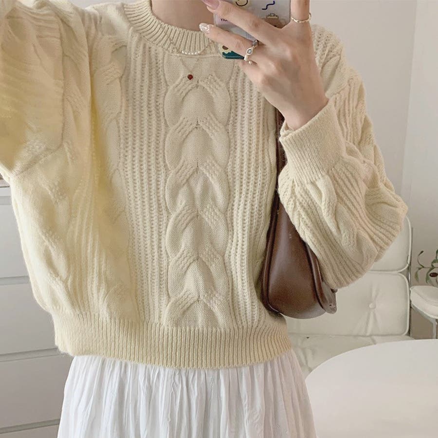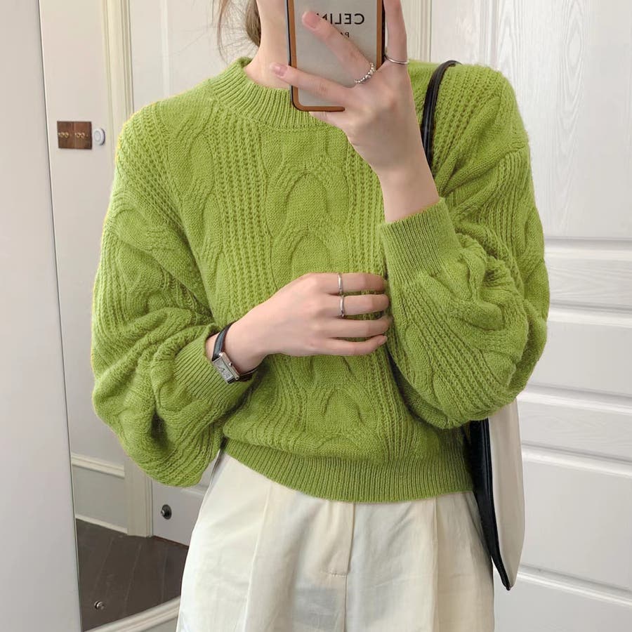 ざっくりが可愛い。ショート丈ニットプルオーバー 韓国ファッション セーター