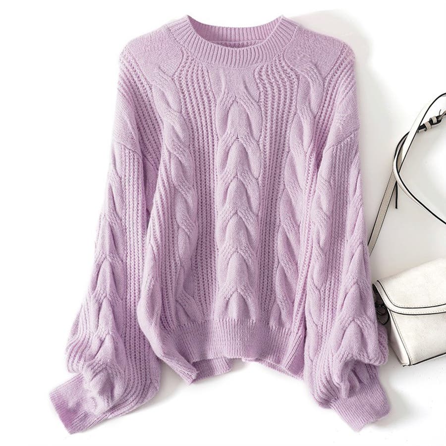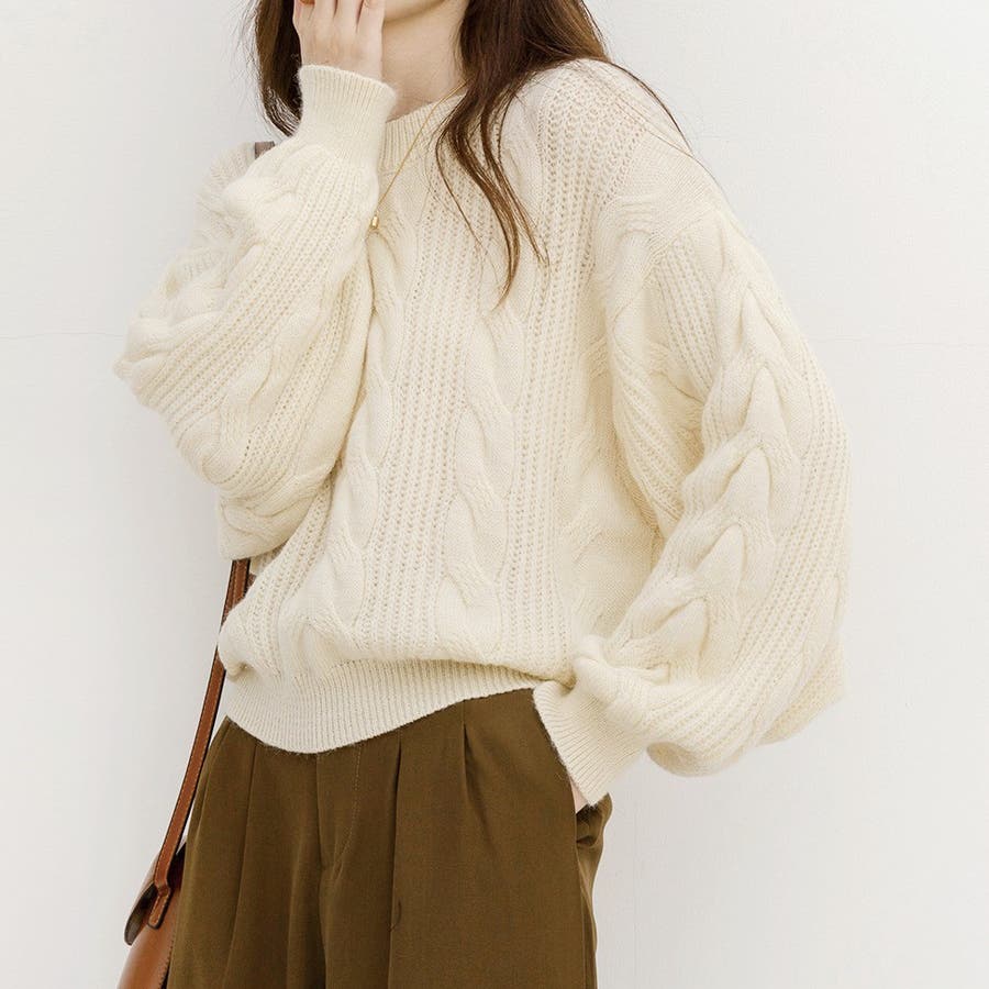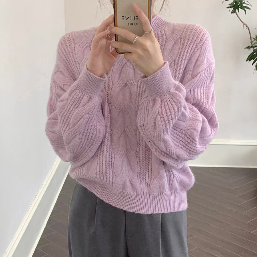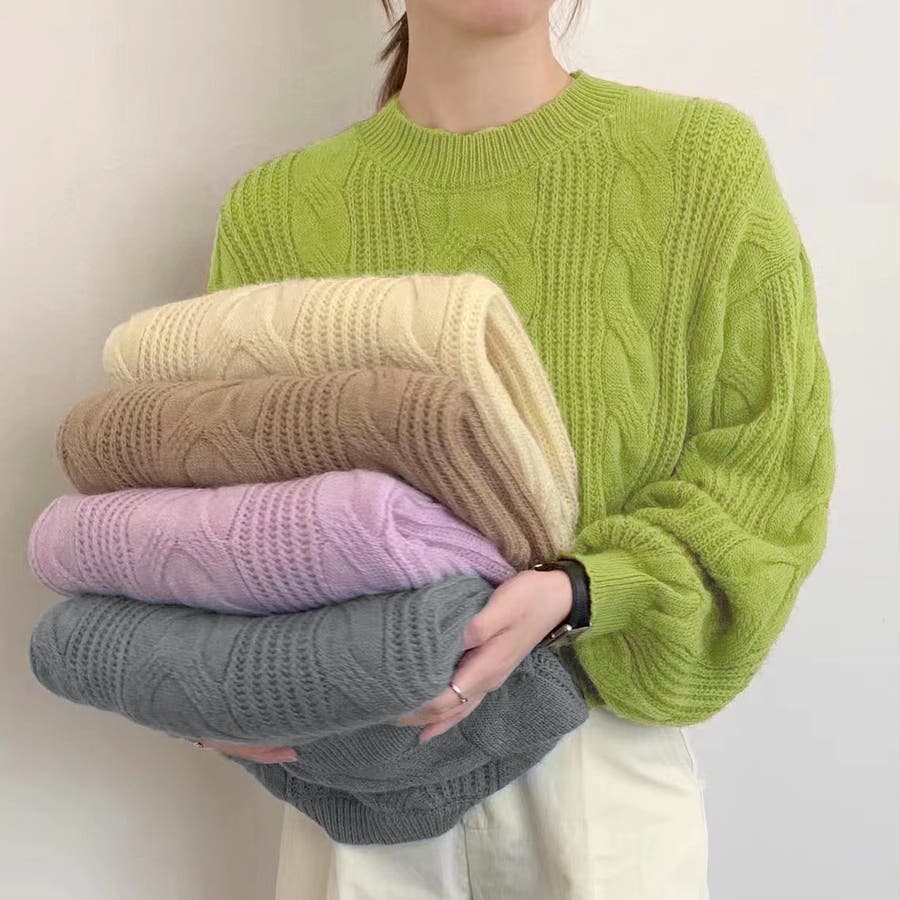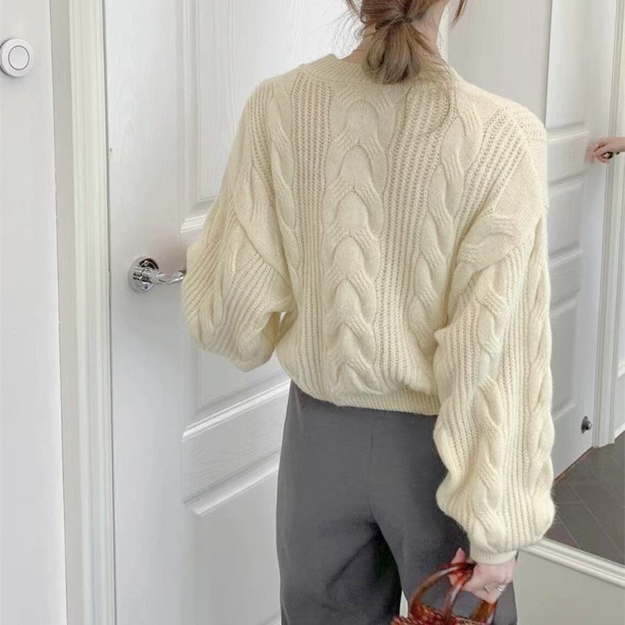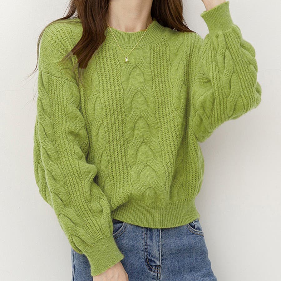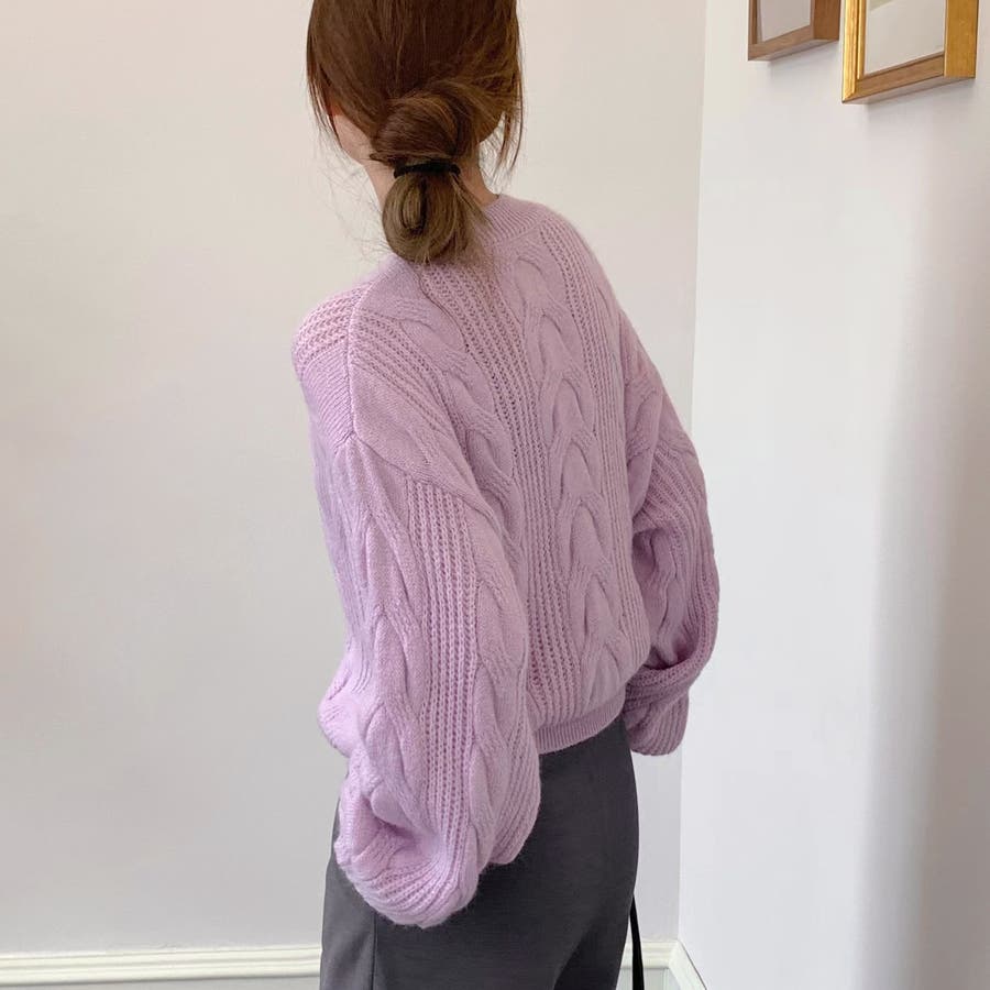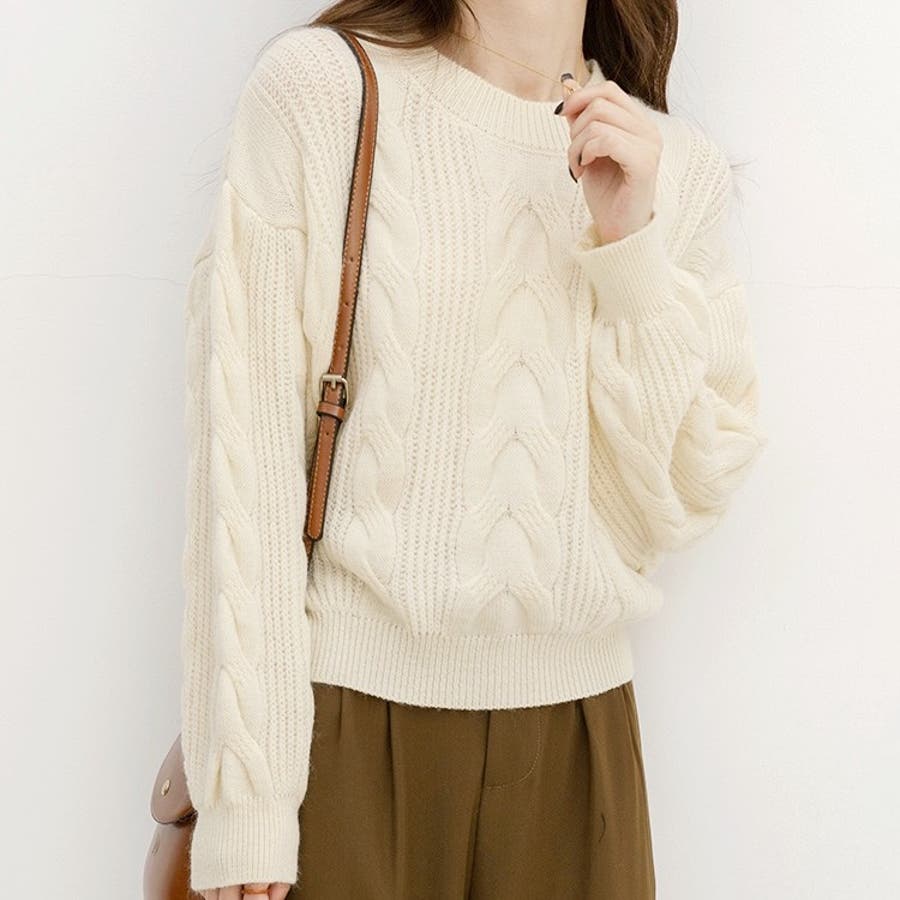 ざっくりが可愛い。ショート丈ニットプルオーバー 韓国ファッション セーター