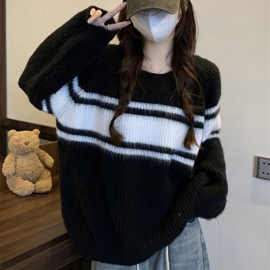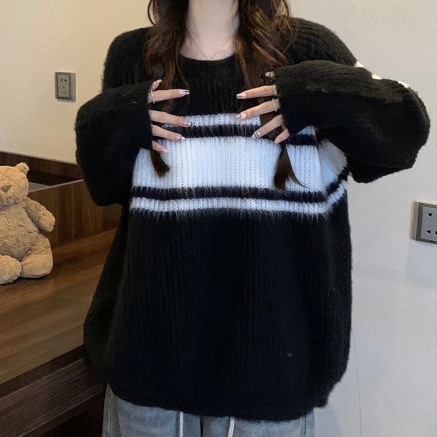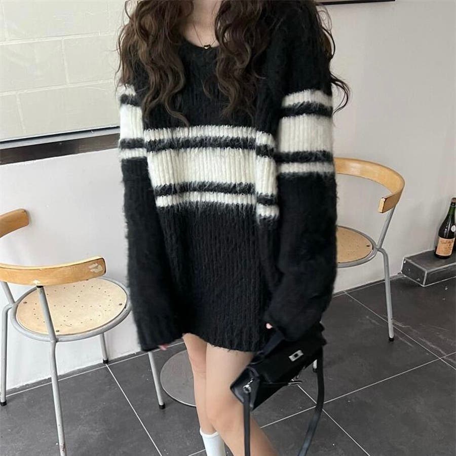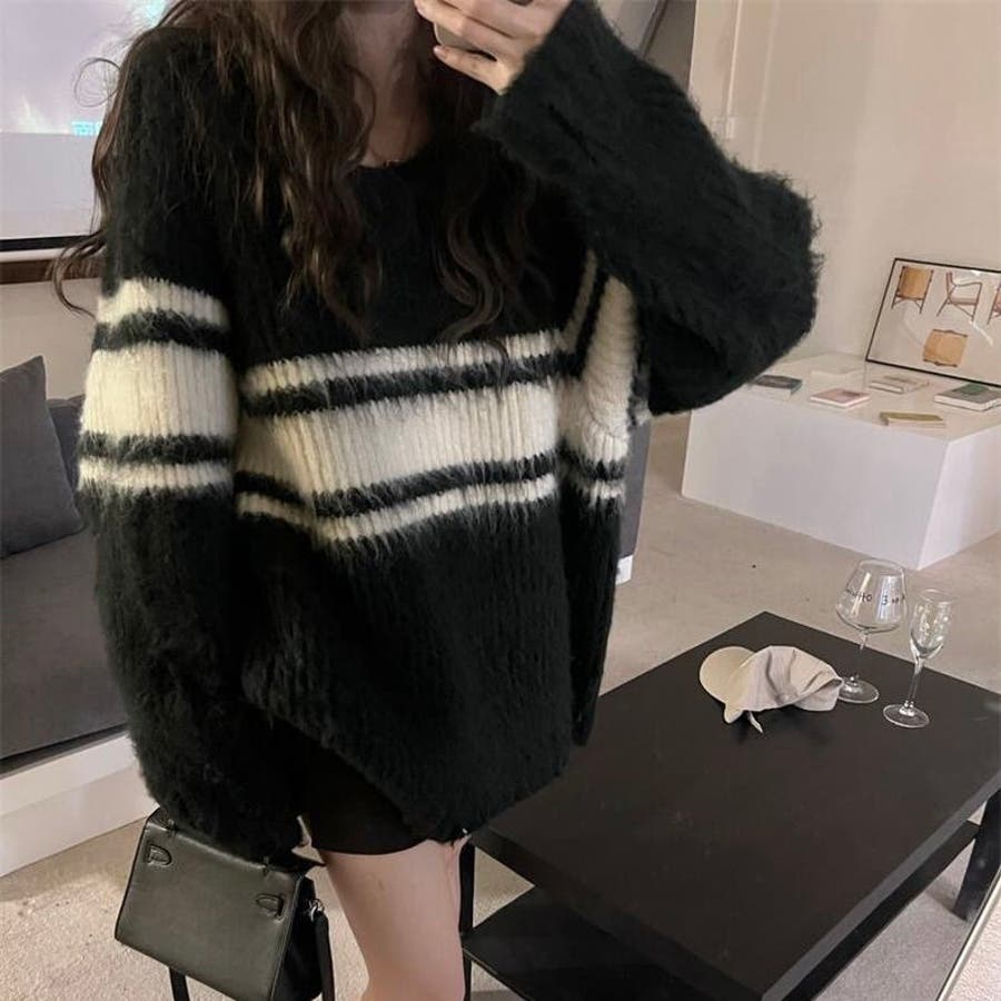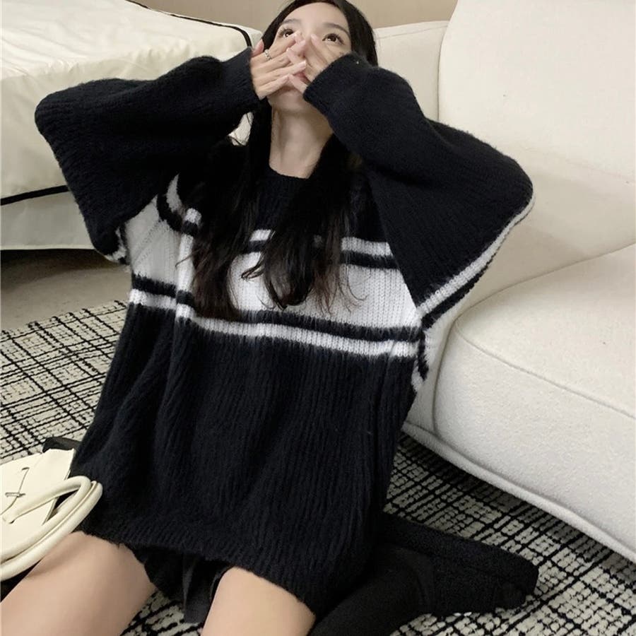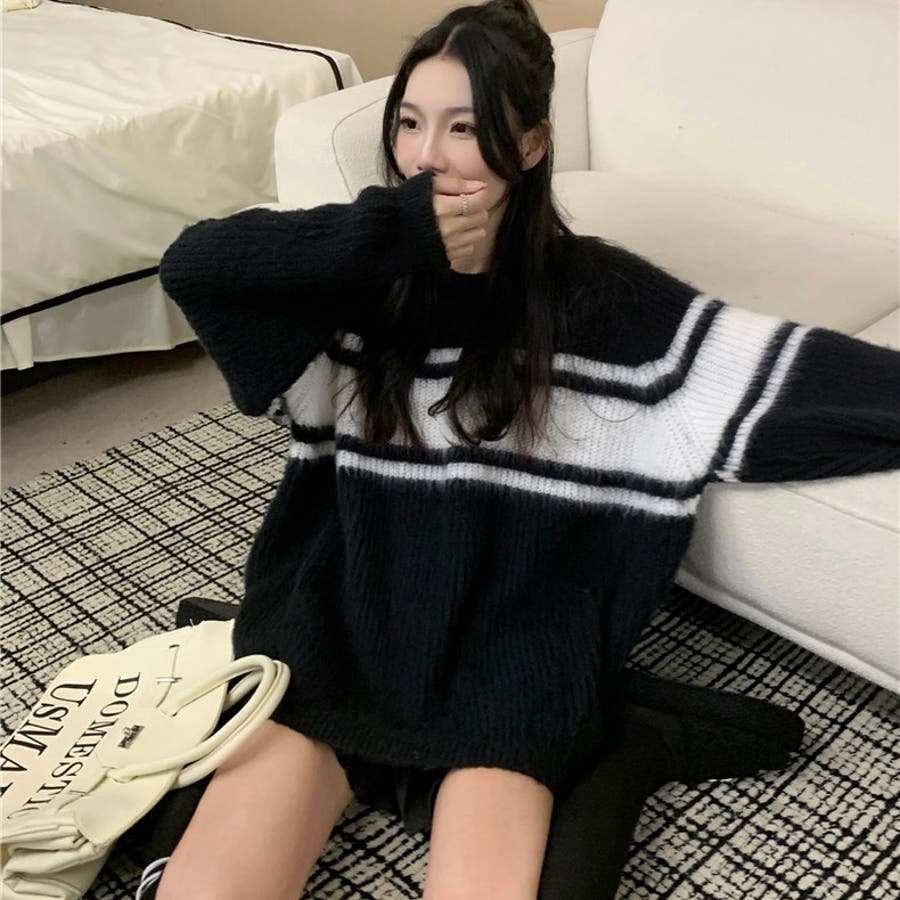 ストリート感のある目を惹くビッグシルエットデザインで旬な着こなしと存在感を発揮するボーダーニットセーター