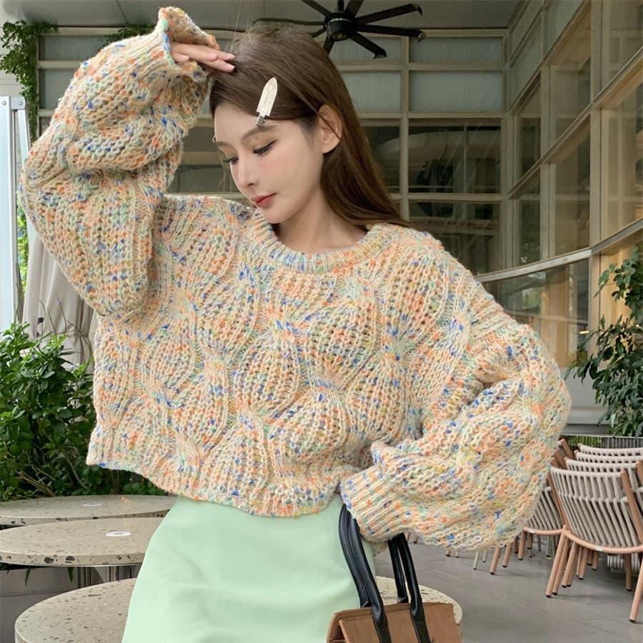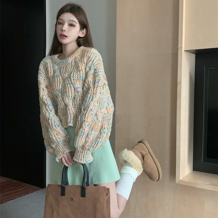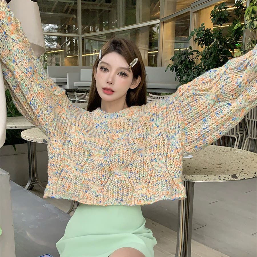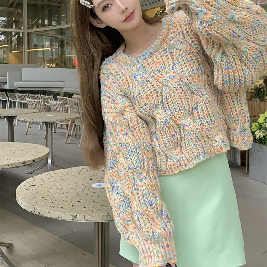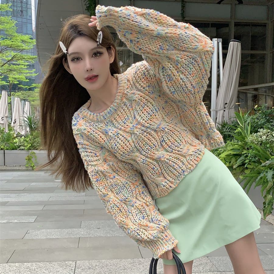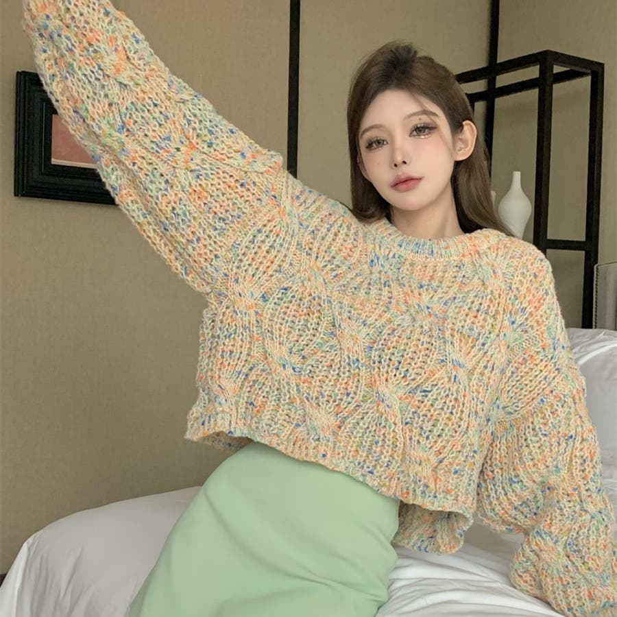 ショート丈カラ-ニットプルオーバー ミックスカラー 韓国ファッション