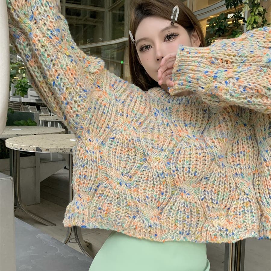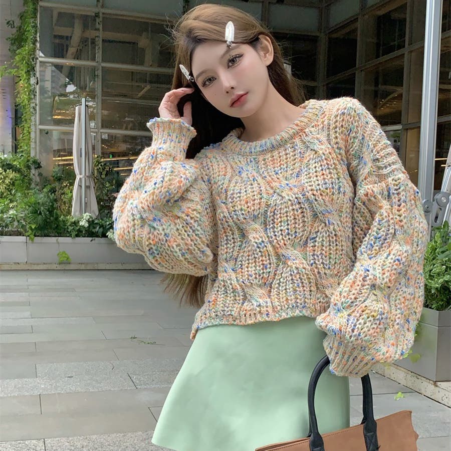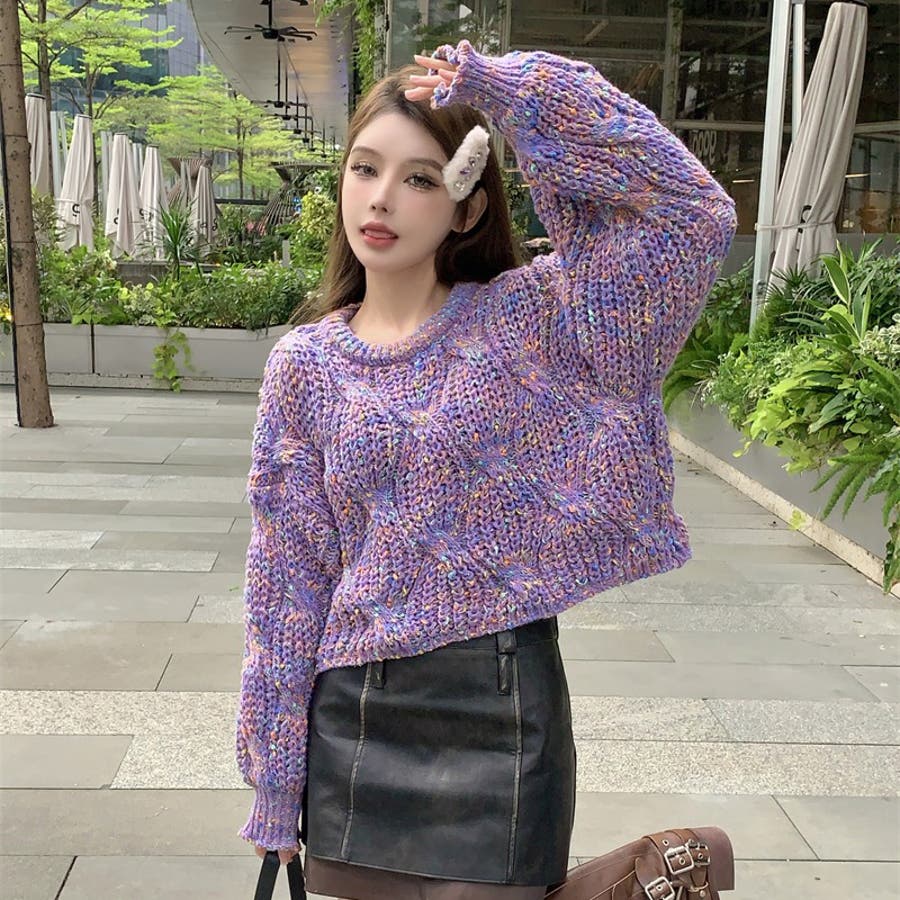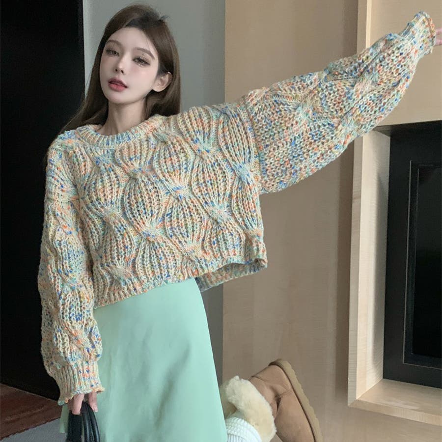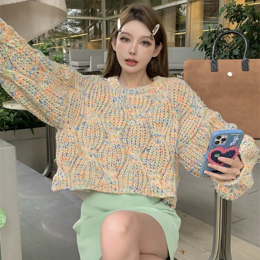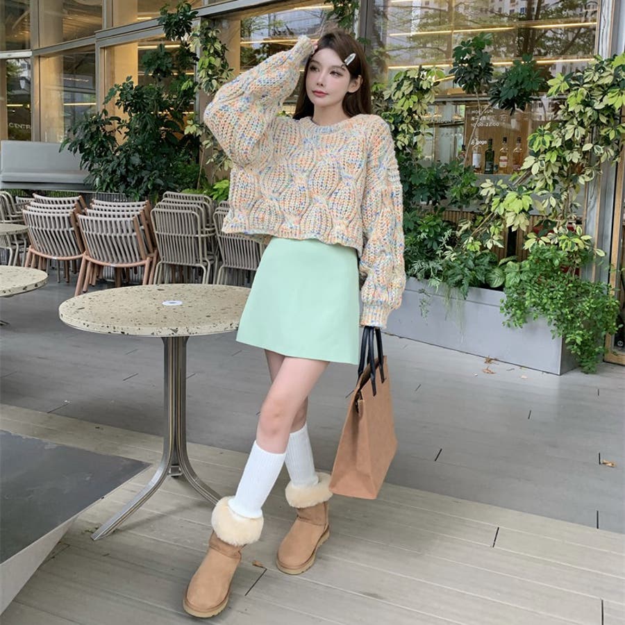 ショート丈カラ-ニットプルオーバー ミックスカラー 韓国ファッション