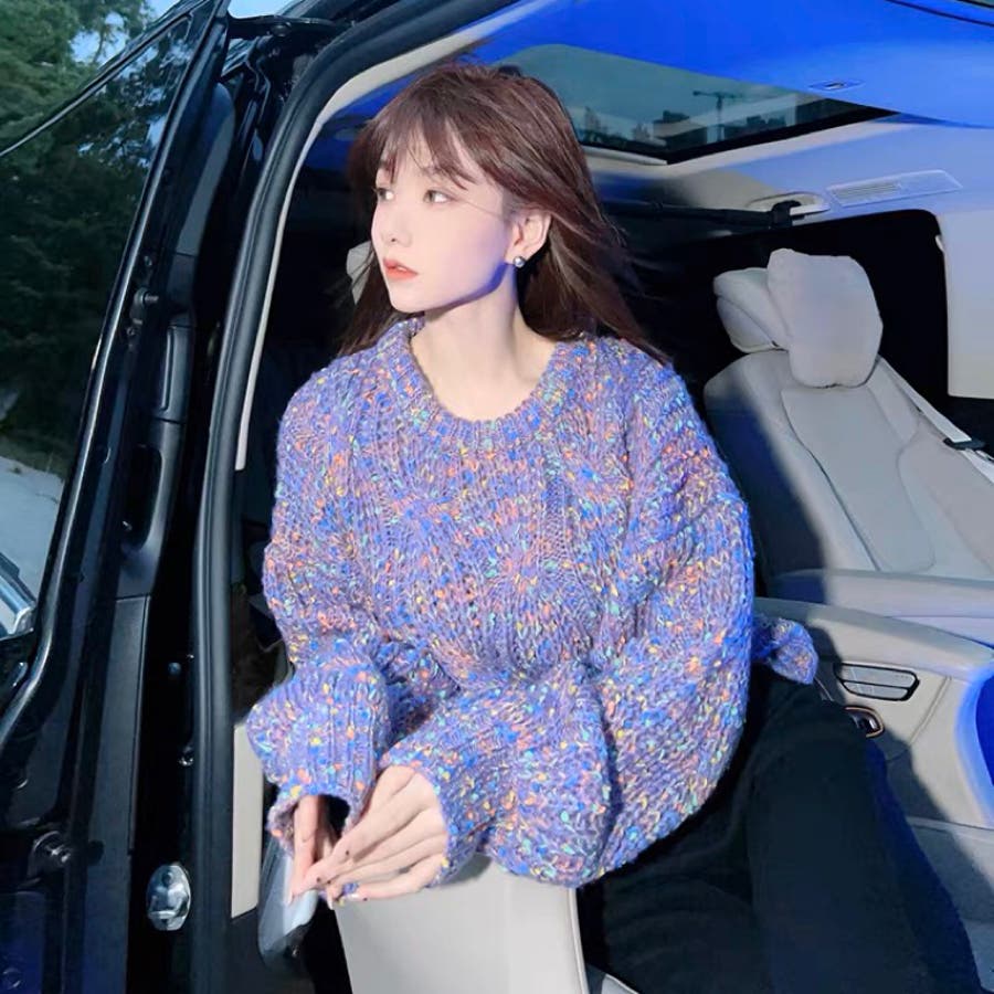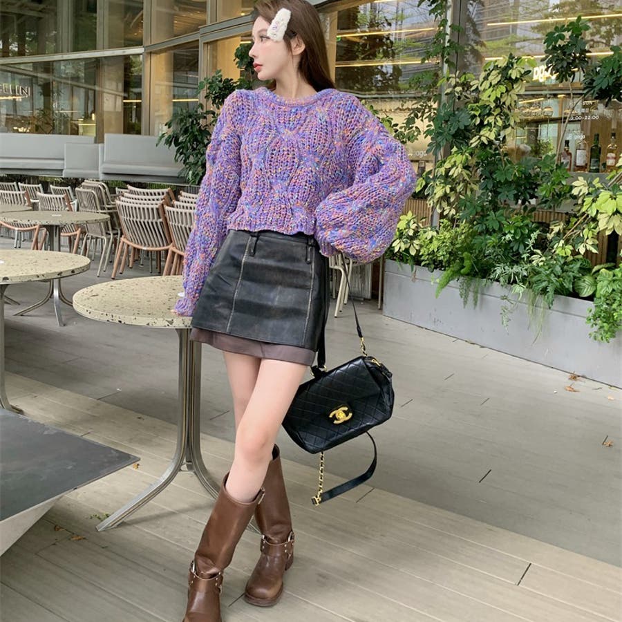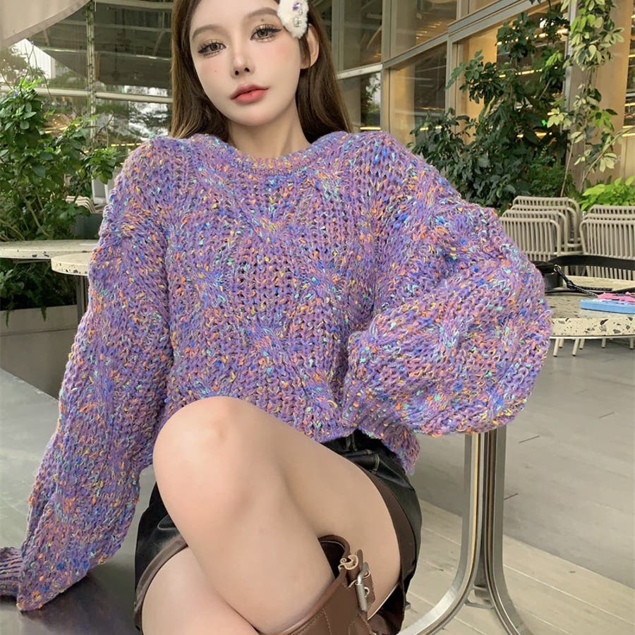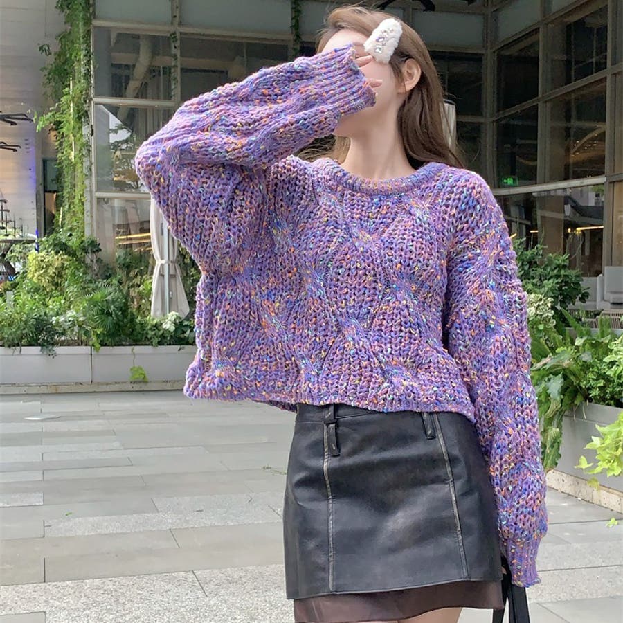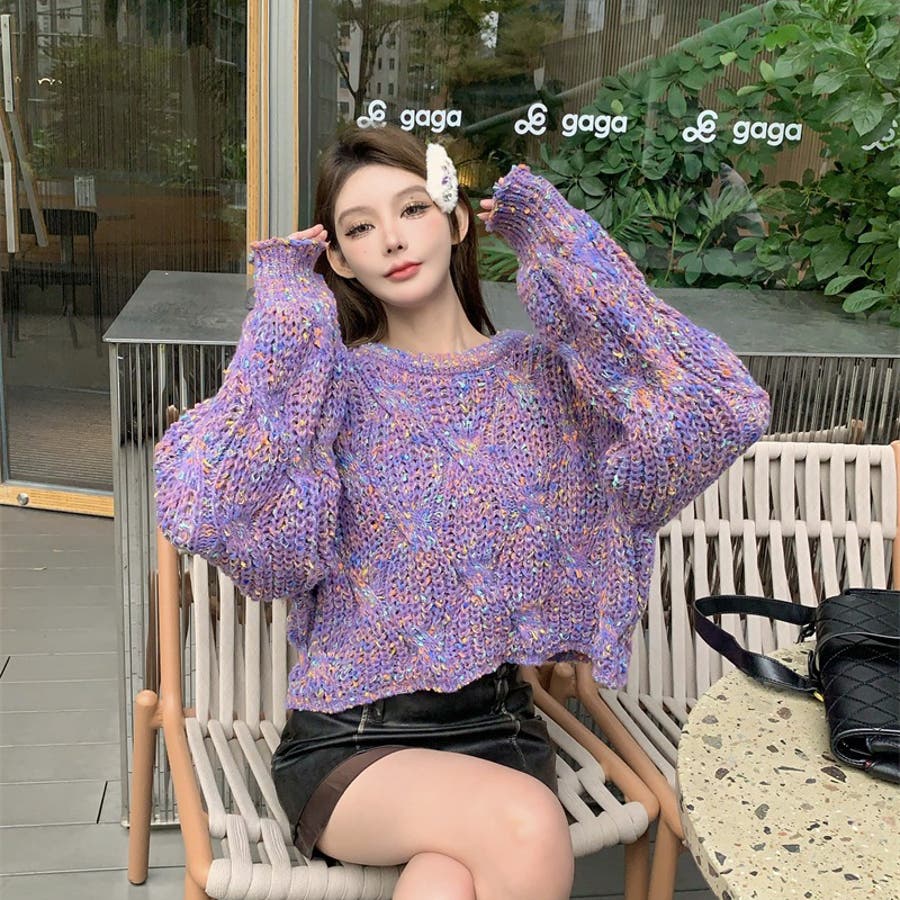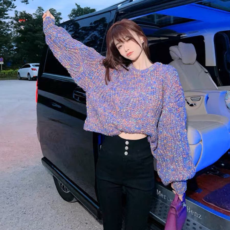 ショート丈カラ-ニットプルオーバー ミックスカラー 韓国ファッション